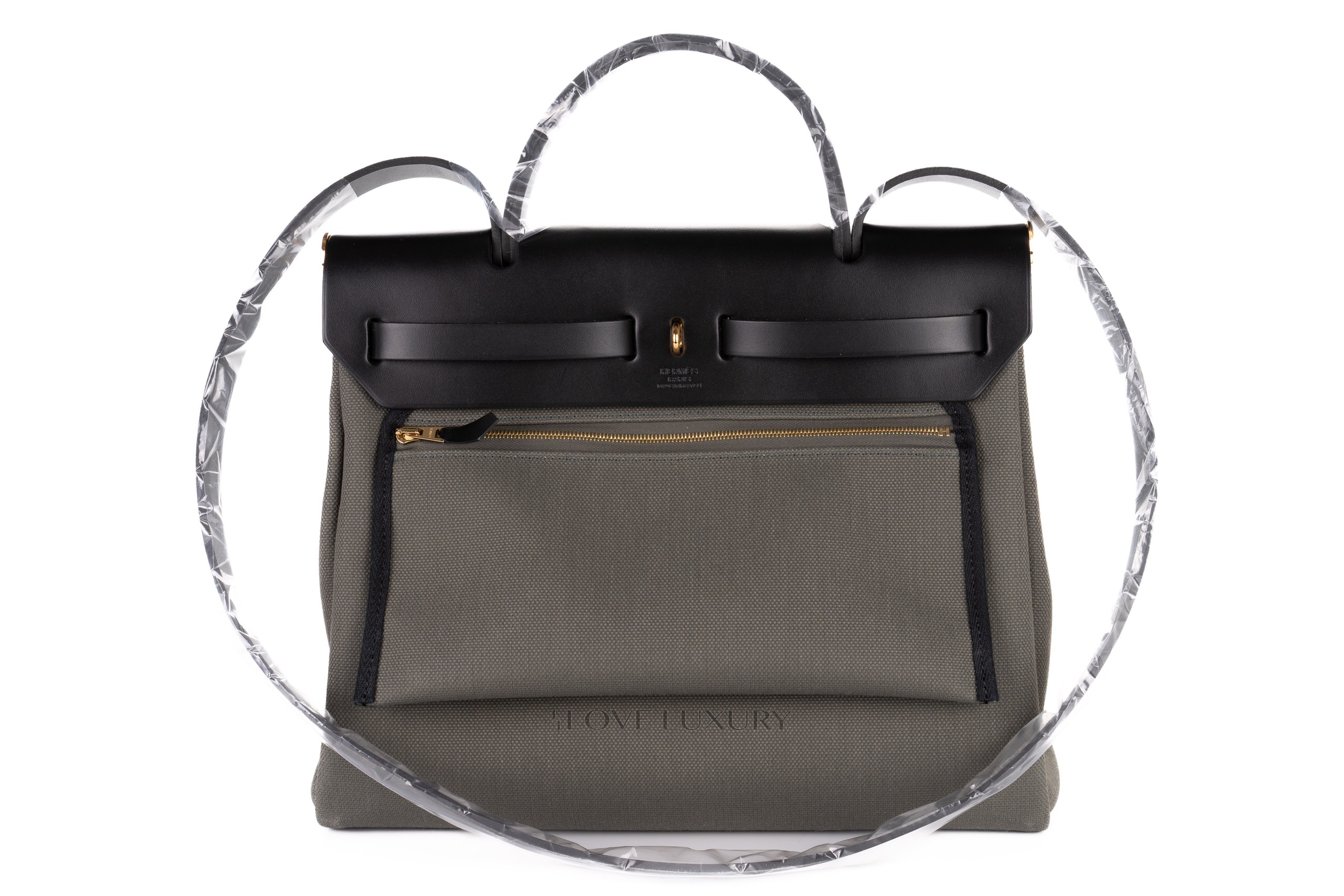 Hermès Herbag Zip 31 Vert de Gris Canvas and Black Swift / B stamp 2023 Box Fresh
