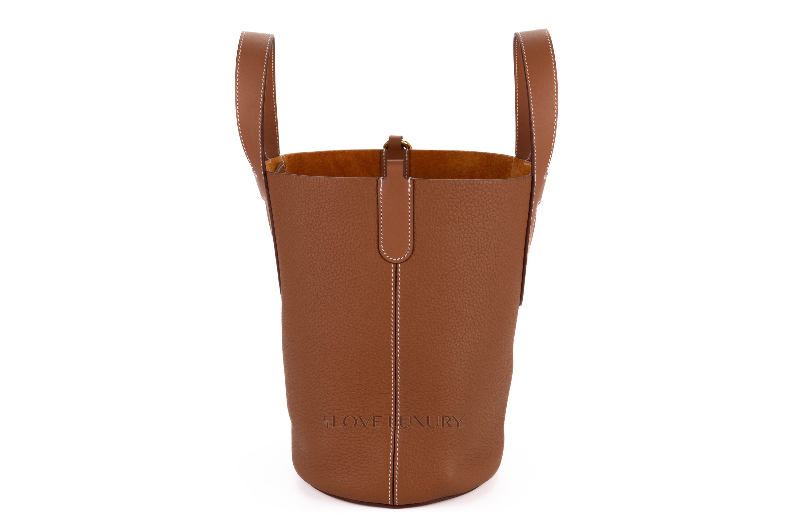 This bag is inspired by the Chaine d’Ancre link, with the unique handle. Comes in both smooth and grained textures which makes it even more special. Its said that its the new Picotin. The bag features an artistic detail. The Chaine d’Ancre link which is meant to give the bag more structure and a second look. In the most classIc coloway Gold on Gold. Comes to you in box fresh condition as a full set with the receipt from the store.