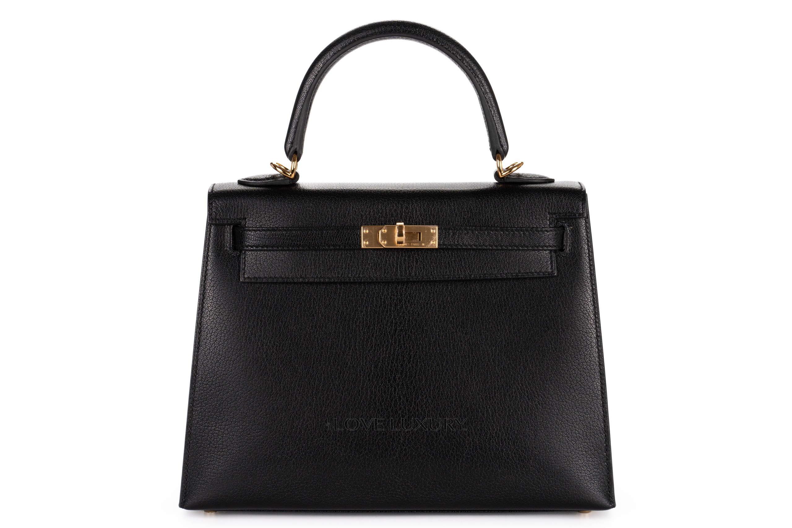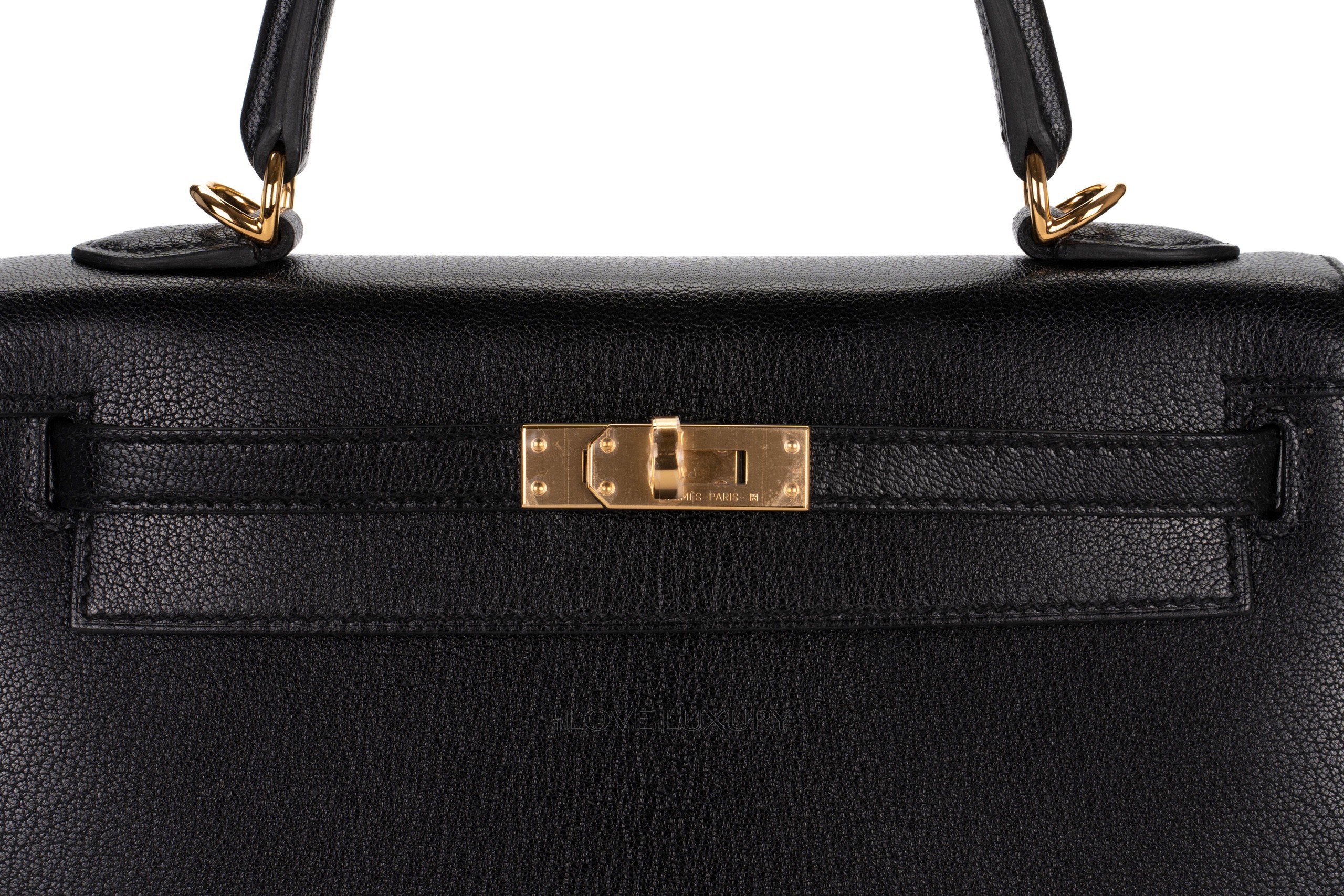 Hermès Kelly 25 Black Chevre Chamkila Gold Hardware / B stamp 2023 Box Fresh