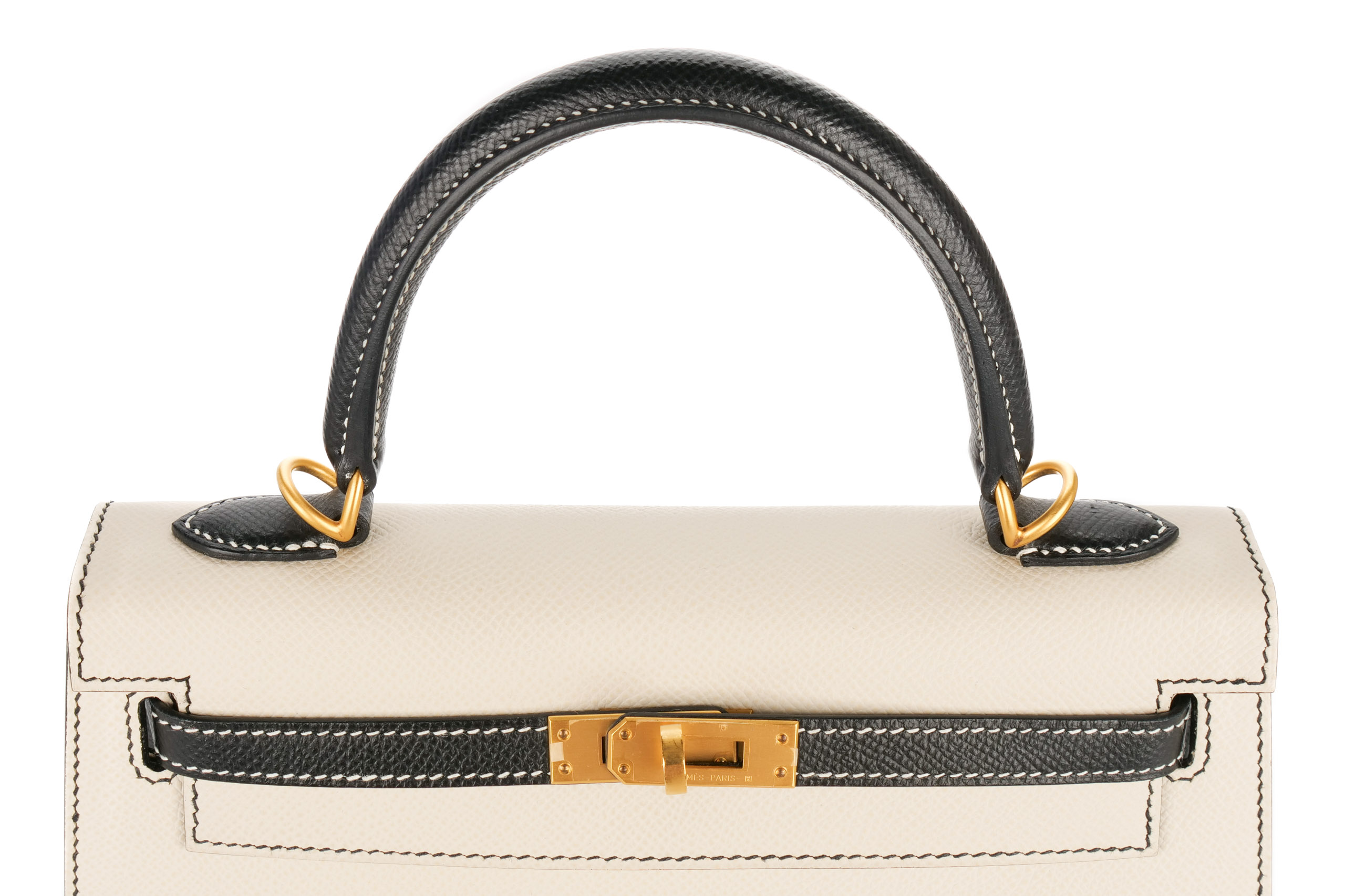 Hermès Kelly 25 Craie / Black Epsom Brushed Gold Hardware / D Stamp 2019, Preloved