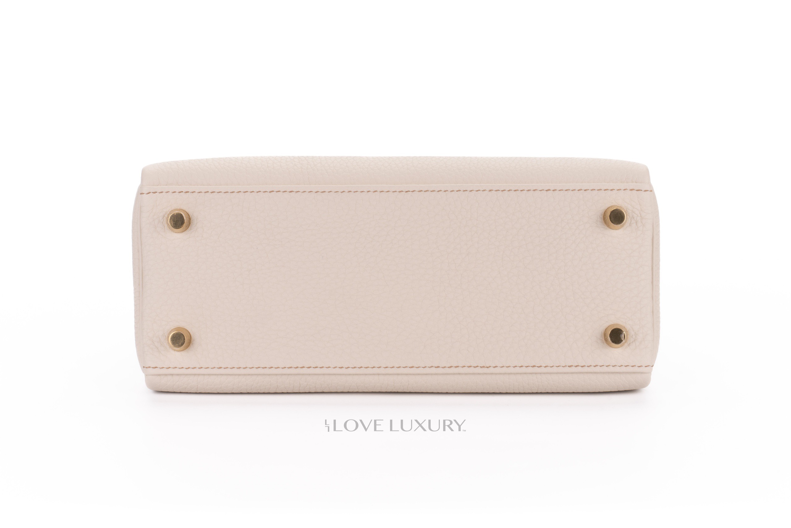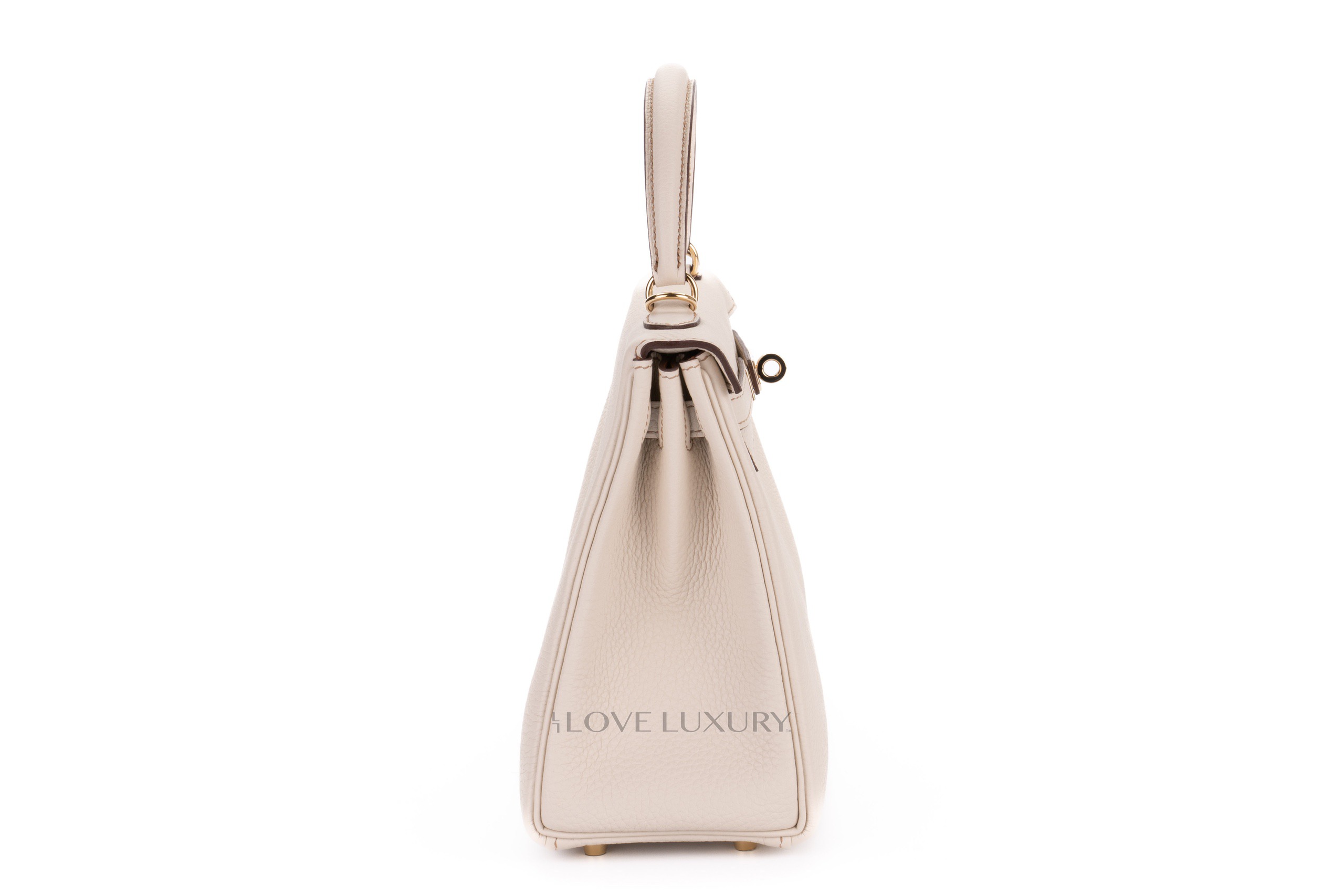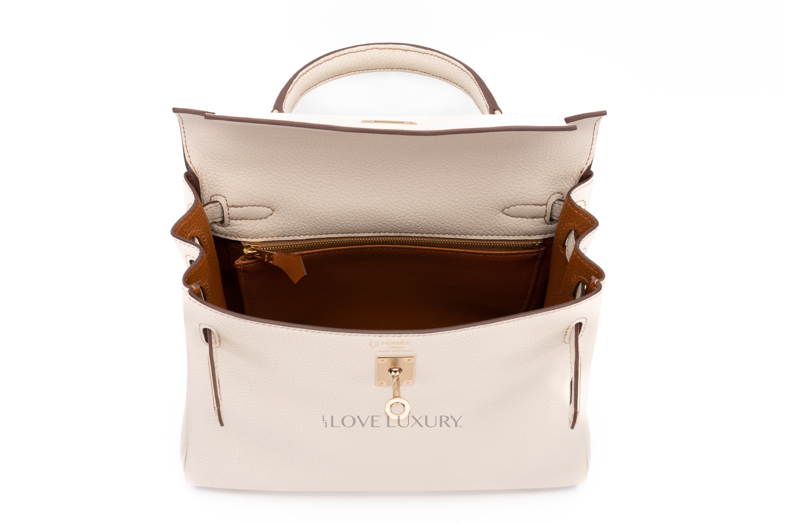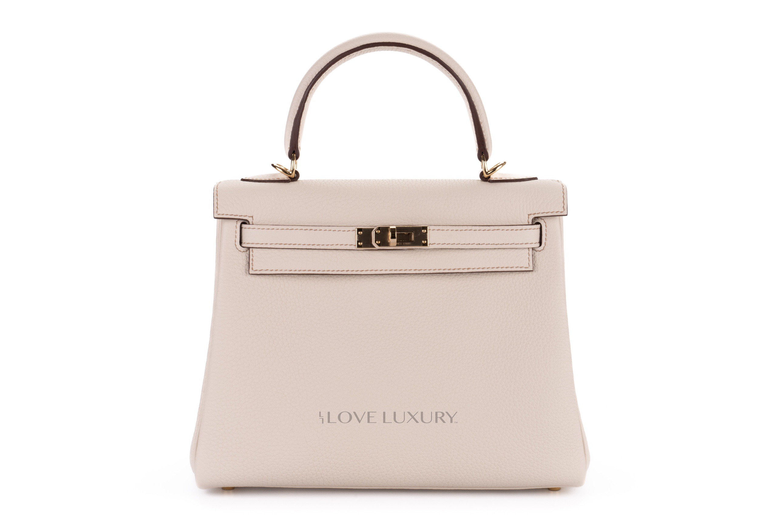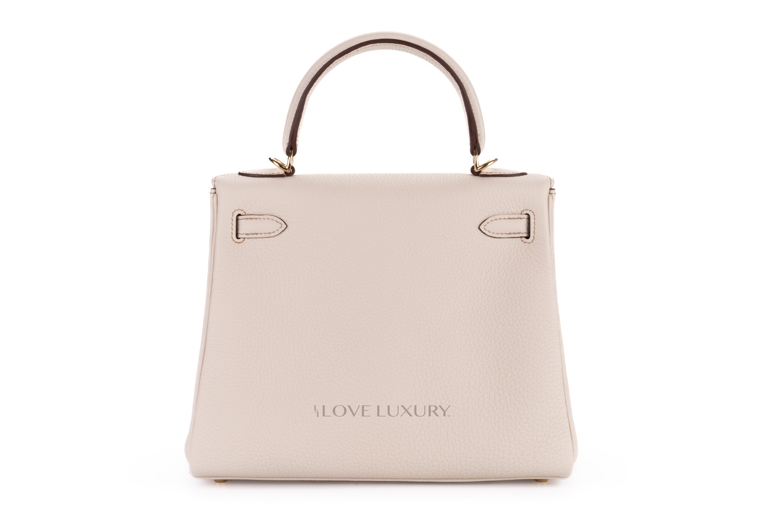 Hermès Kelly 25 Craie Togo Horse Shoe Stamp HSS Permabrass Hardware / U stamp 2023 receipt Pre-Loved condition