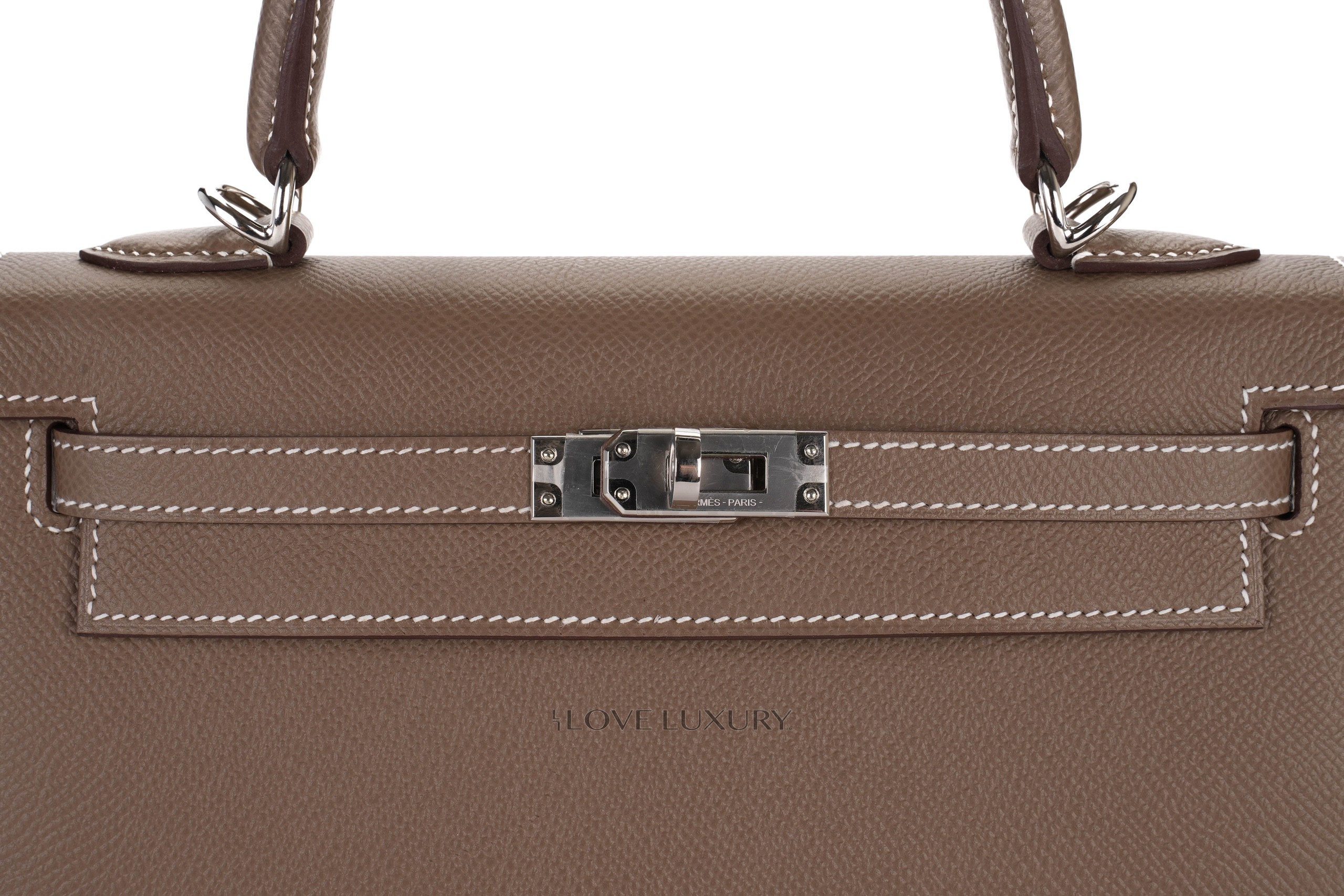 Hermès Kelly 25 Etoupe Epsom Sellier Palladium Hardware / B stamp 2023 Box Fresh