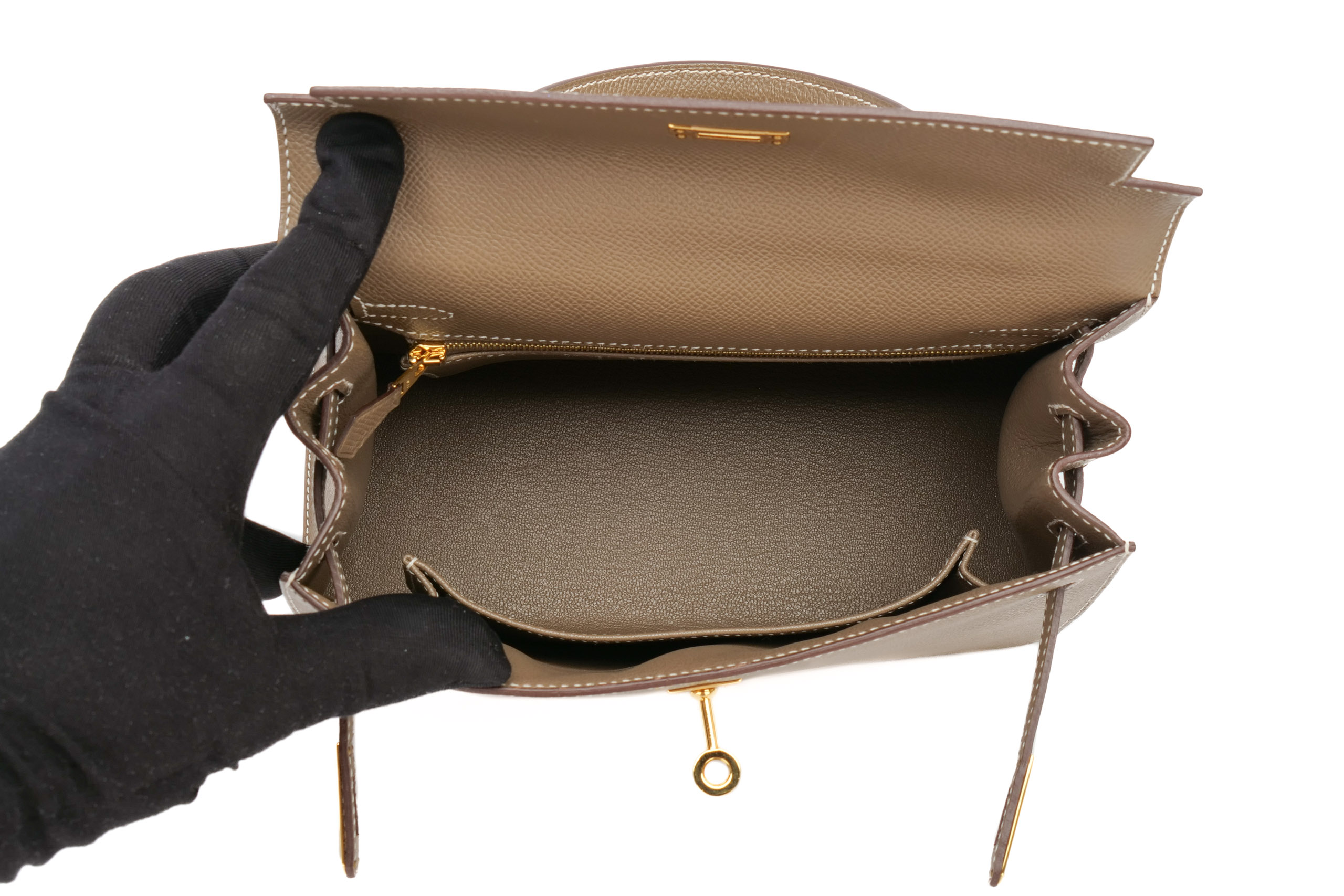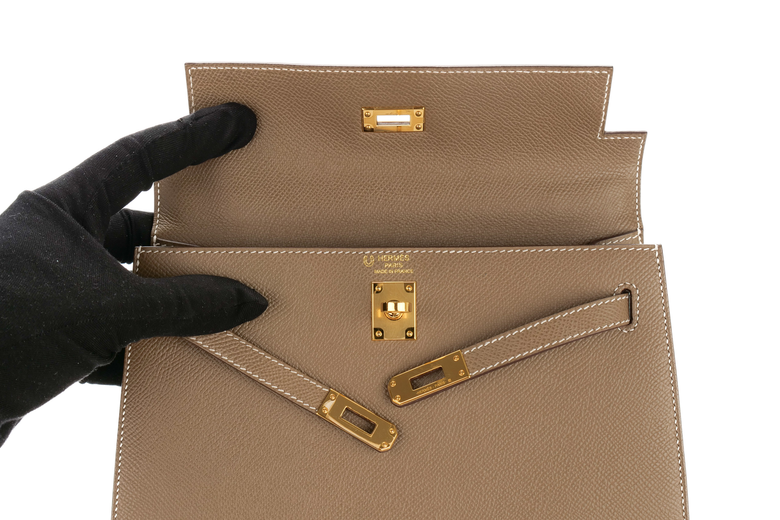 Hermès Kelly 25 Horse Shoe Stamp Etoupe Epsom Gold Hardware / D Stamp 2020, Preloved