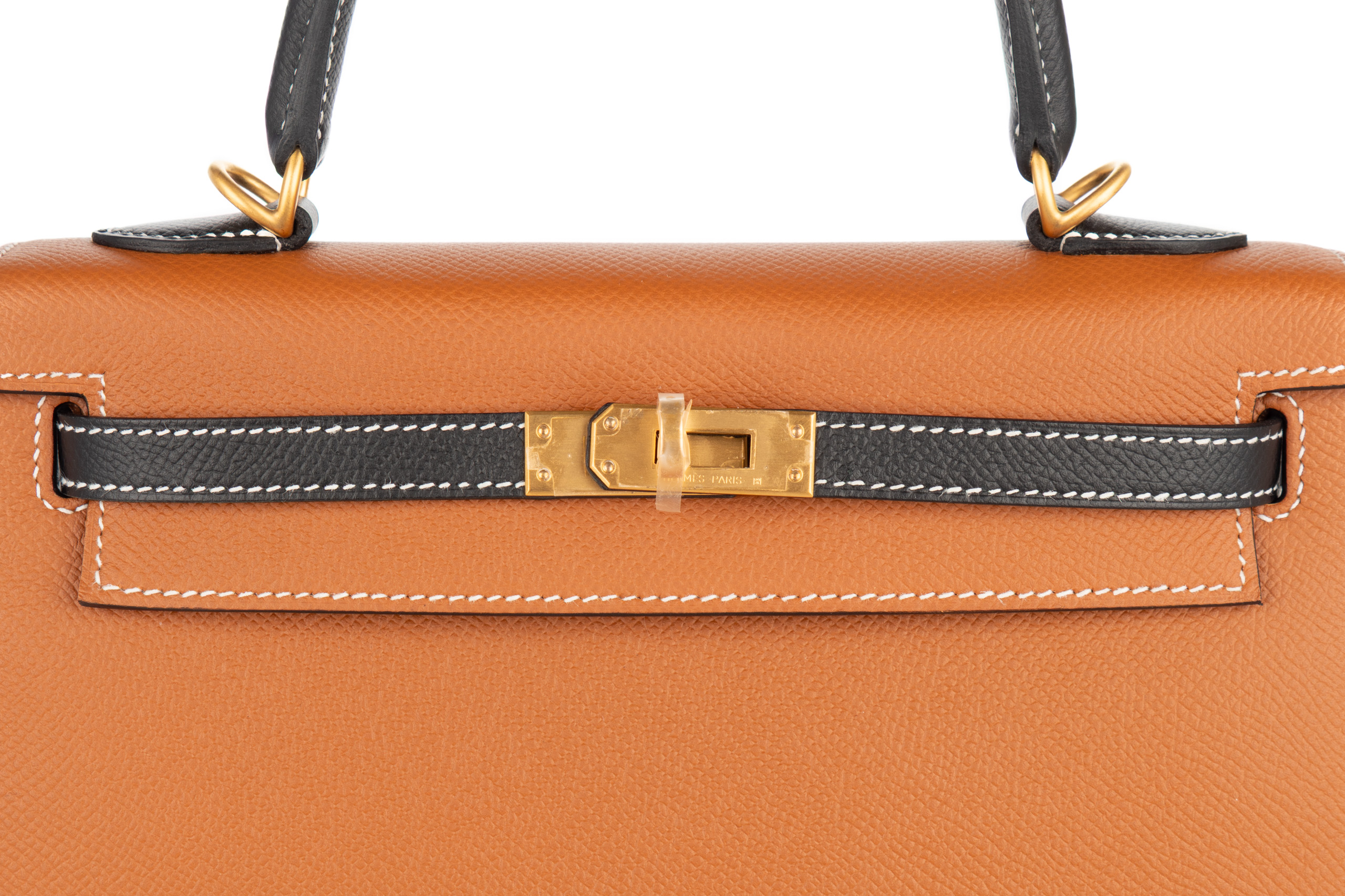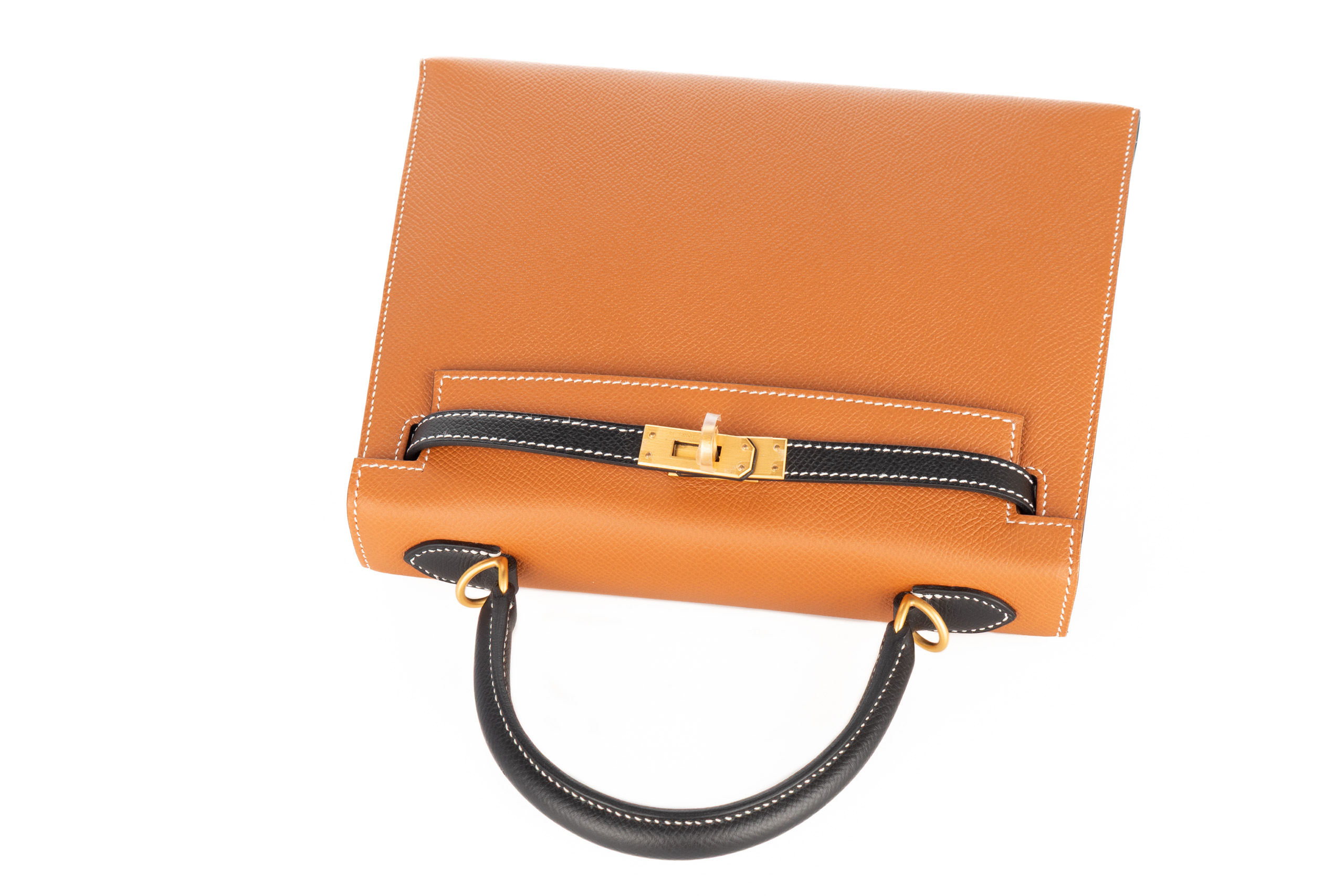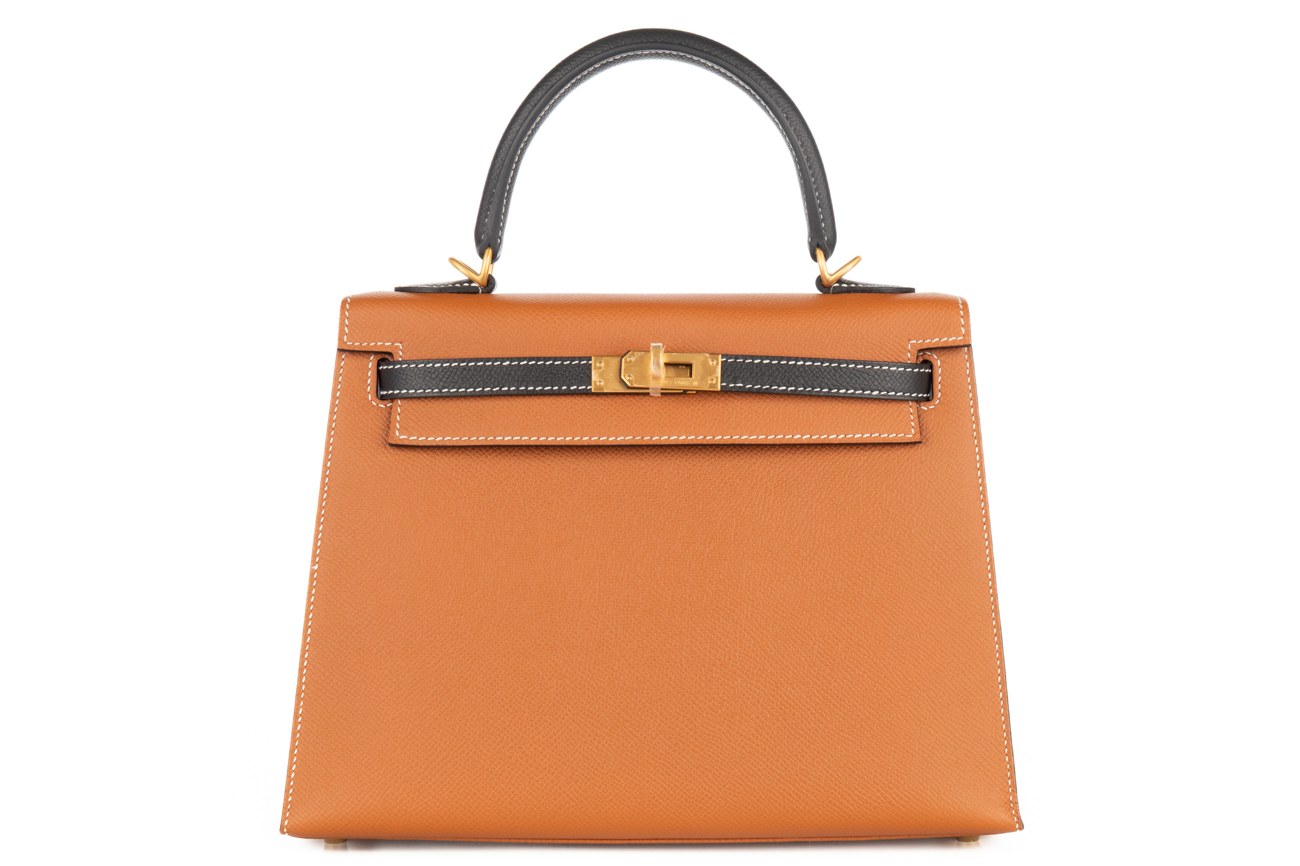 Hermès Kelly 25 Horse Shoe Stamp Gold / Noir Epsom Sellier Brushed Gold Hardware / C Stamp 2018, Brand New
