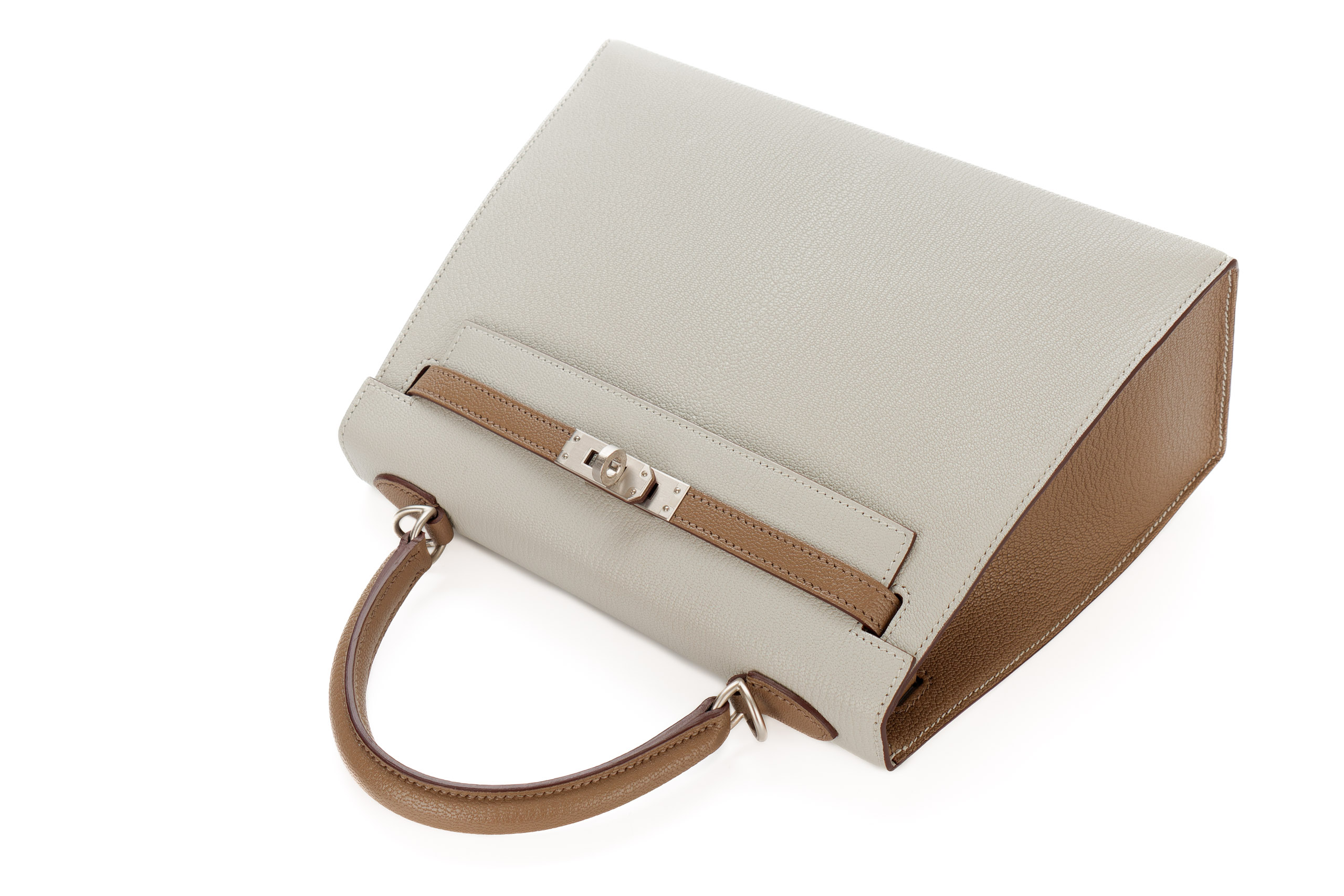 Hermès Kelly 25 Horse Shoe Stamp Special Order Gris Perlel and Etoupe Brushed Palladium Hardware/ U stamp 2022, brand new