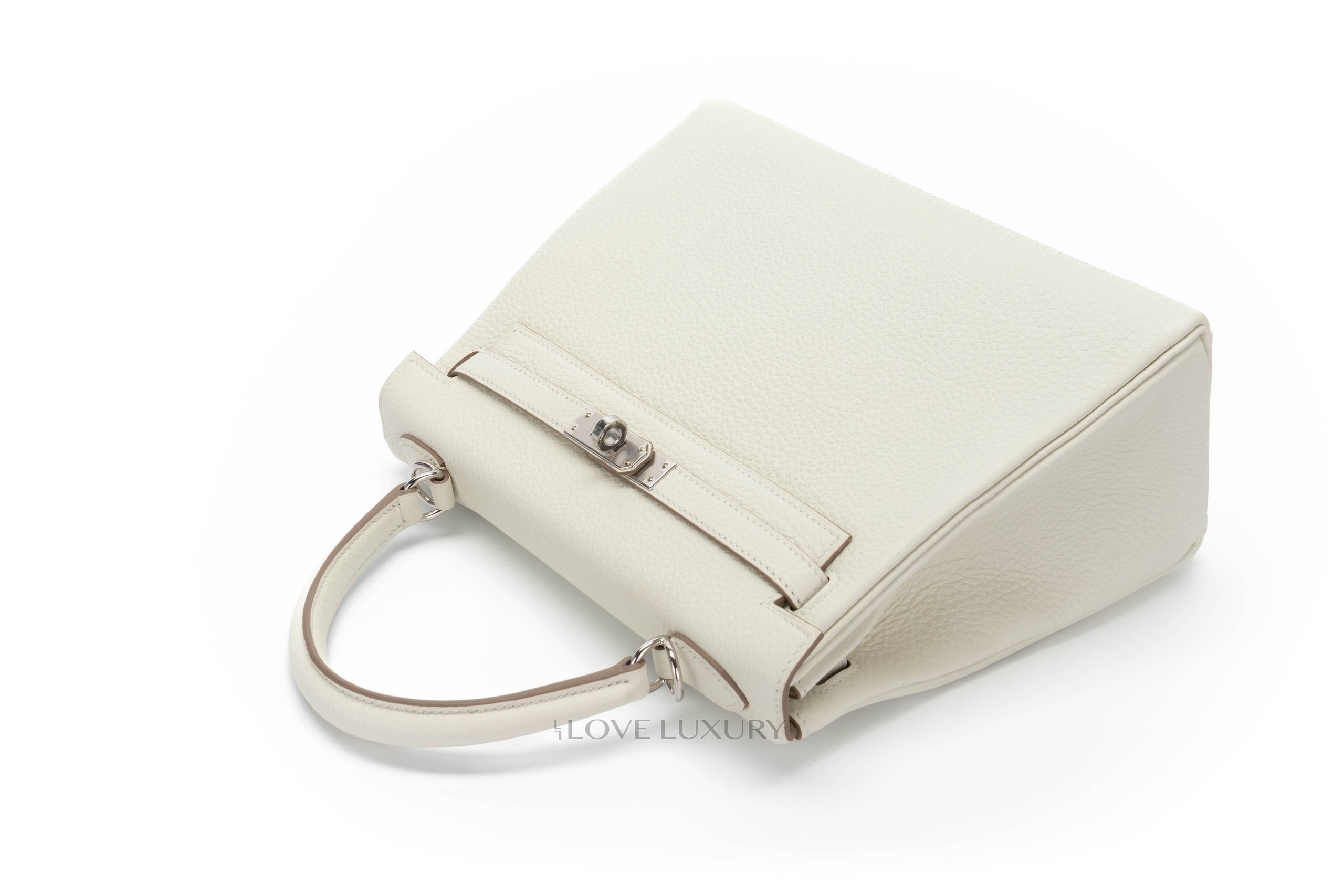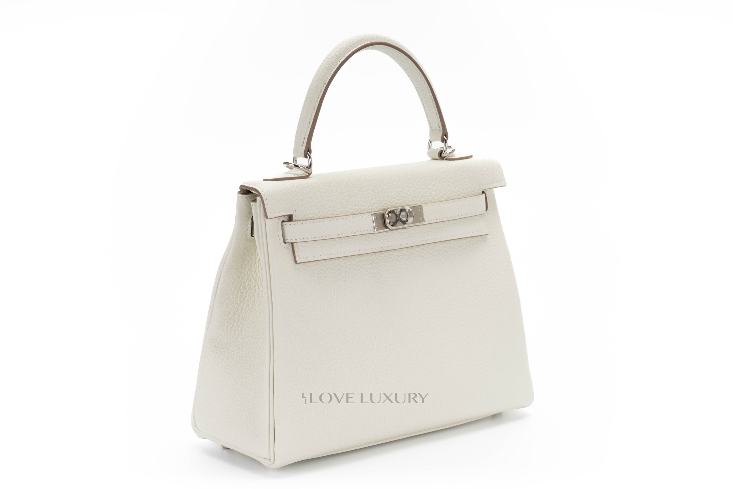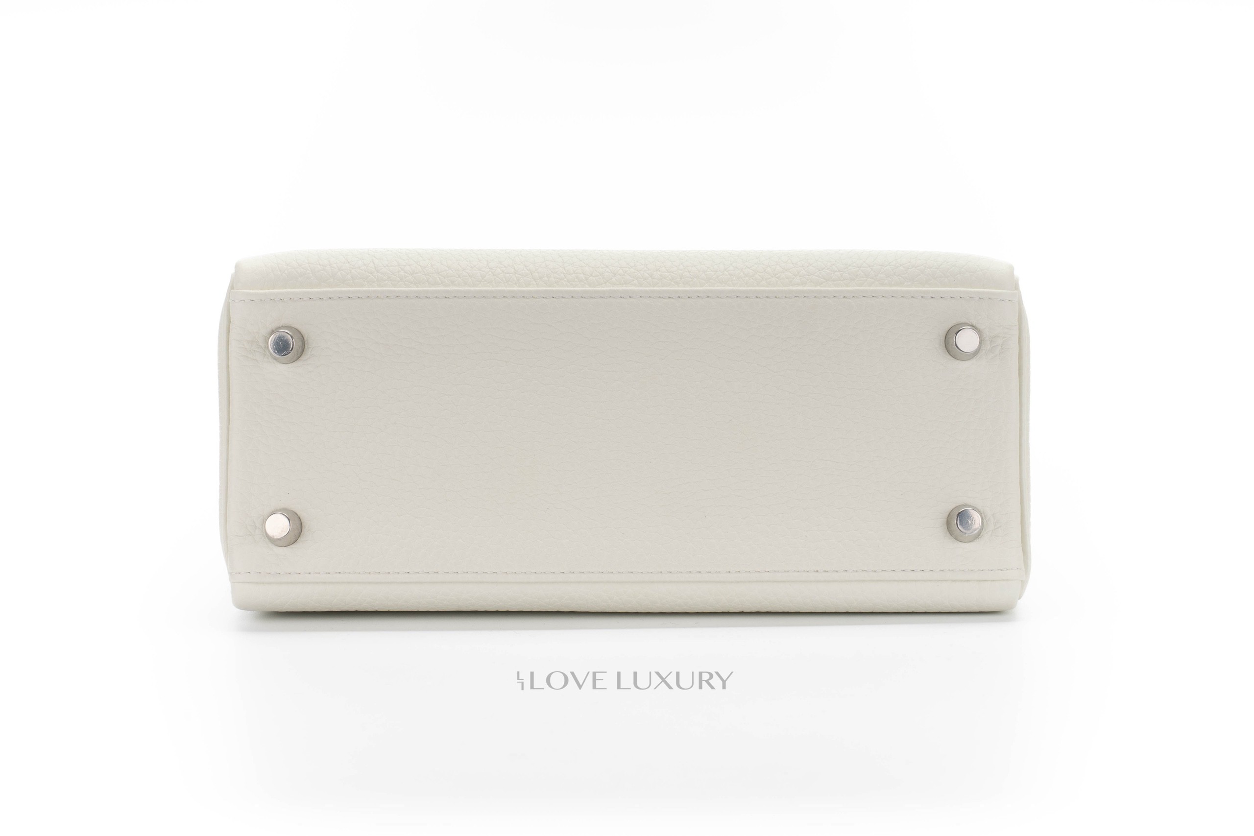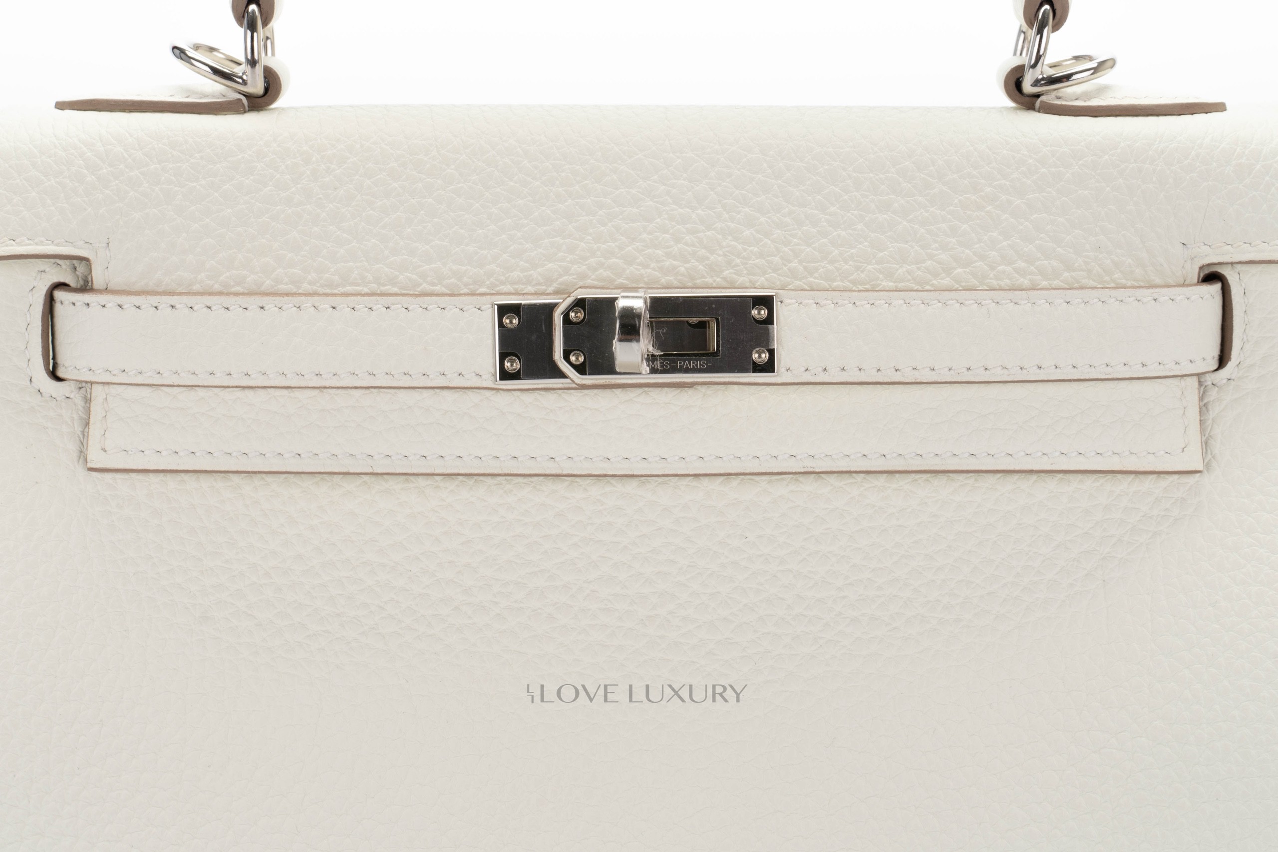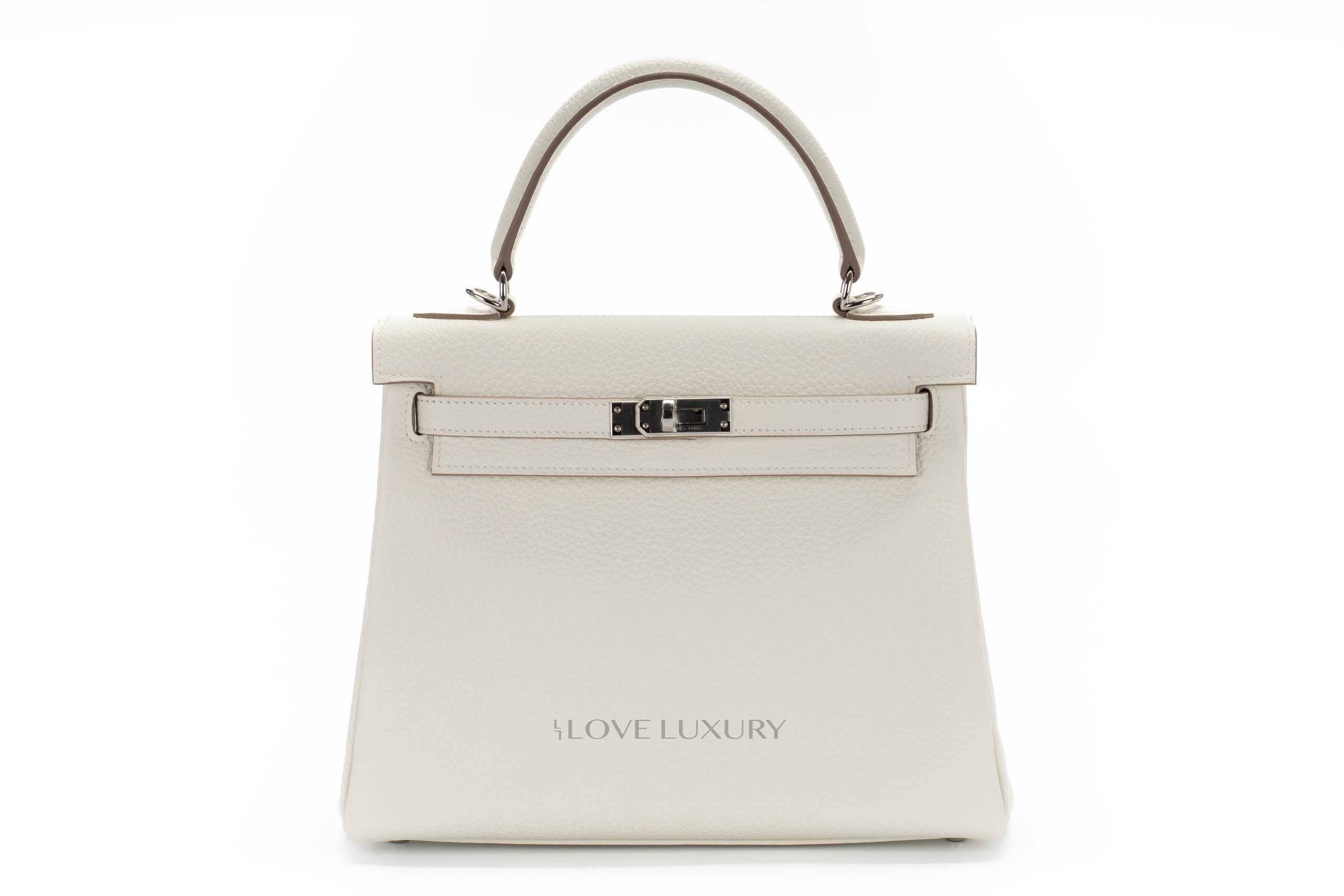 Hermès have brought the Mushroom colour back for 2022, but this time it came back as a washed out gray bordering on silvery pale green with strong yellow undertones as described by Hermès. We feel this colour is more of a cream. We were lucky to have it in store in perfect Kelly 25 size in Togo leather. Box fresh, this bag comes as a full set with the receipt and authentication.