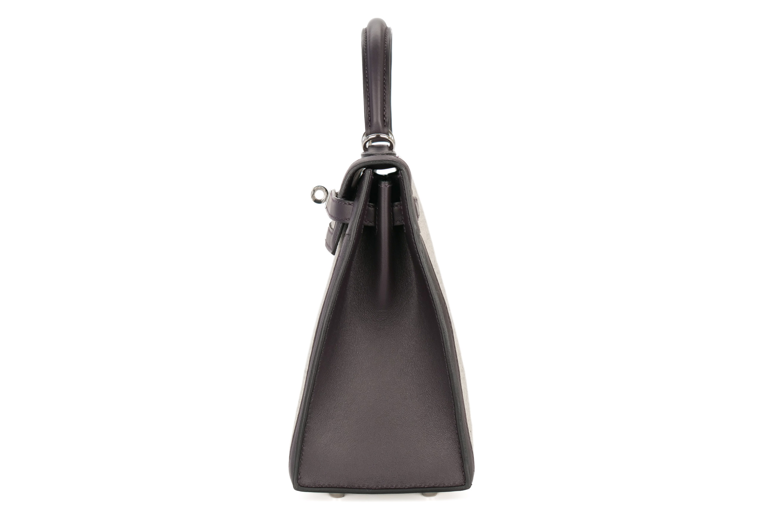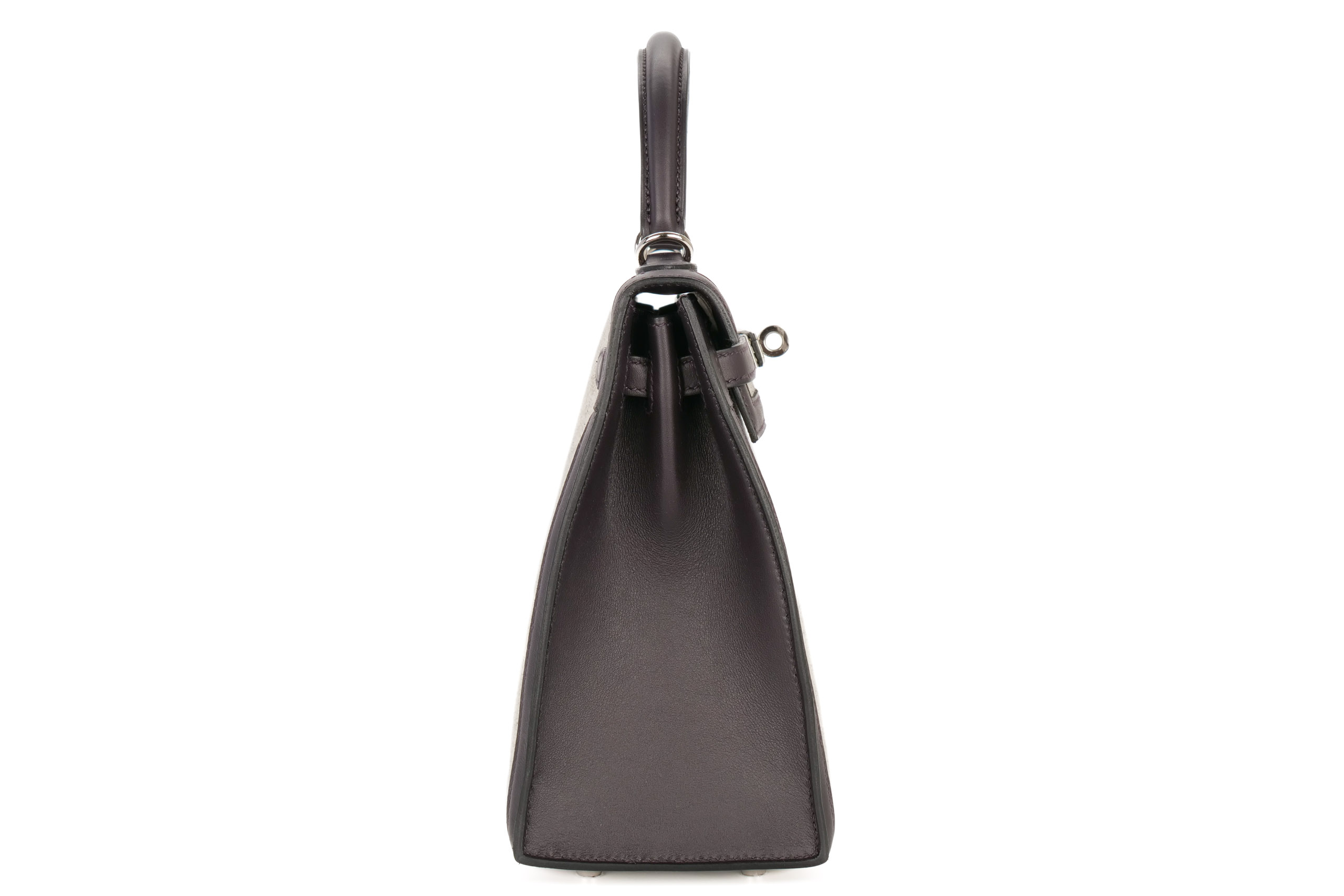 Hermès Kelly 25 Prunoir / Noir / Ecru Toile / Swift Palladium Hardware / W Stamp 2025, Brand New
