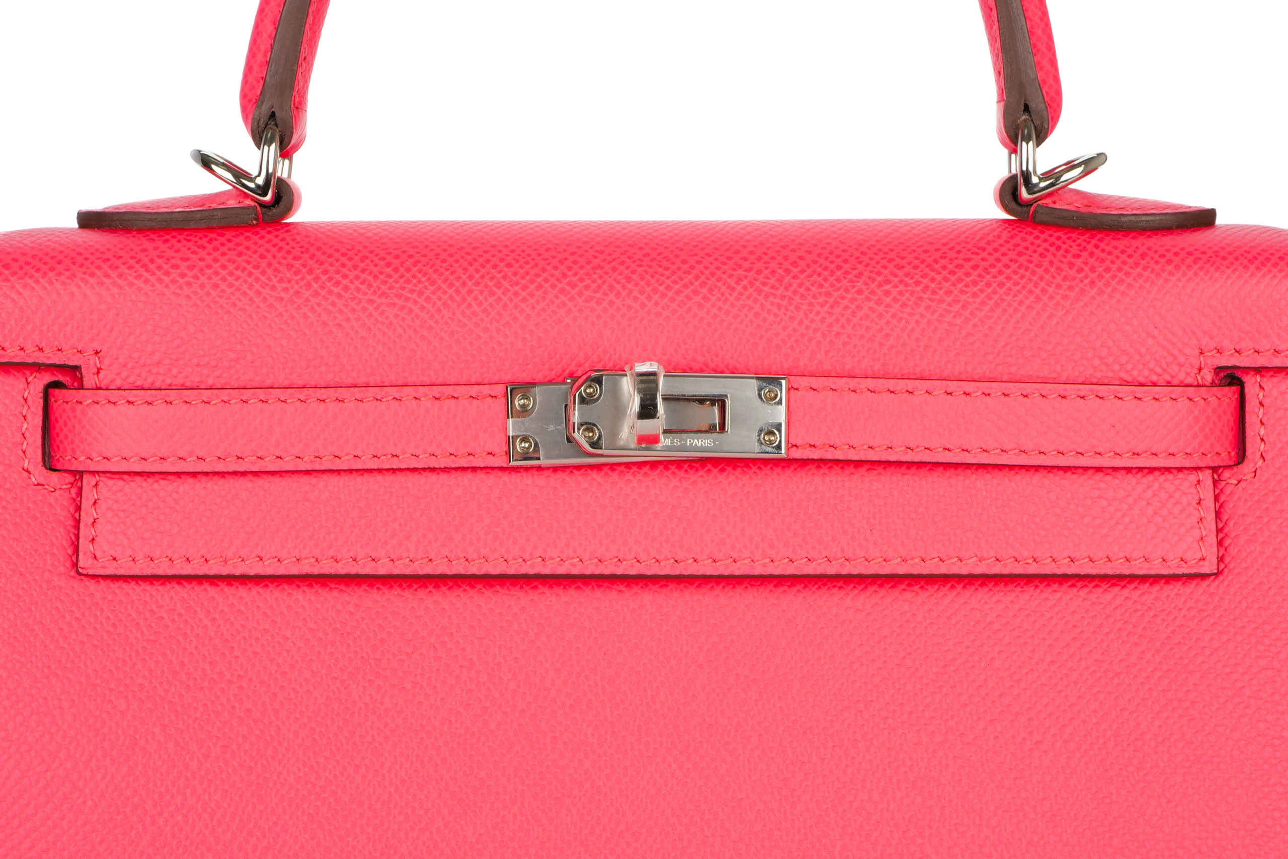 Hermès Kelly 25 Rose Azalee Epsom Sellier Palladium Hardware / W Stamp 2025, Brand New