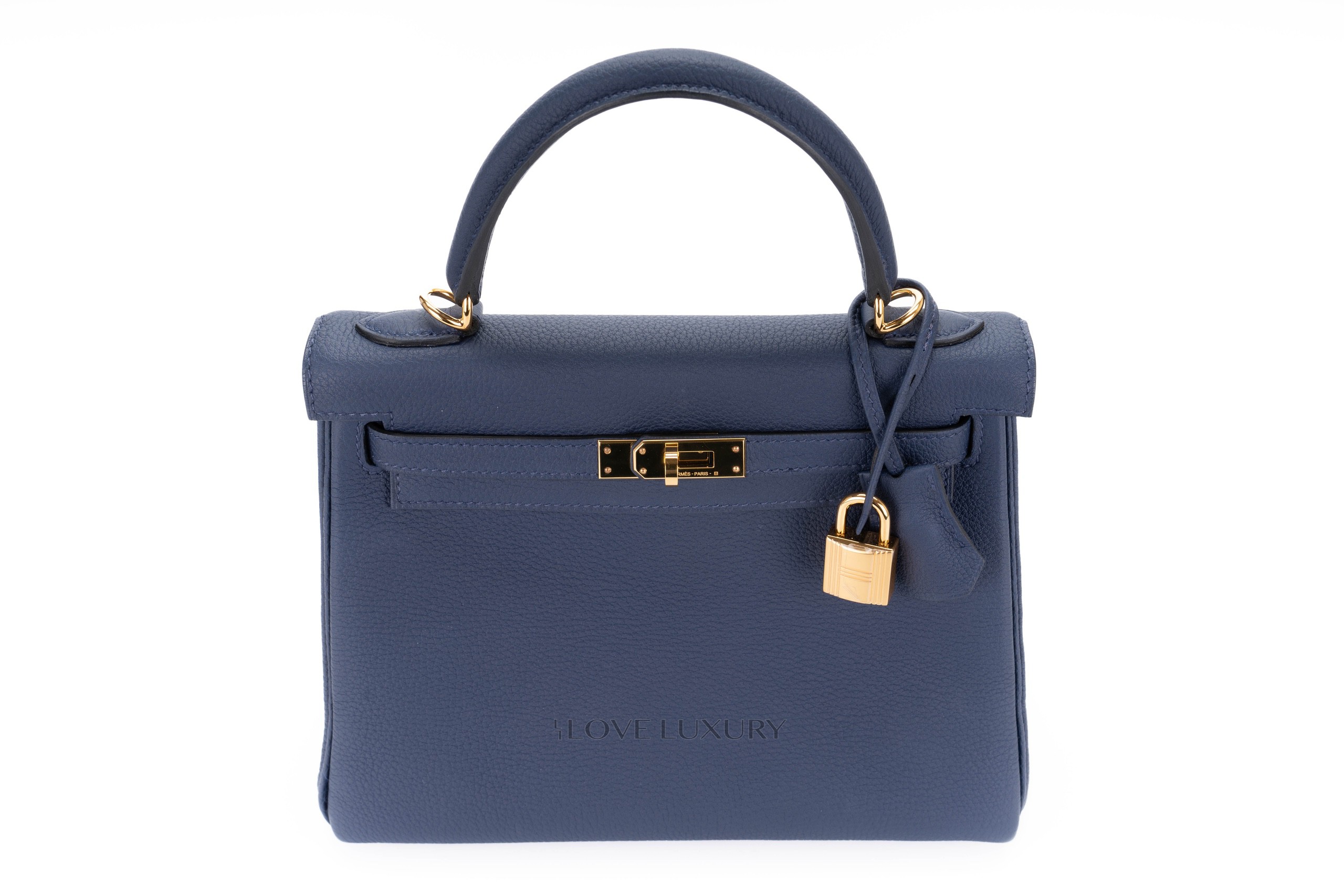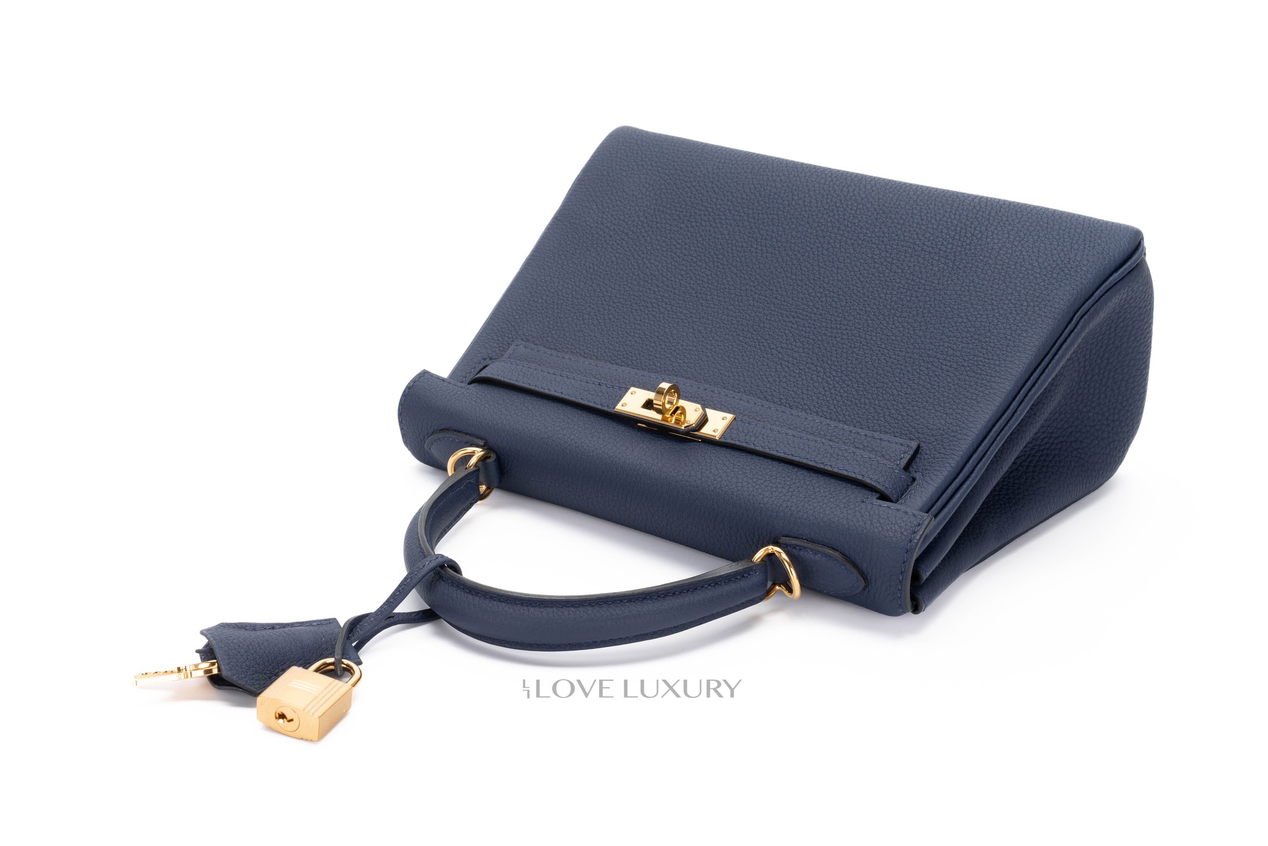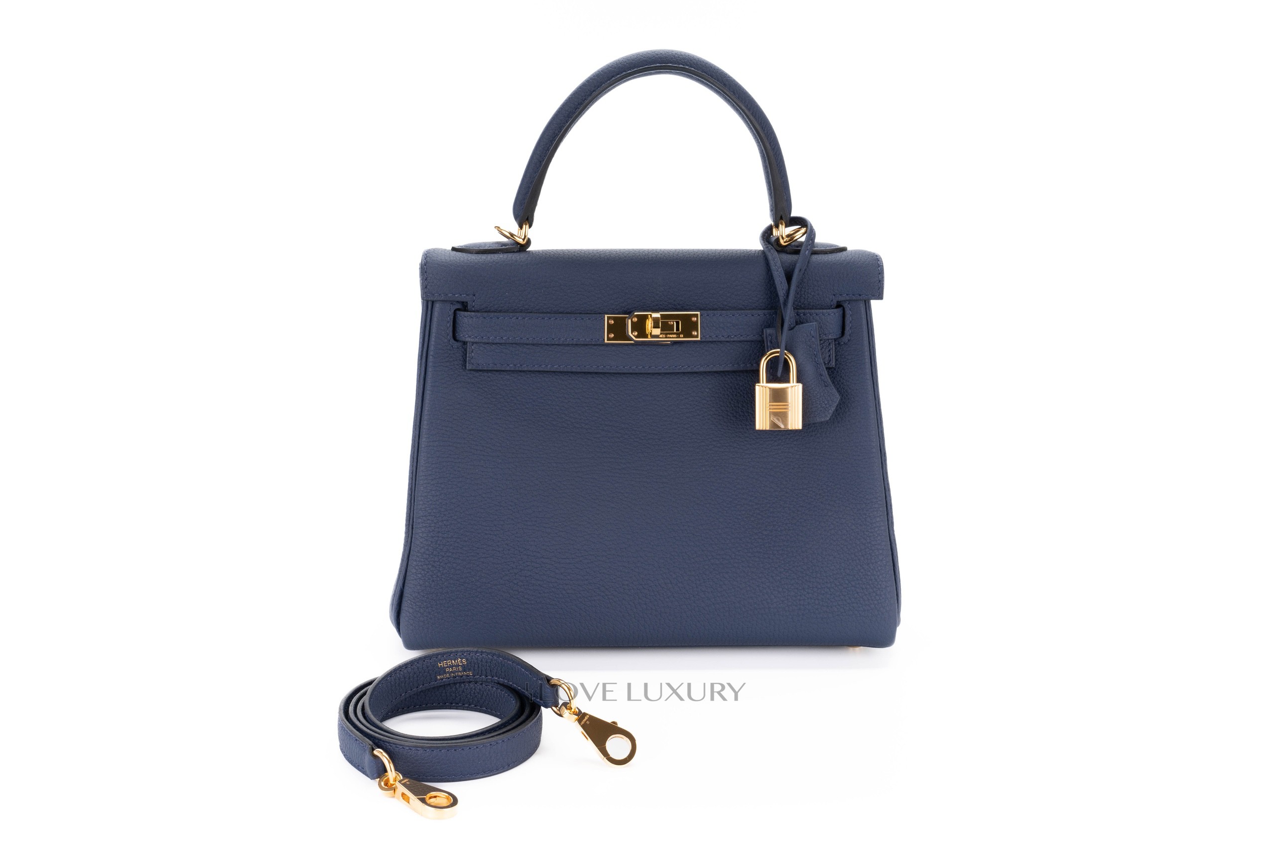 Hermès Kelly 25 Togo Bleu Sapphir Gold Hardware / U stamp 2022 Excellent Pre-Loved condition.