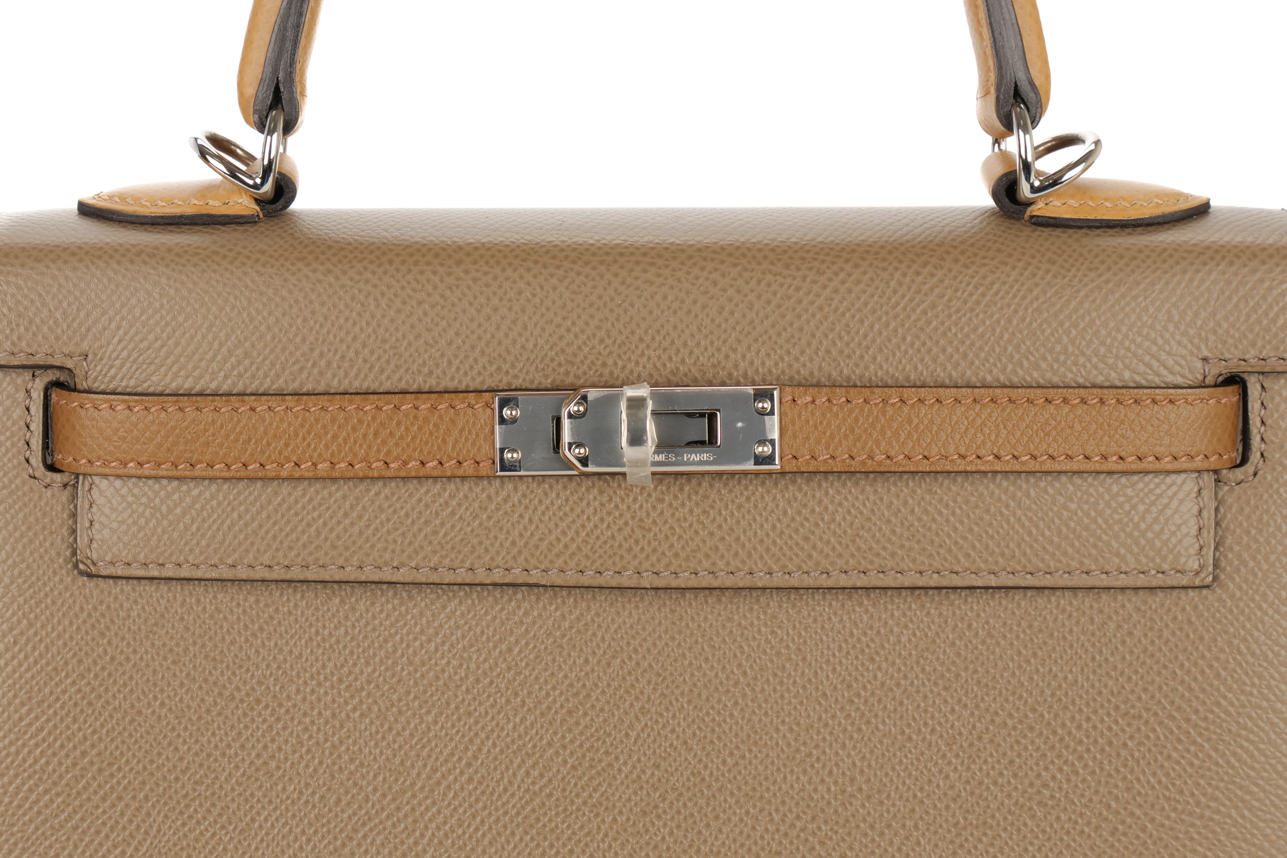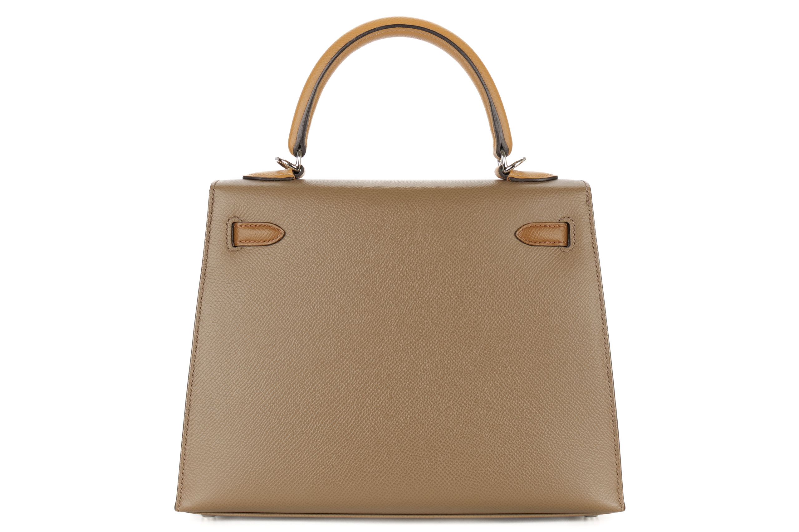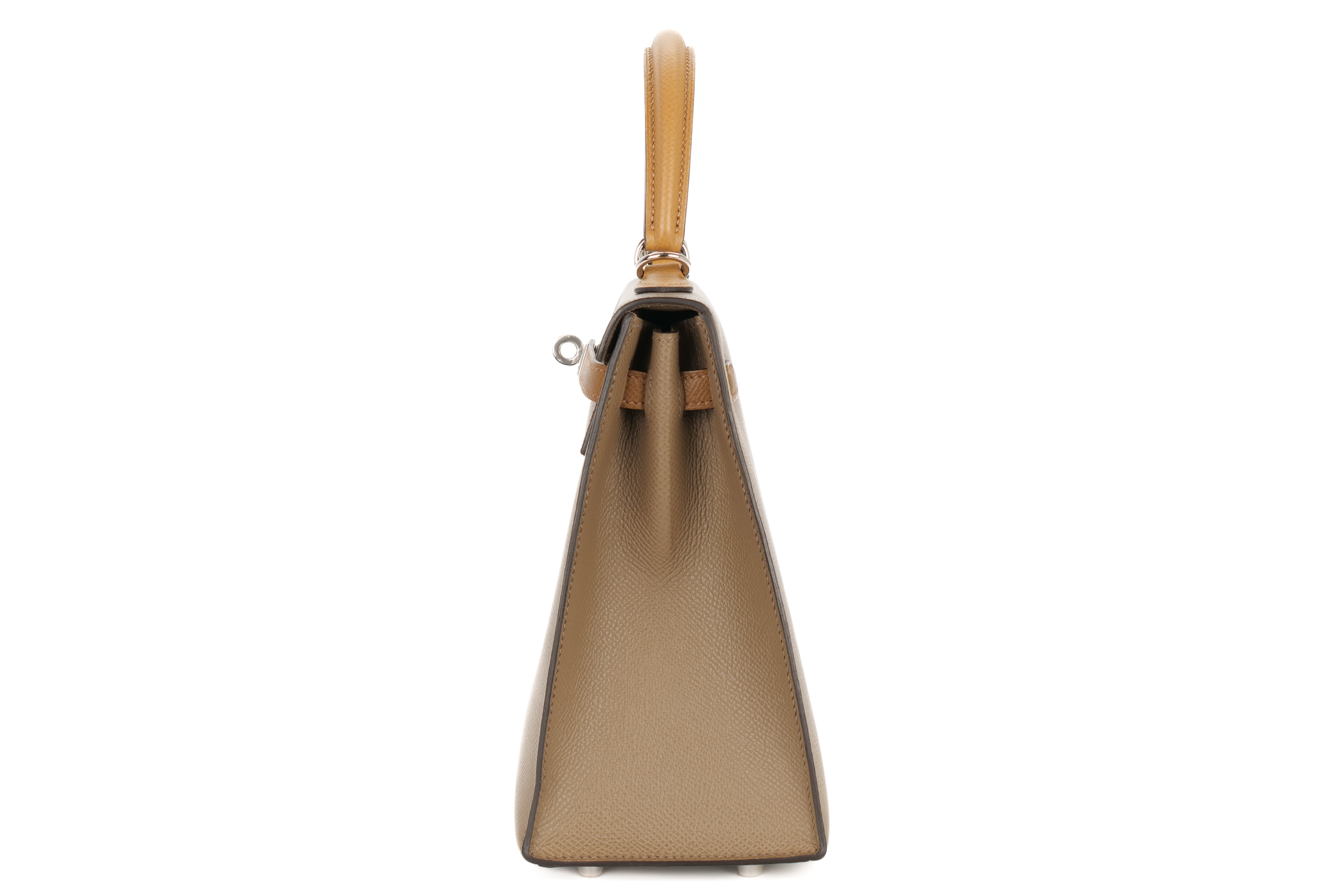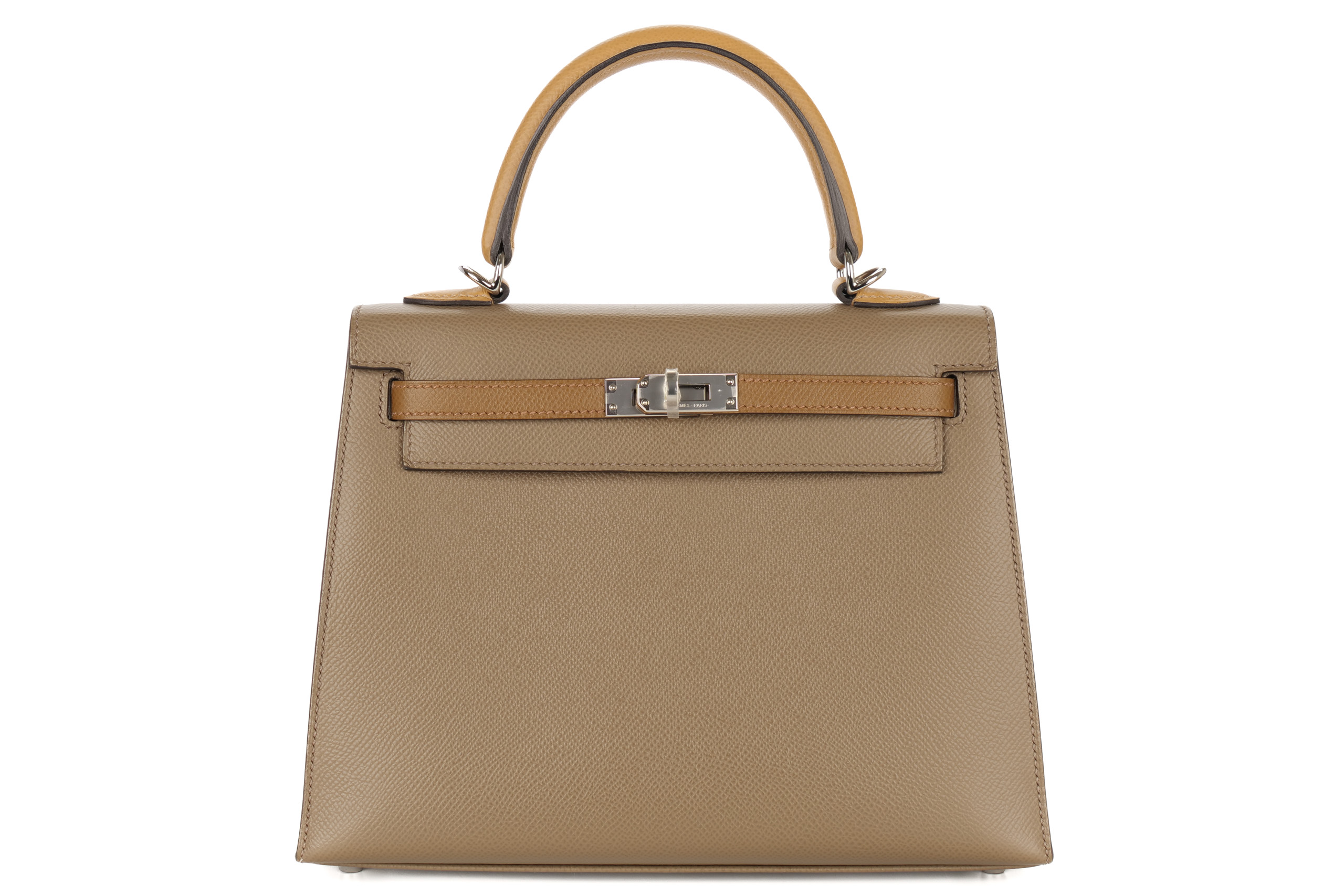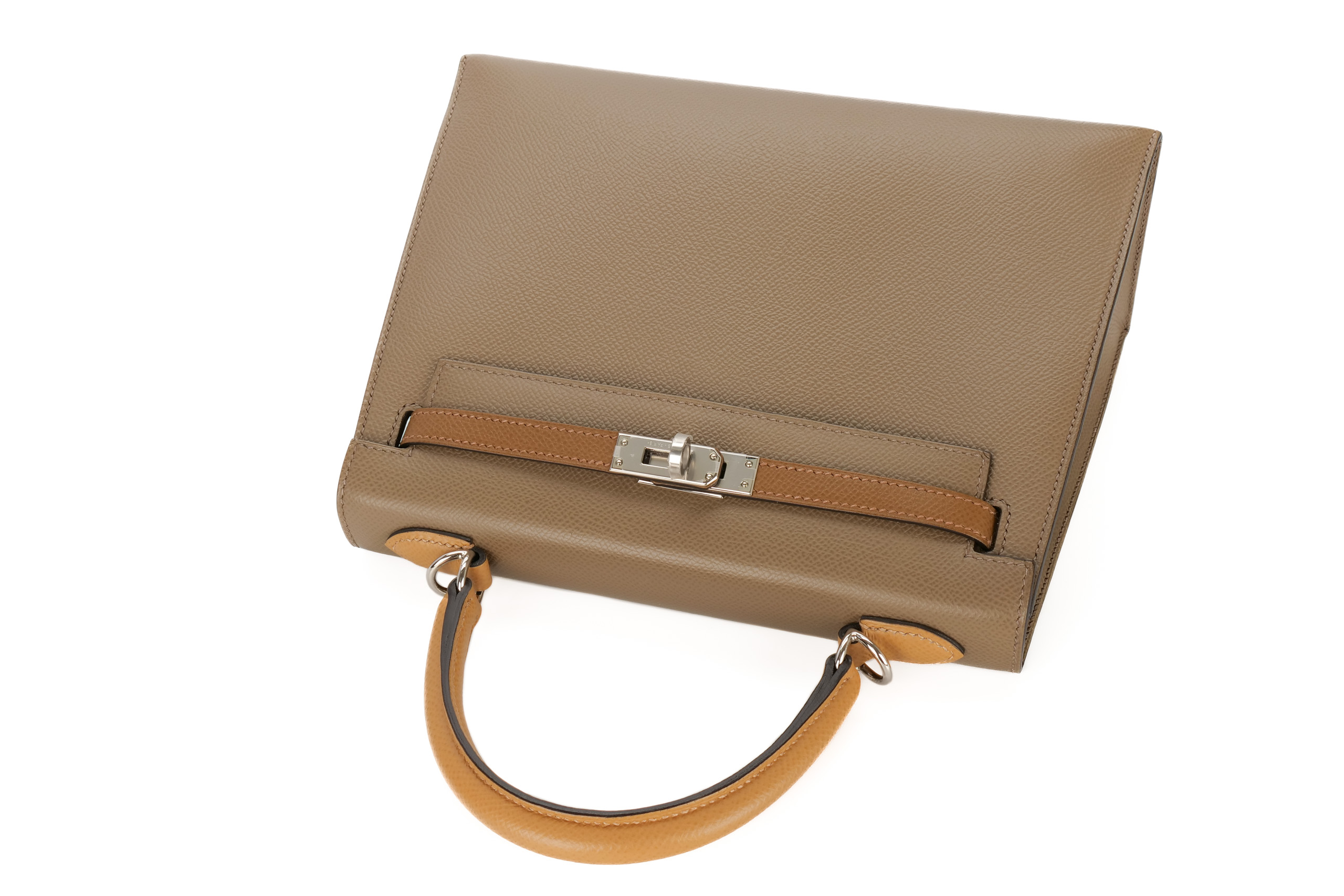Hermès Kelly 25 Tri-Color Etoupe / Alezan / Biscuit Epsom Palladium Hardware/ Z Stamp 2021, Brand New