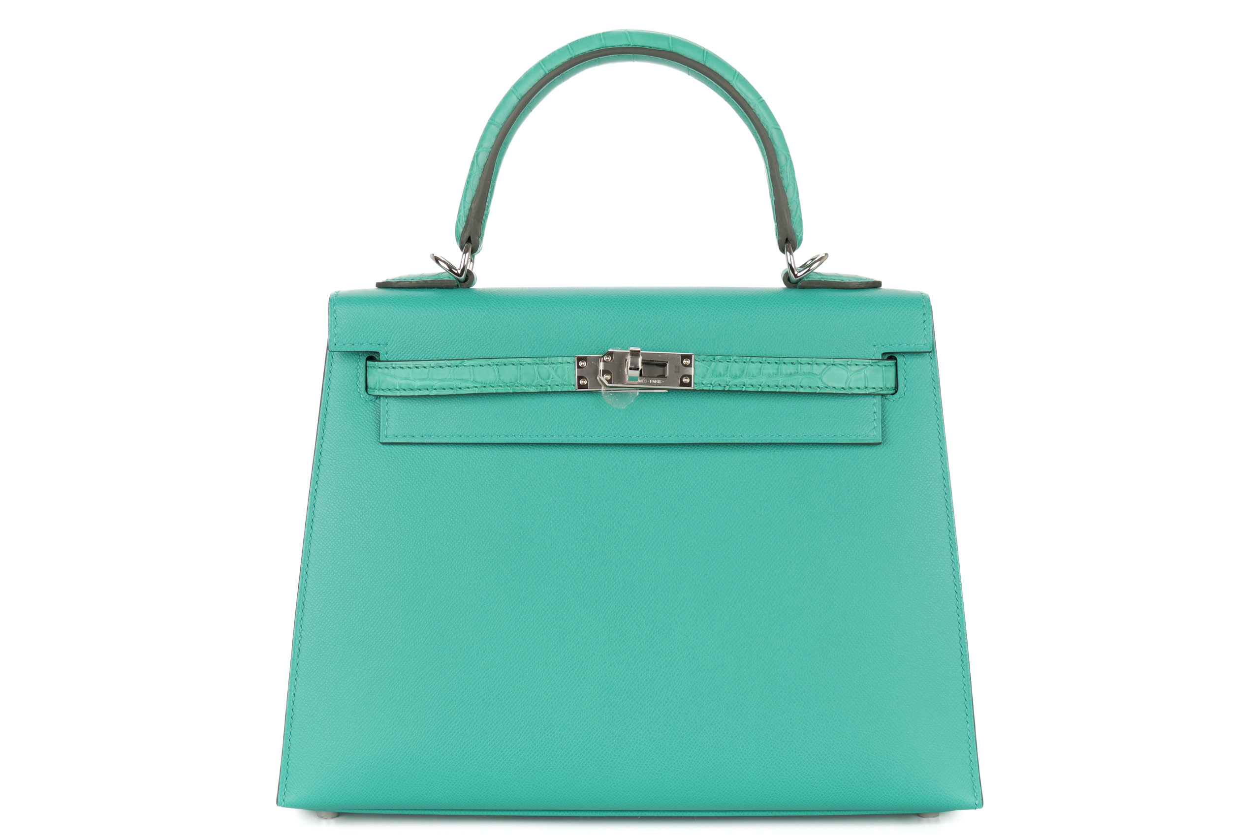 Hermès Kelly 25 Vert Verone / Vert Jade Madame & Alligator Mississipi Touch Palladium Hardware / W Stamp 2024, Brand New