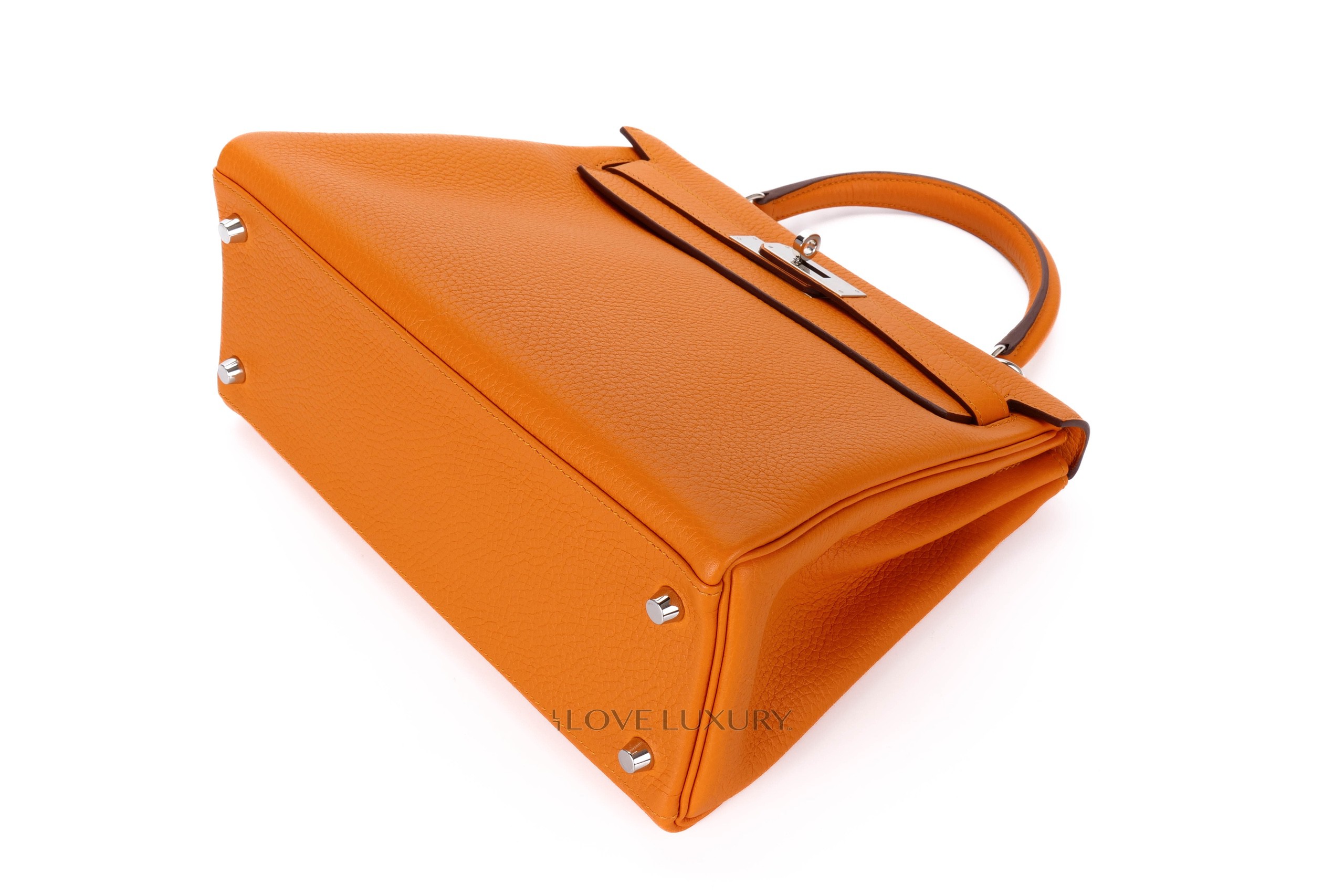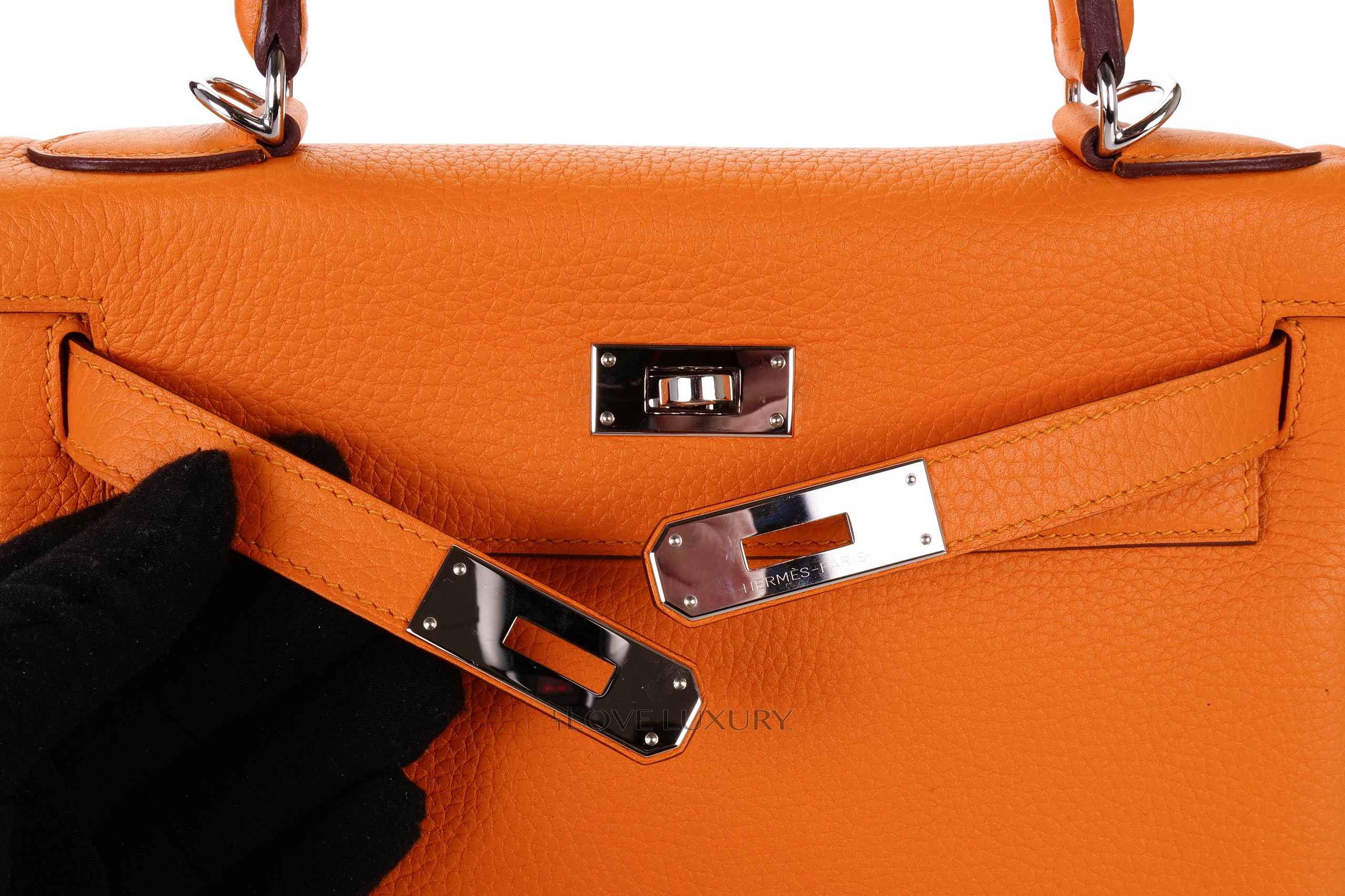 Hermès Kelly 28 Apricot Clemence Palladium Hardware / D stamp 2019 Pre-Loved condition