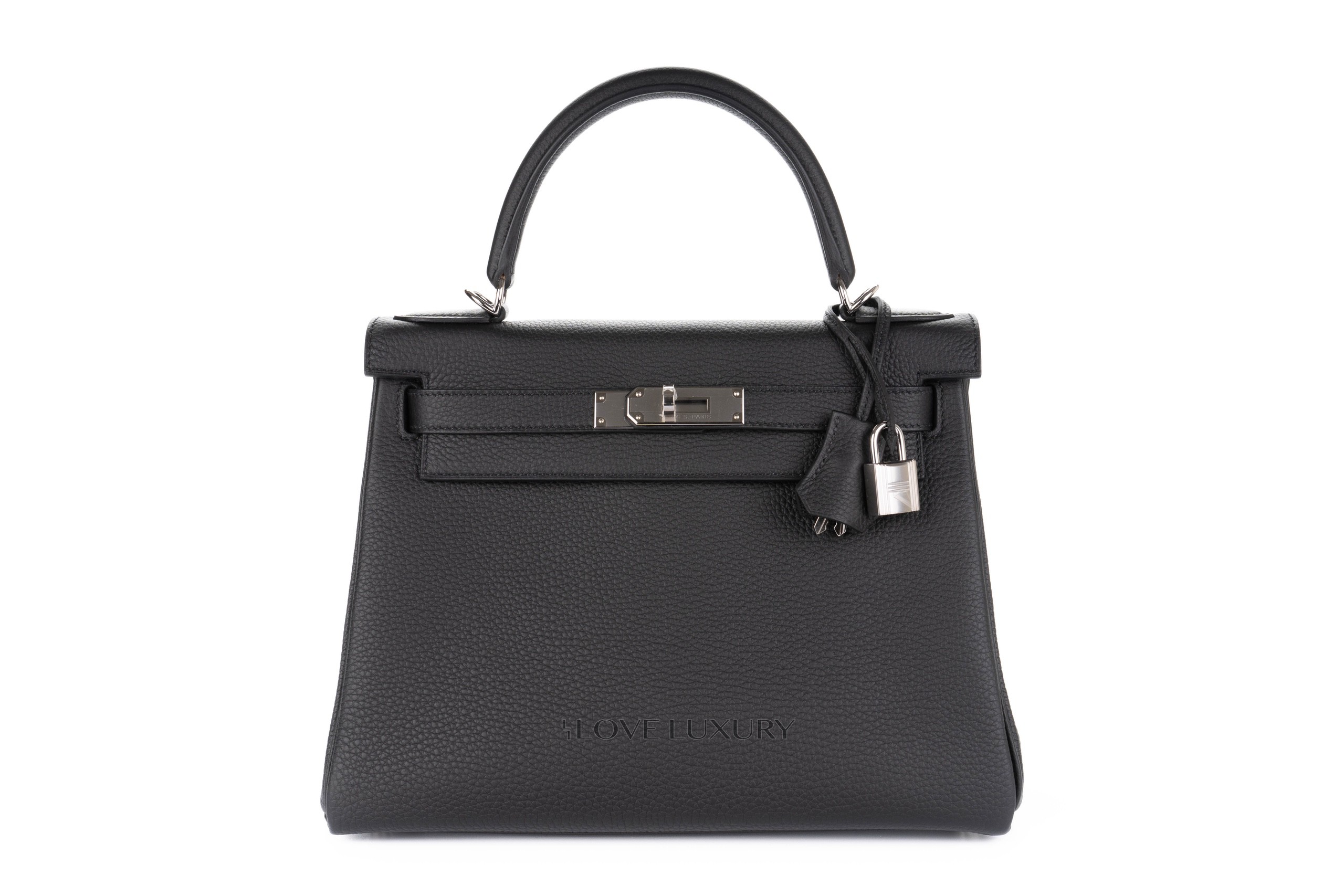 Hermès Kelly 28 Togo Black Togo Palladium Hardware / B stamp 2023 Box Fresh Full Set.