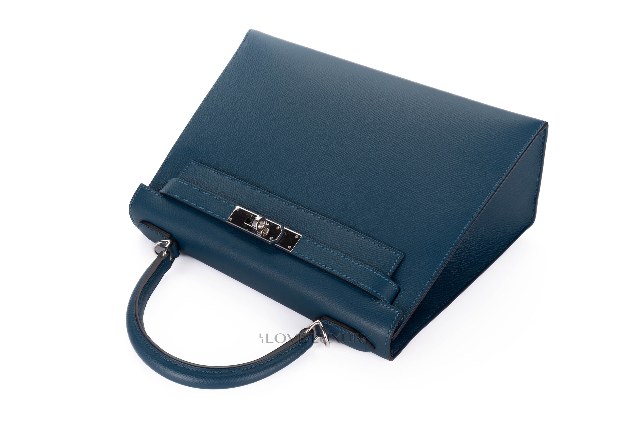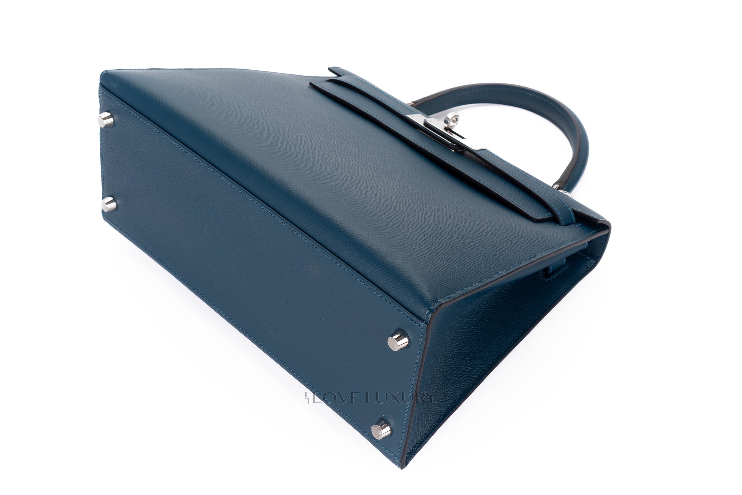 Hermès Kelly 28 Bleu Azur Epsom Palladium Hardware / A stamp 2017 Pre-Loved condition