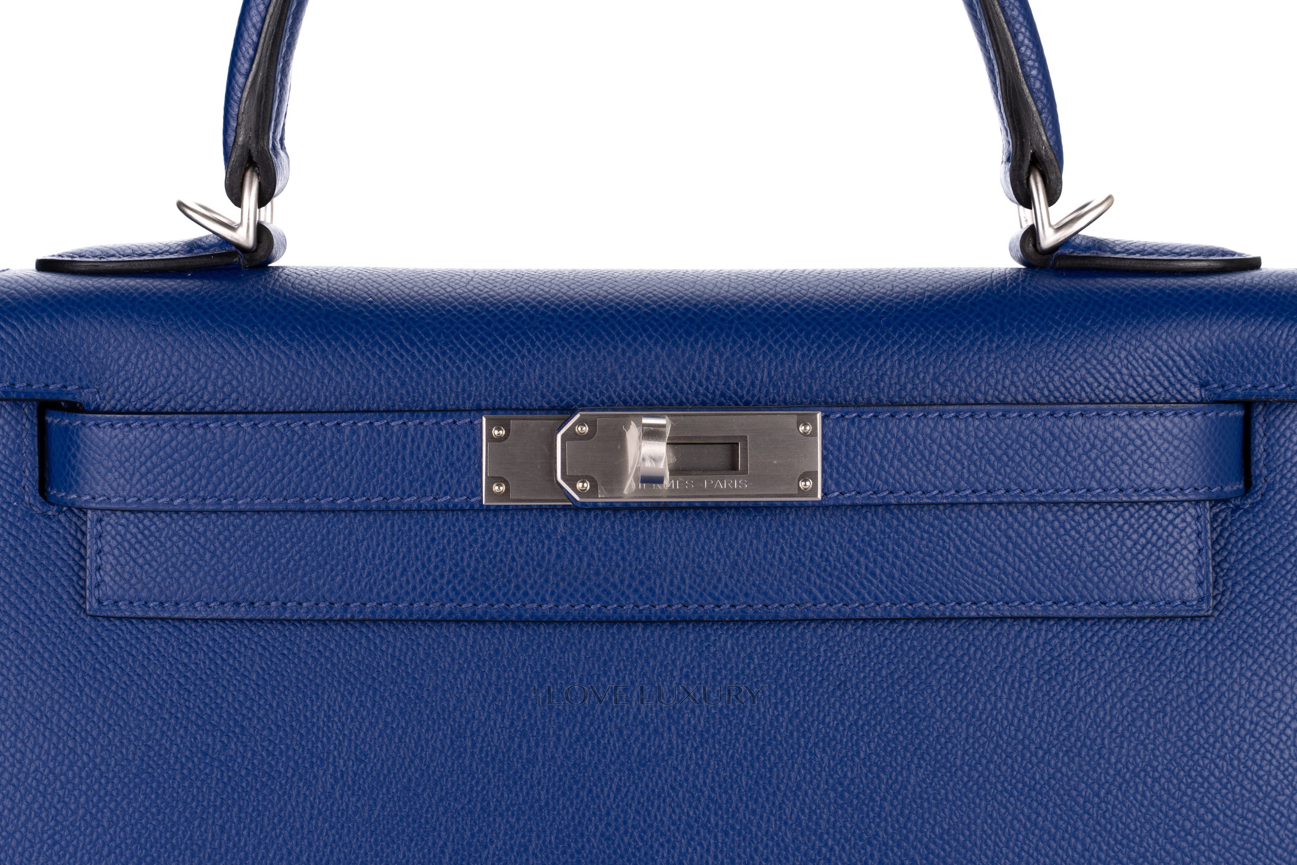 Hermès Kelly 28 Bleu Electrique Epsom Brushed Palladium Hardware / U stamp 2023 Receipt