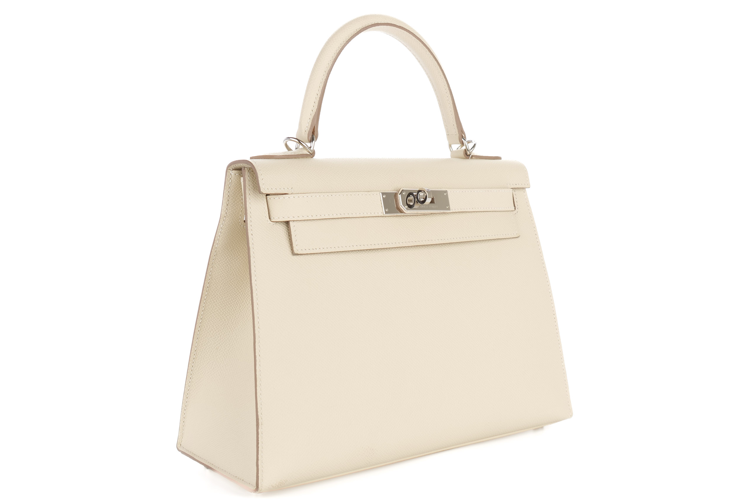 Hermès Kelly 28 Craie Epsom Palladium Hardware / W Stamp 2024, Preloved