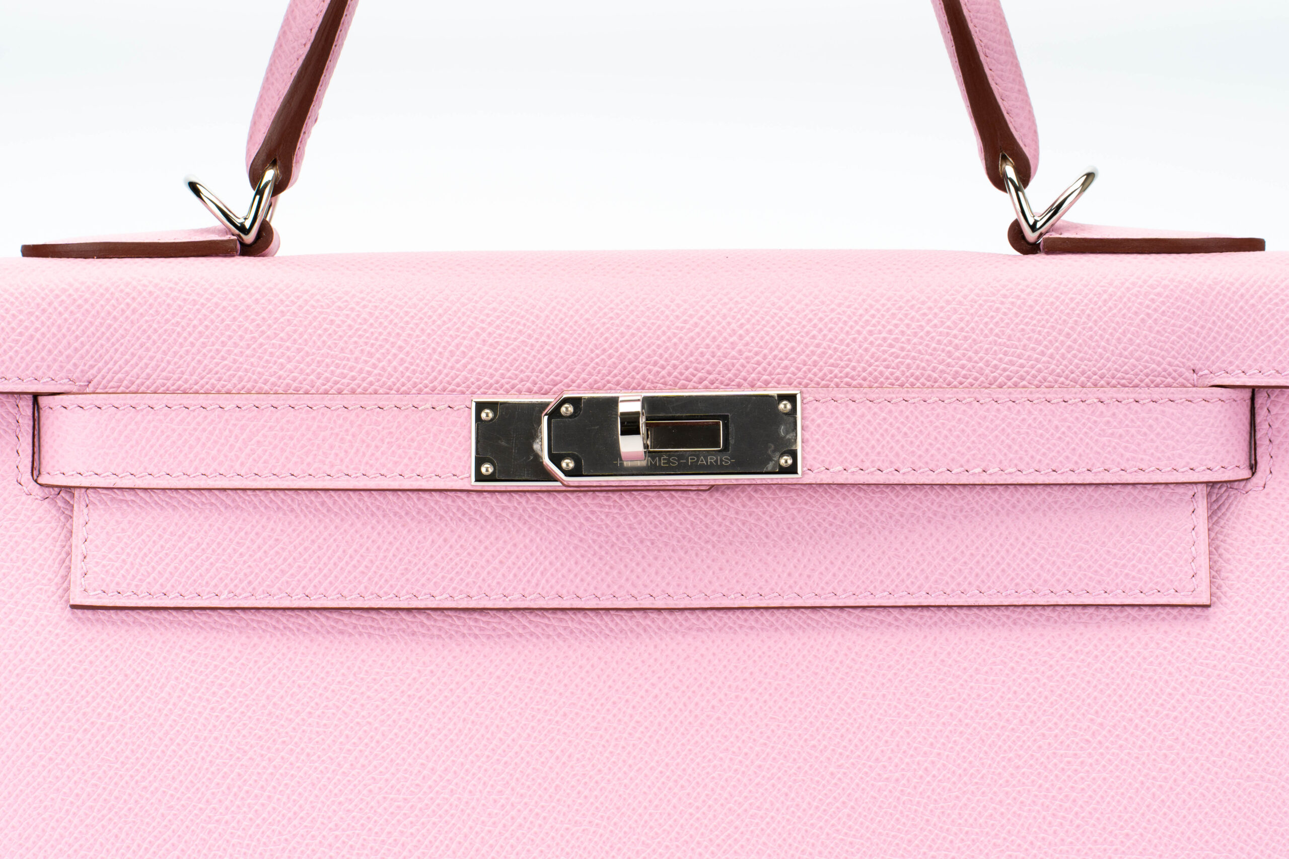 This Kelly 28 is in the Sellier version of the model giving it clean structured lines which are enhanced by the use of Epsom leather in it’s creation. The cool undertones of the highly sought after Mauve Sylvester are accentuated by the palladium hardware giving this bag a fun and youthful appearance.