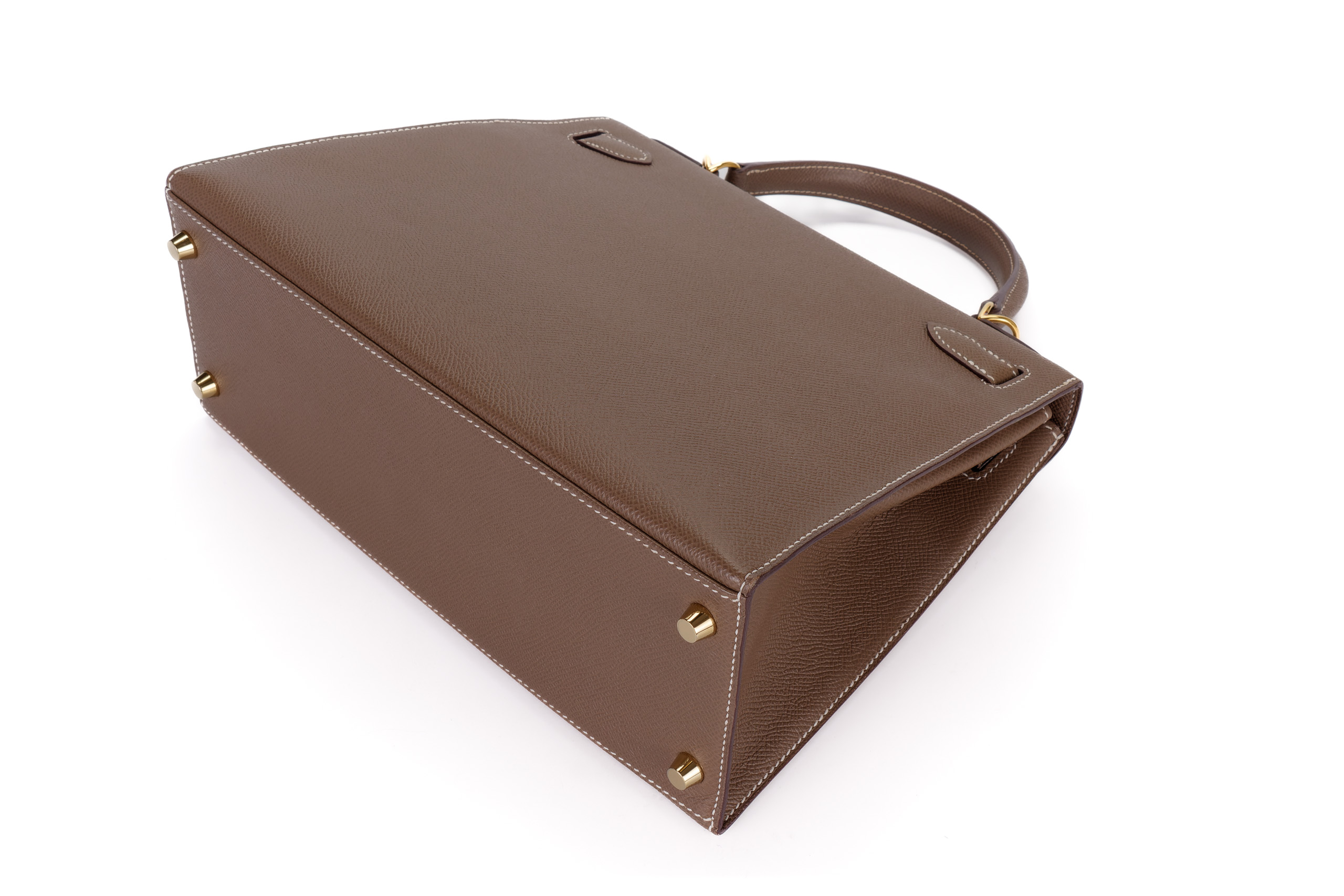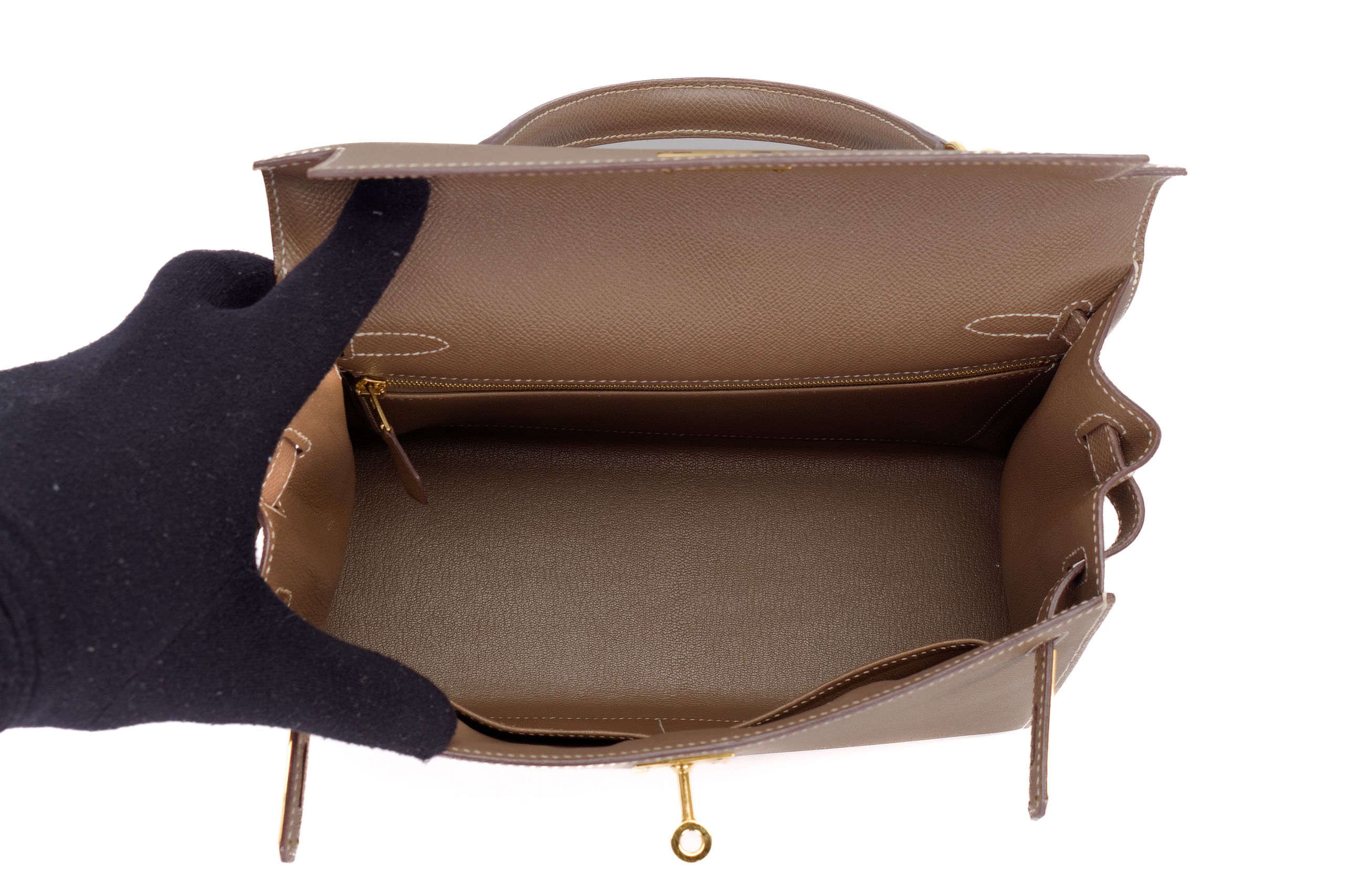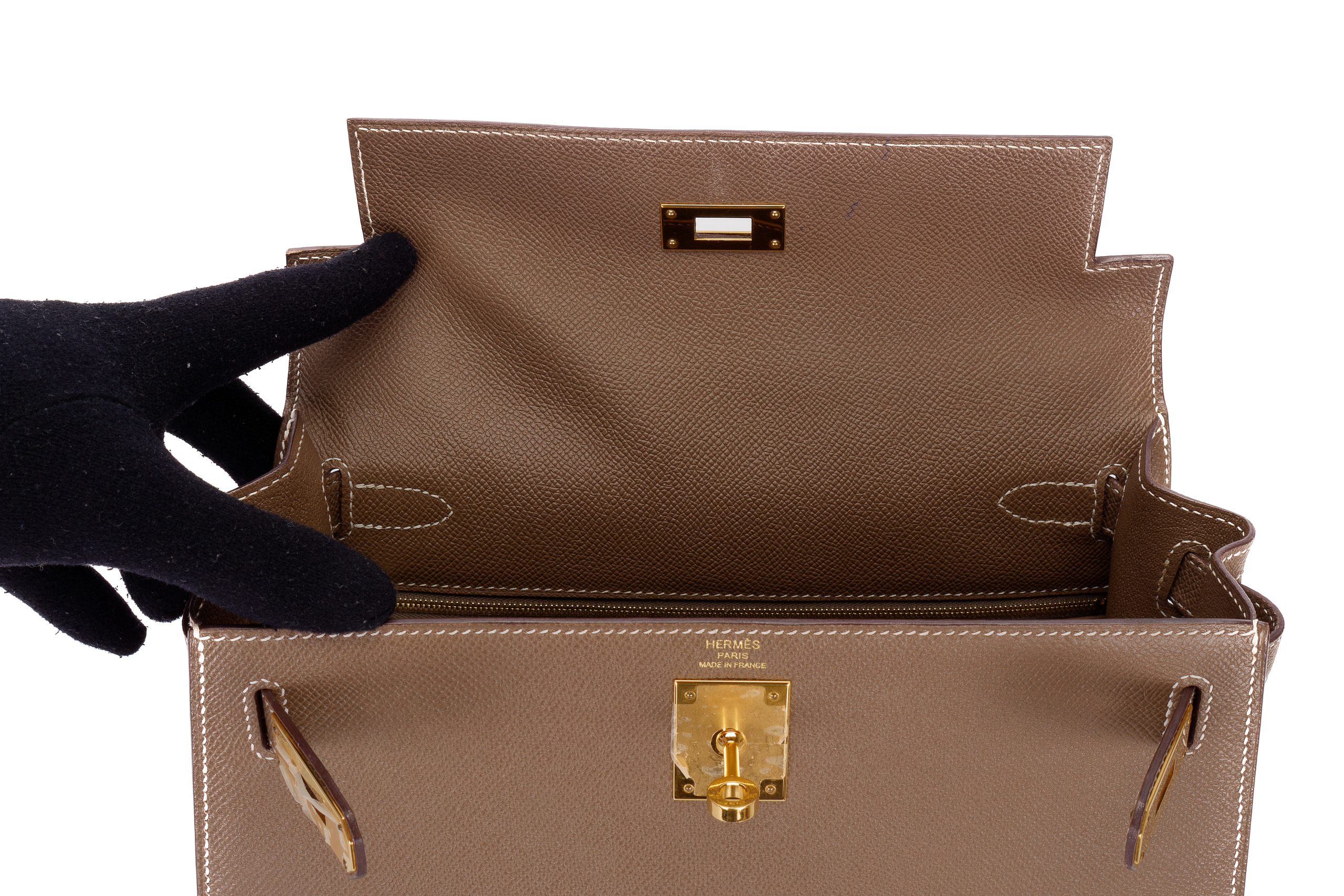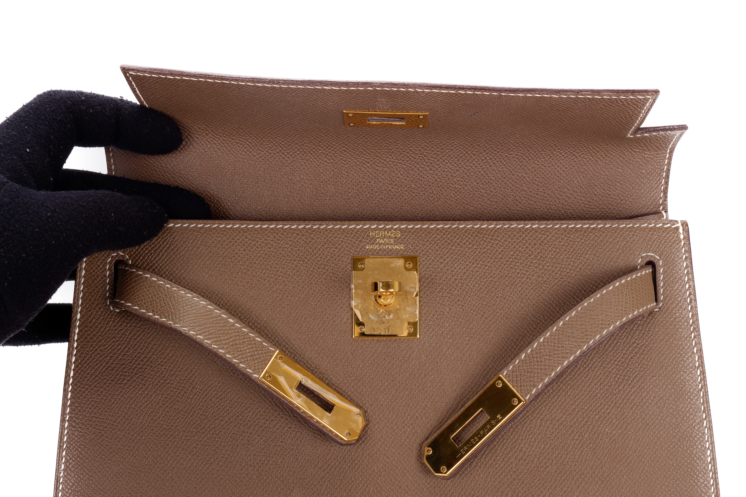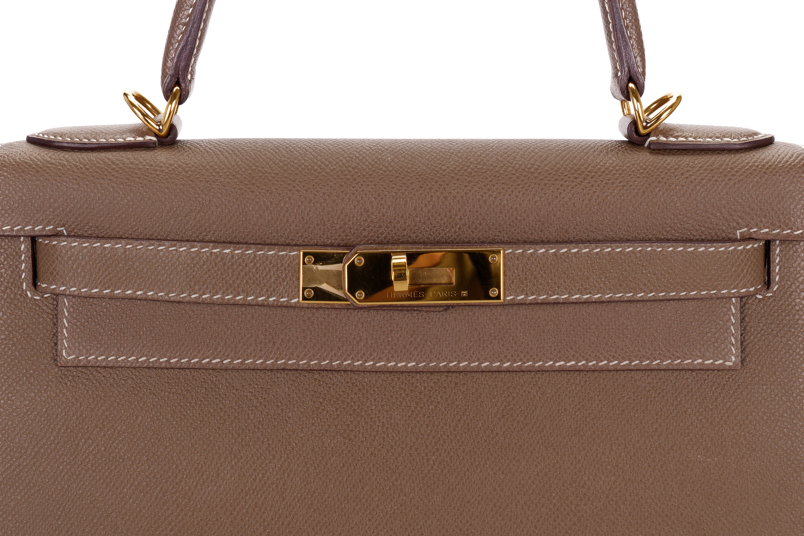 Hermès Kelly 28 Etoupe Epsom Gold Hardware / C stamp 2018 Pre-Loved condition