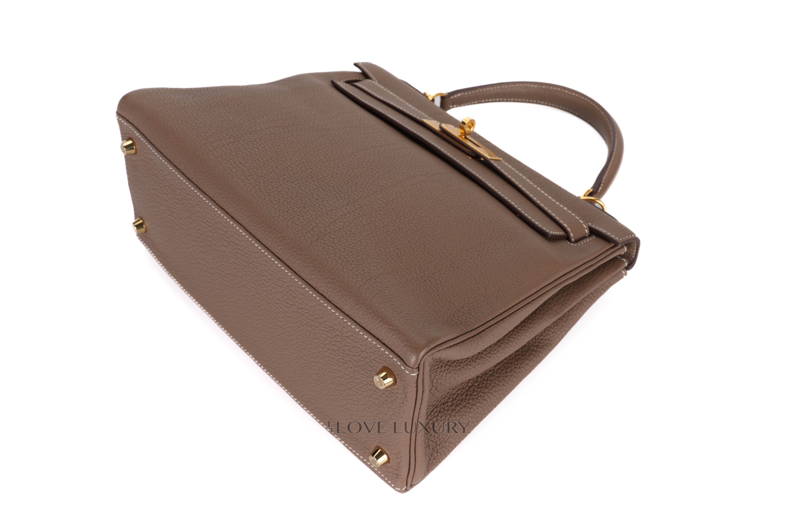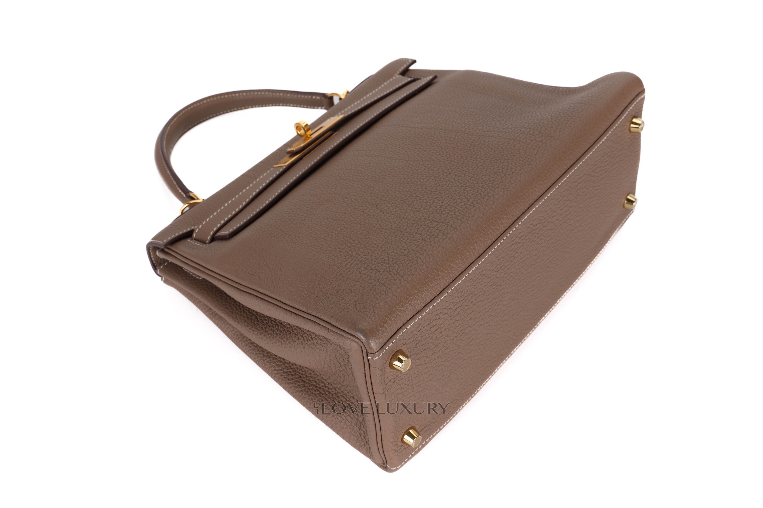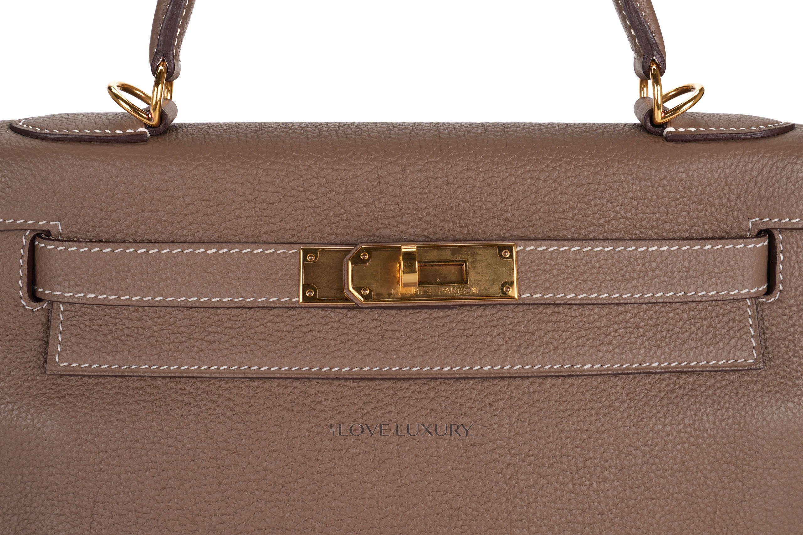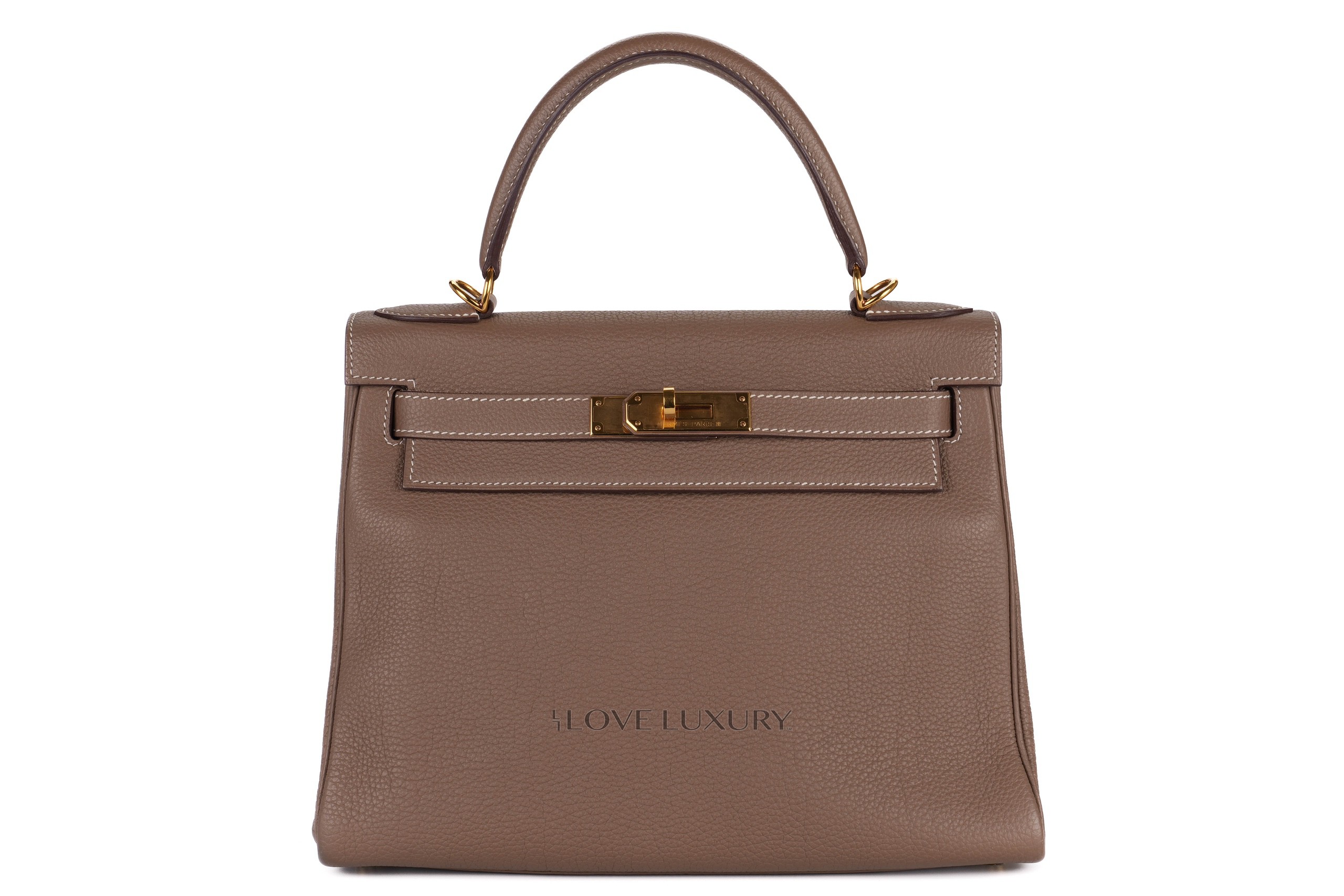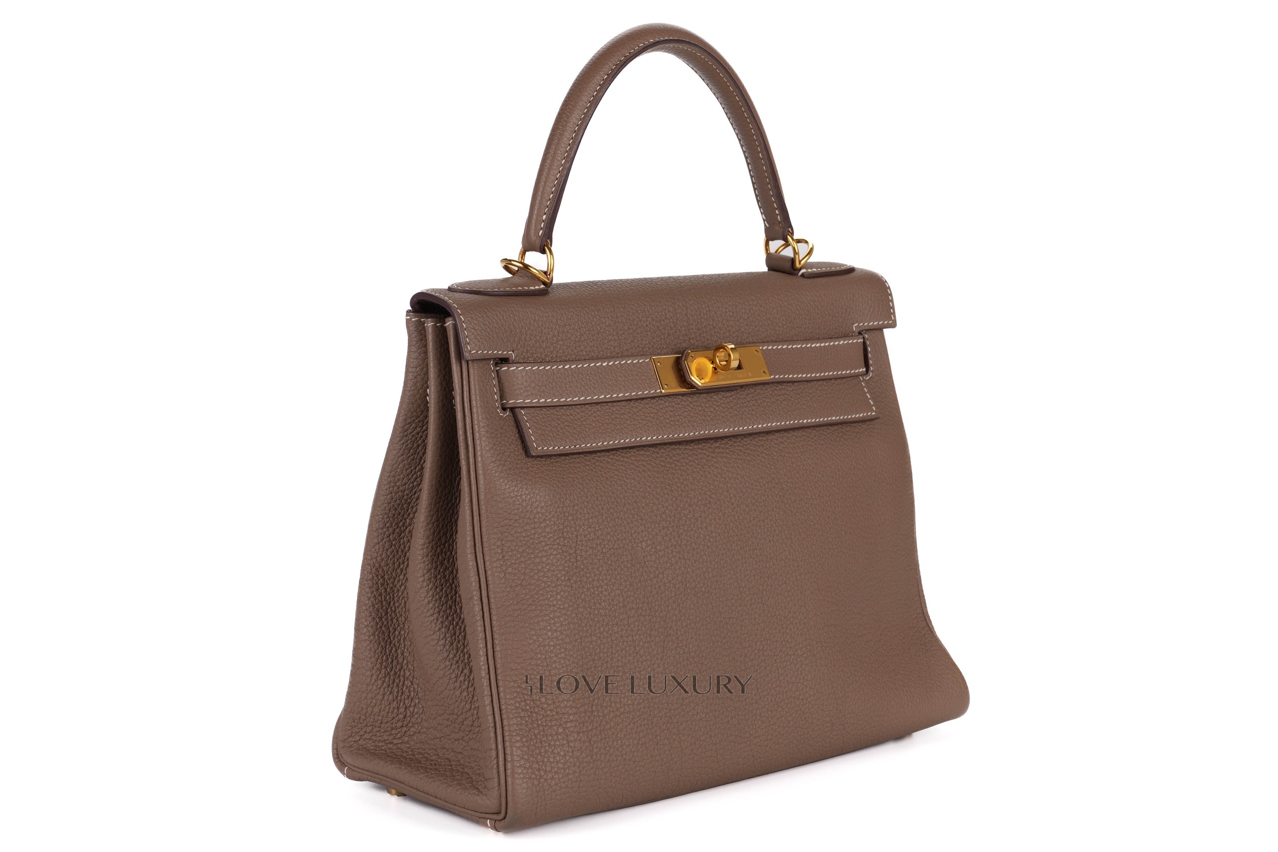 Hermès Kelly 28 Etoupe Togo Gold Hardware / D stamp 2019 Preloved condition