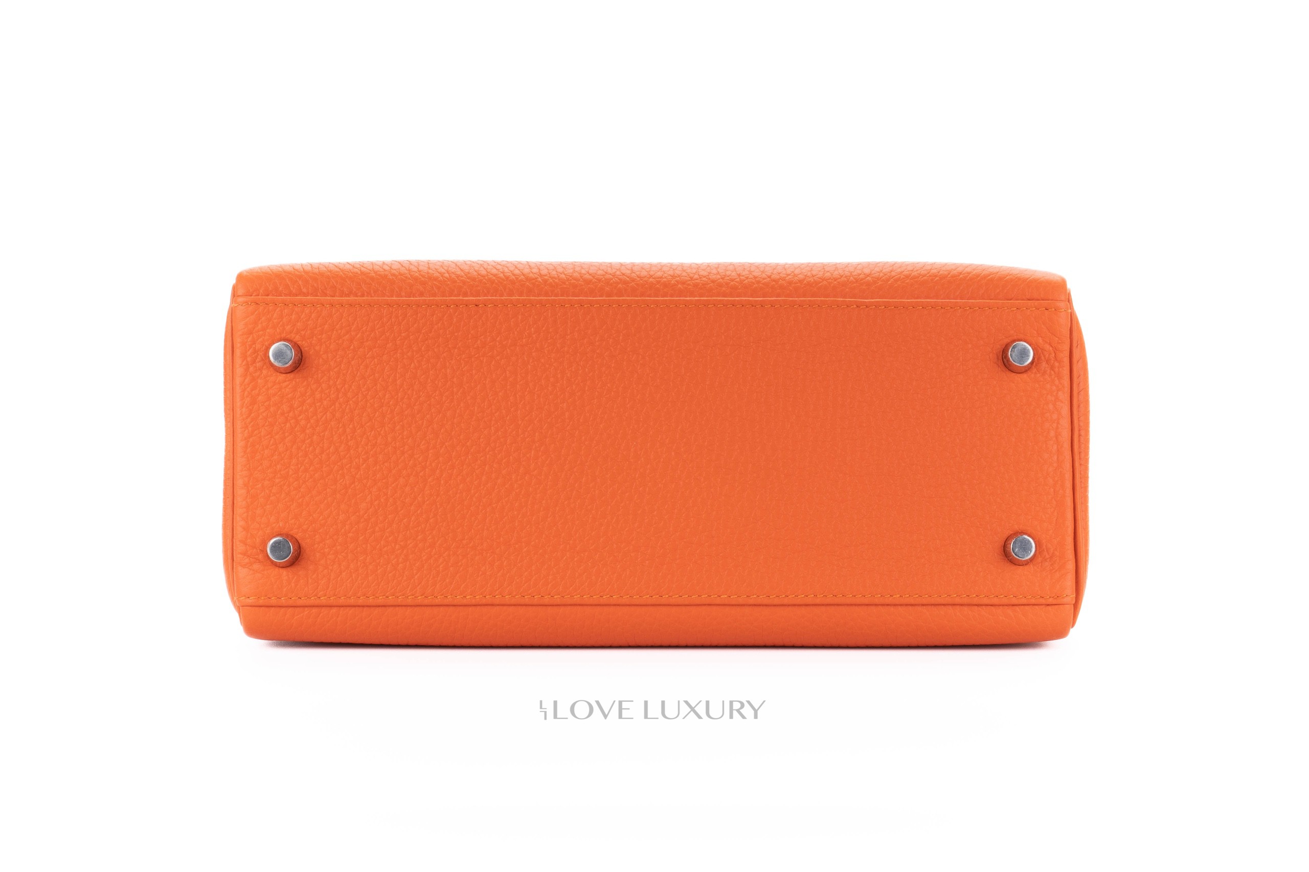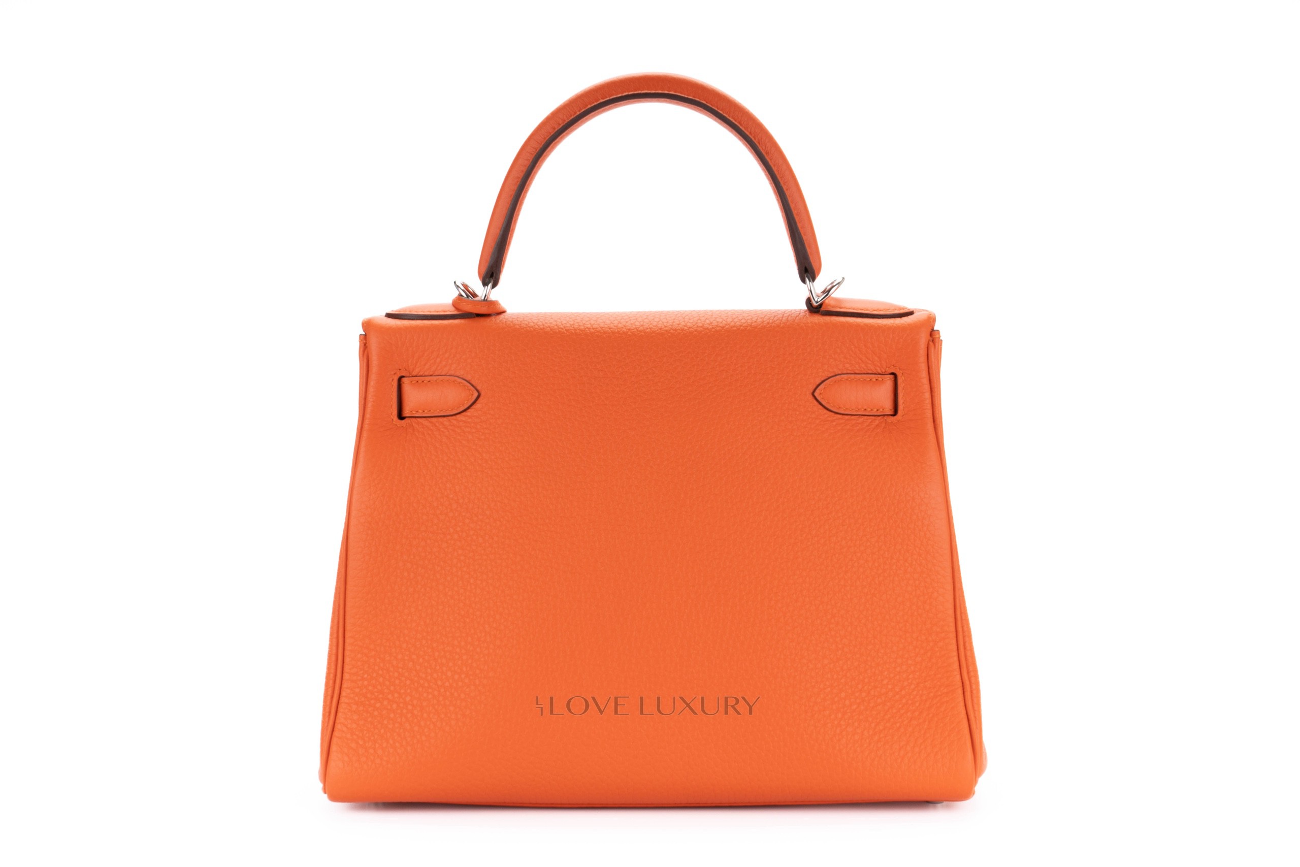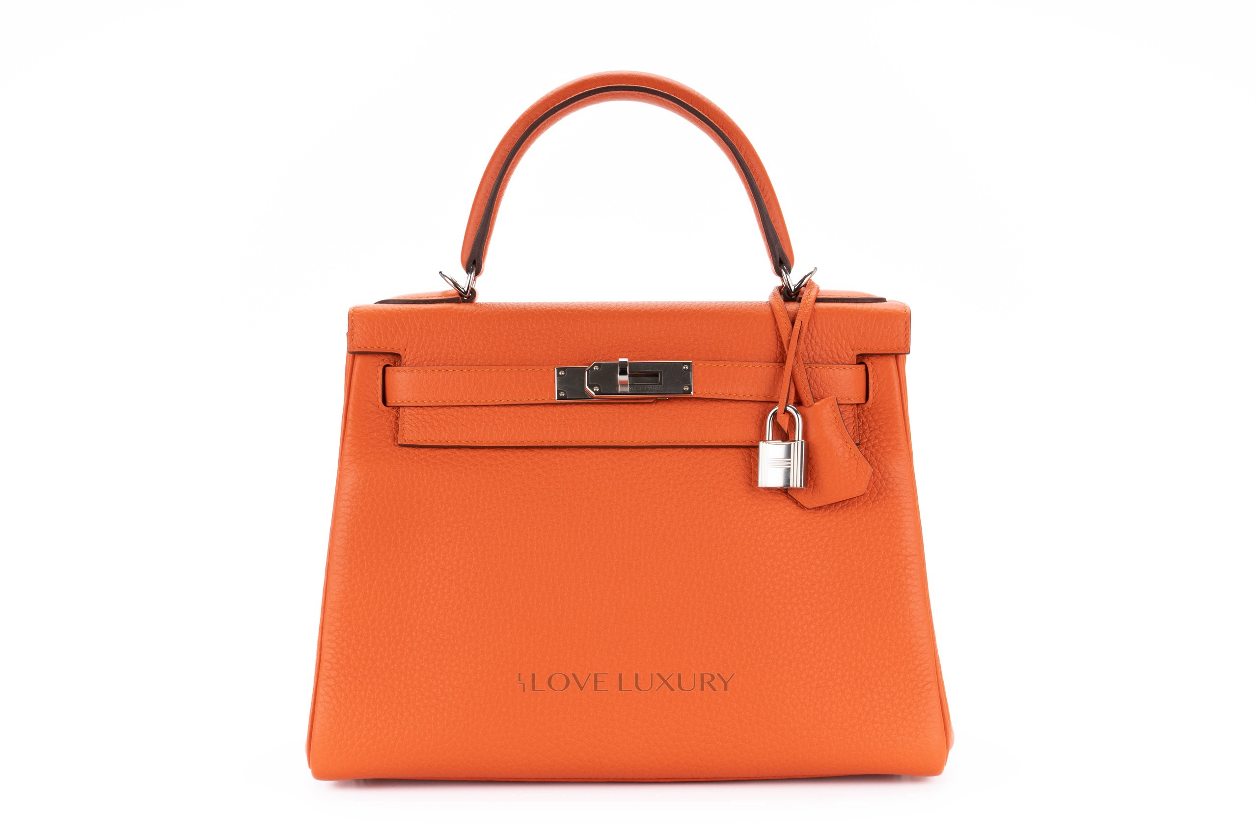 The most sought after Hermès orange “Feu”, this color is made for people with fearless class. On a Kelly 28 with Togo leather the bag would stand out and make an immediate statement. The hardware in Palladium just gives the bag a mordern youthful edge and makes the bag color pop even more. This bag comes Box fresh from the the store on a Z stamp.