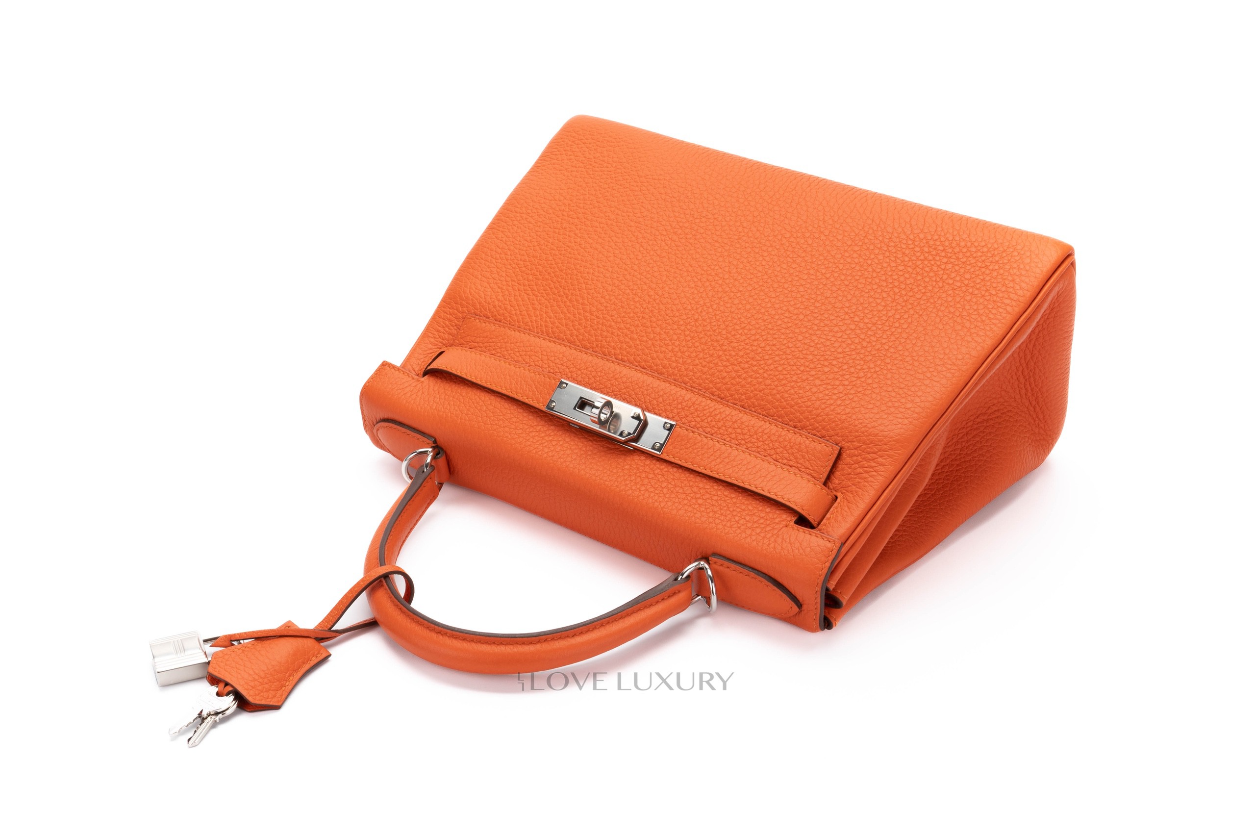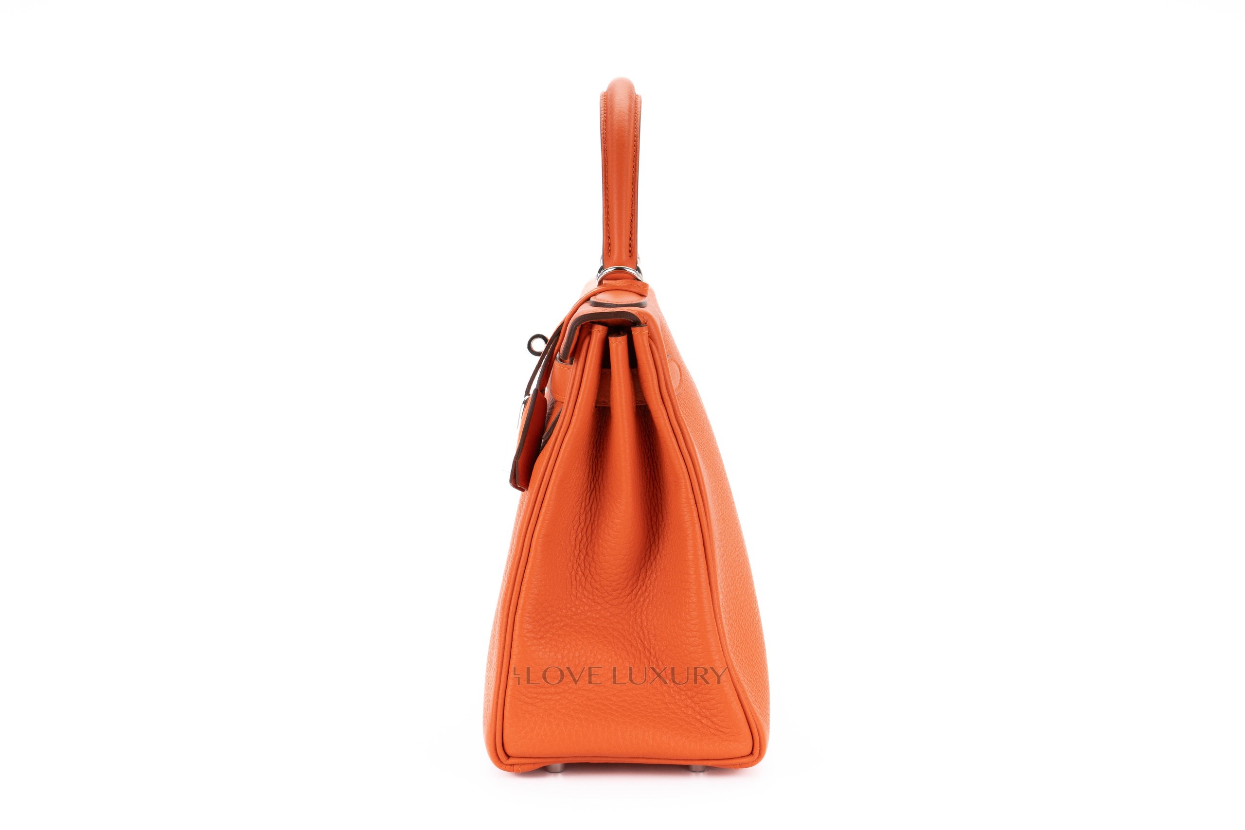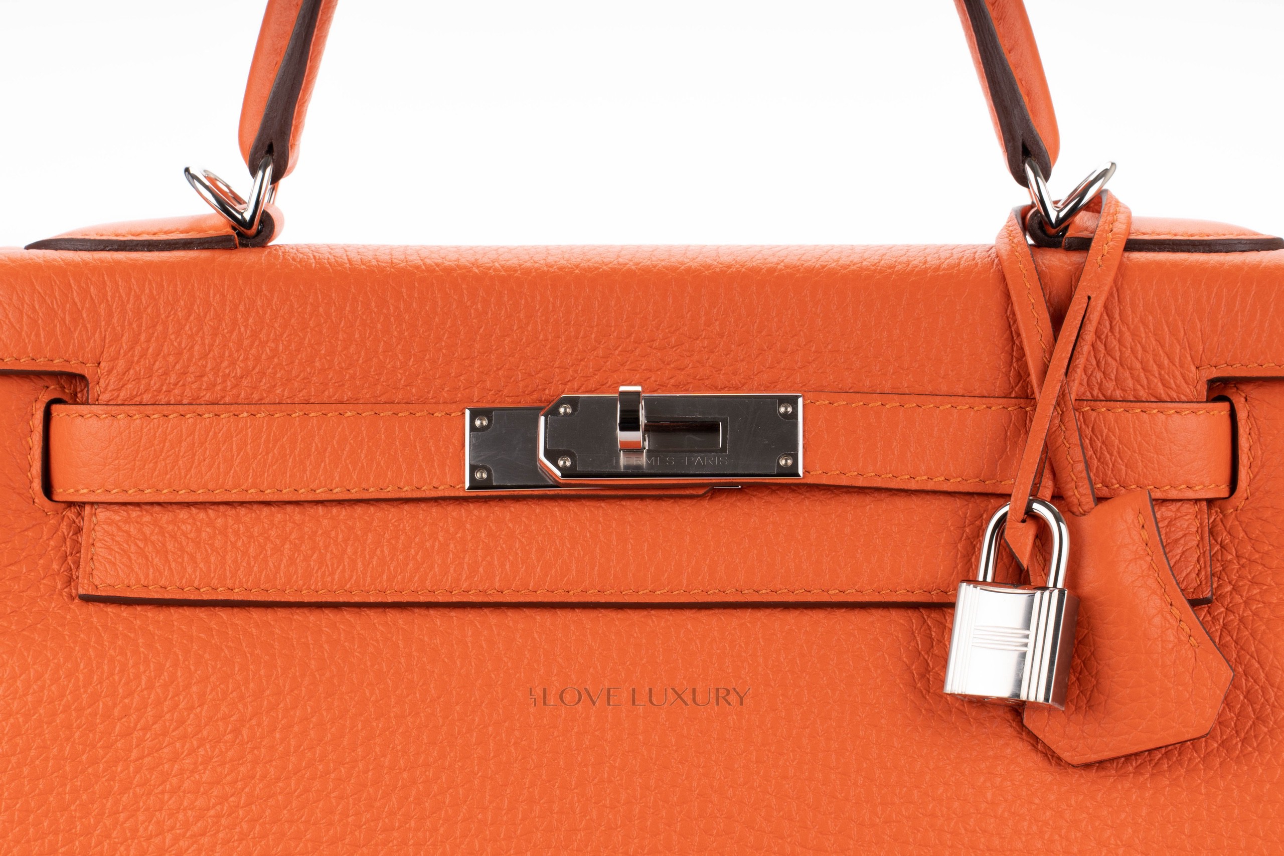 The most sought after Hermès orange “Feu”, this color is made for people with fearless class. On a Kelly 28 with Togo leather the bag would stand out and make an immediate statement. The hardware in Palladium just gives the bag a mordern youthful edge and makes the bag color pop even more. This bag comes Box fresh from the the store on a Z stamp.