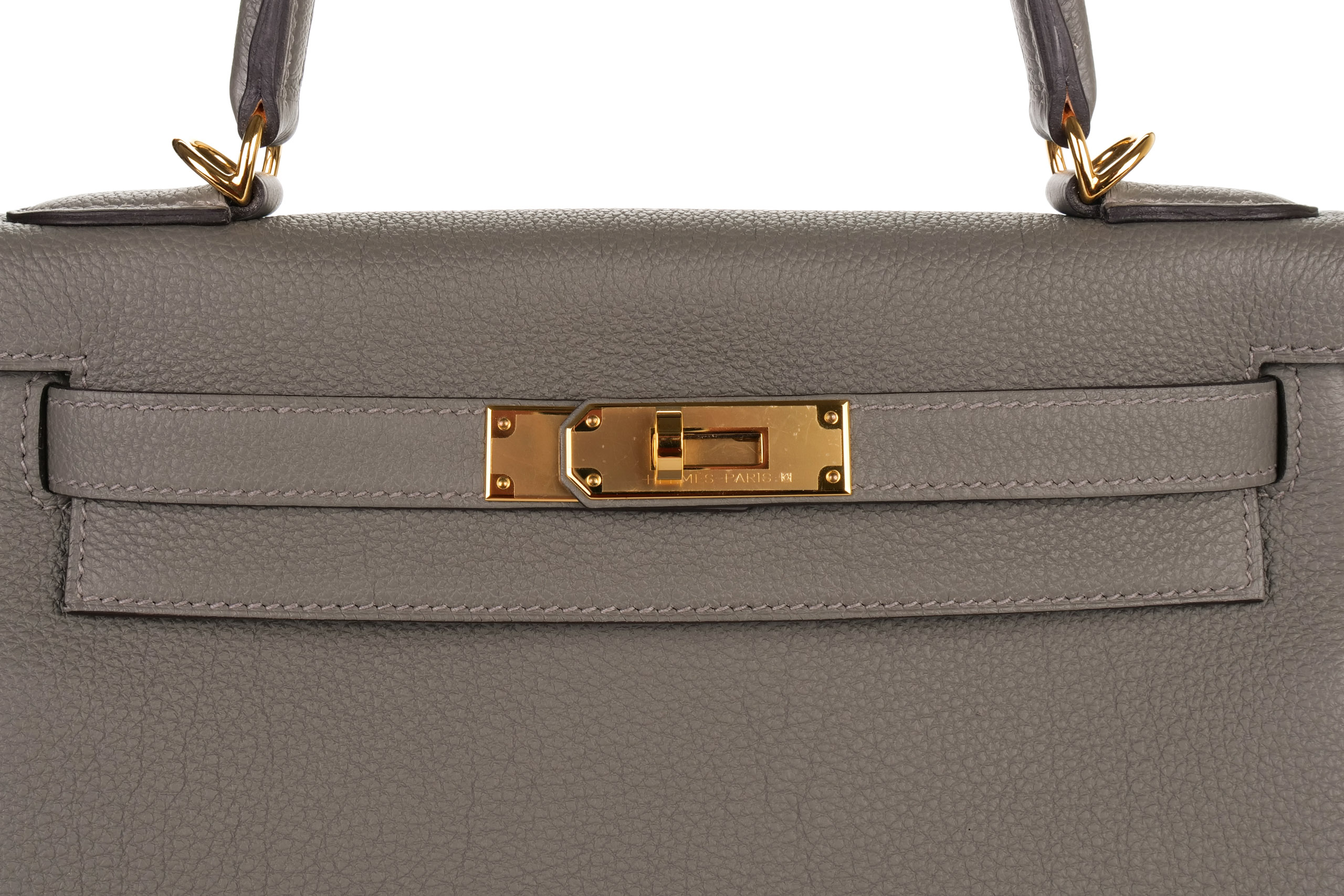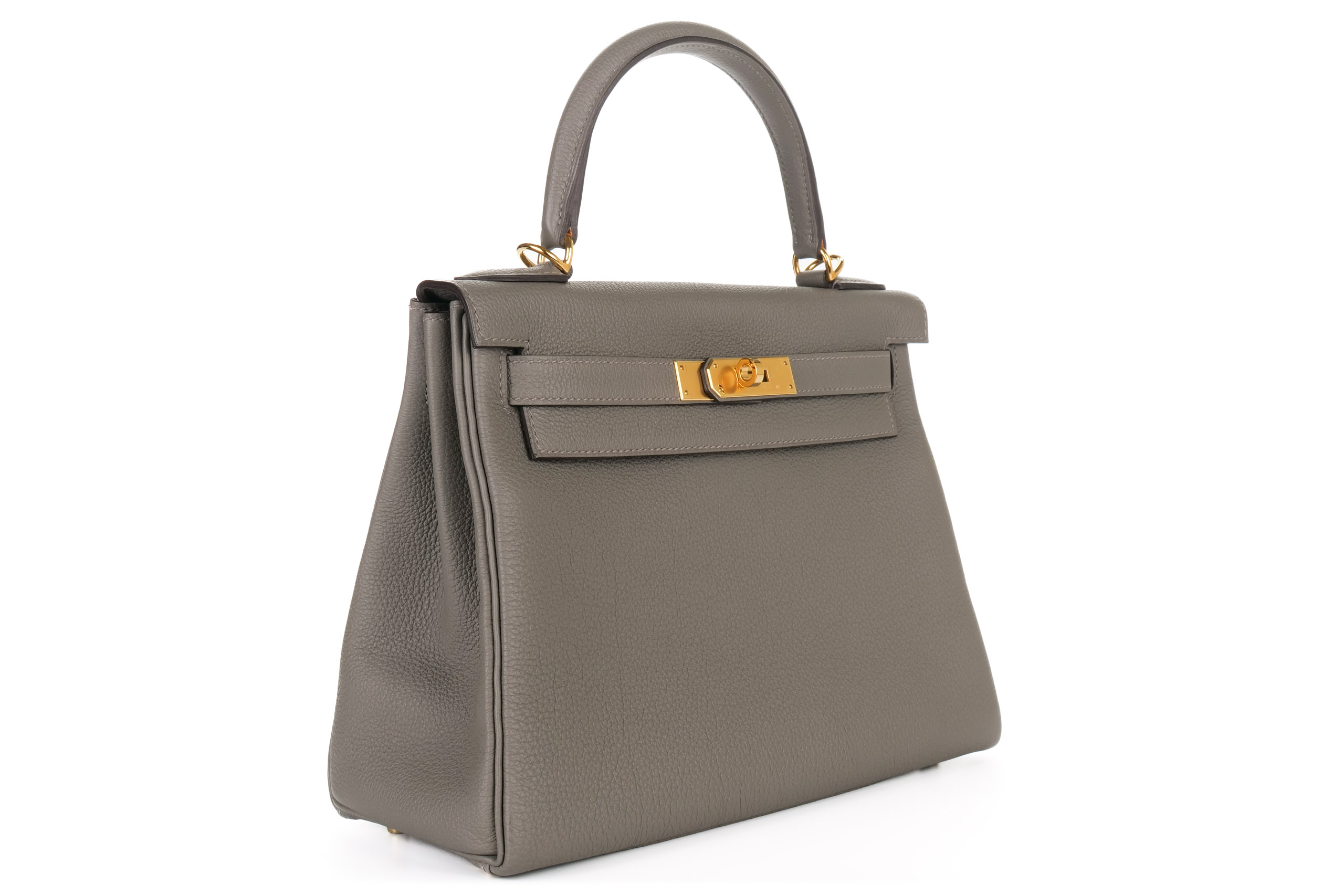 Hermès Kelly 28 Gris Meyer Togo Gold Hardware / B Stamp 2023 Box Fresh