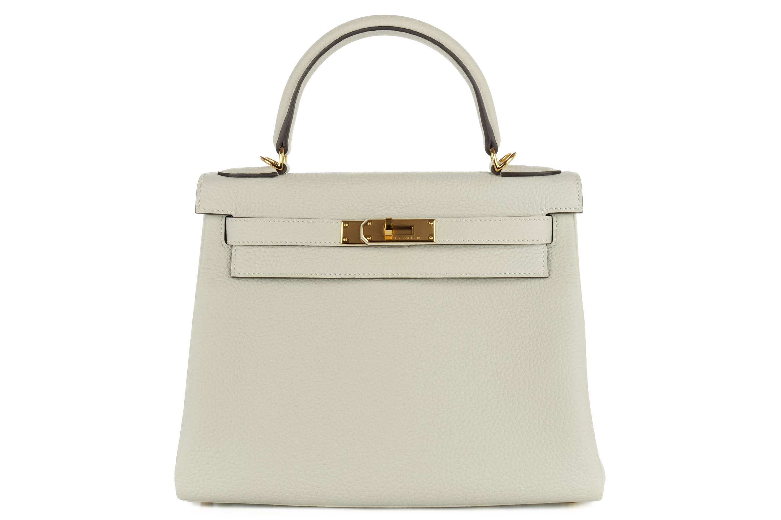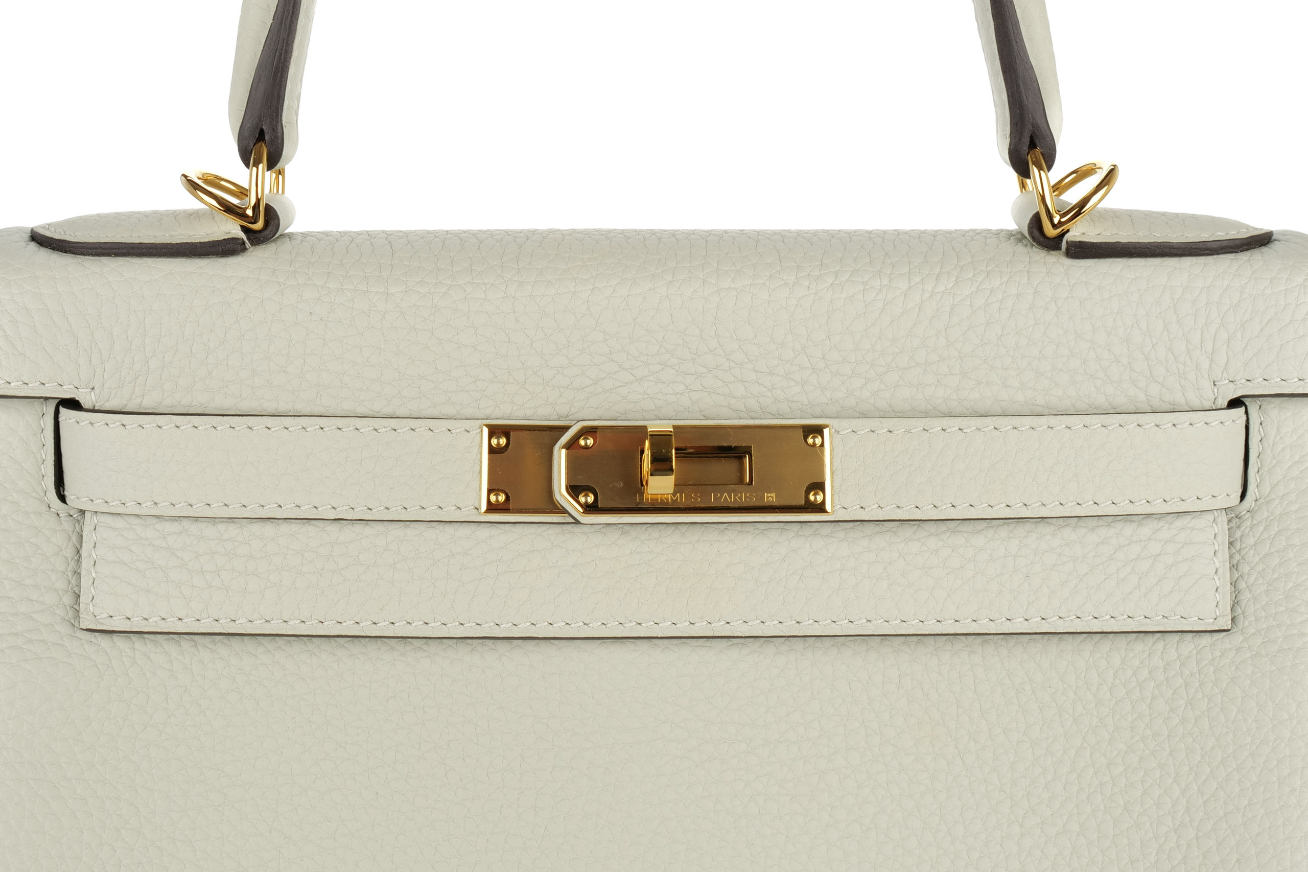 Hermès Kelly 28 Gris Neve Clemence Retourne Gold Hardware / BStamp 2023, Brand New