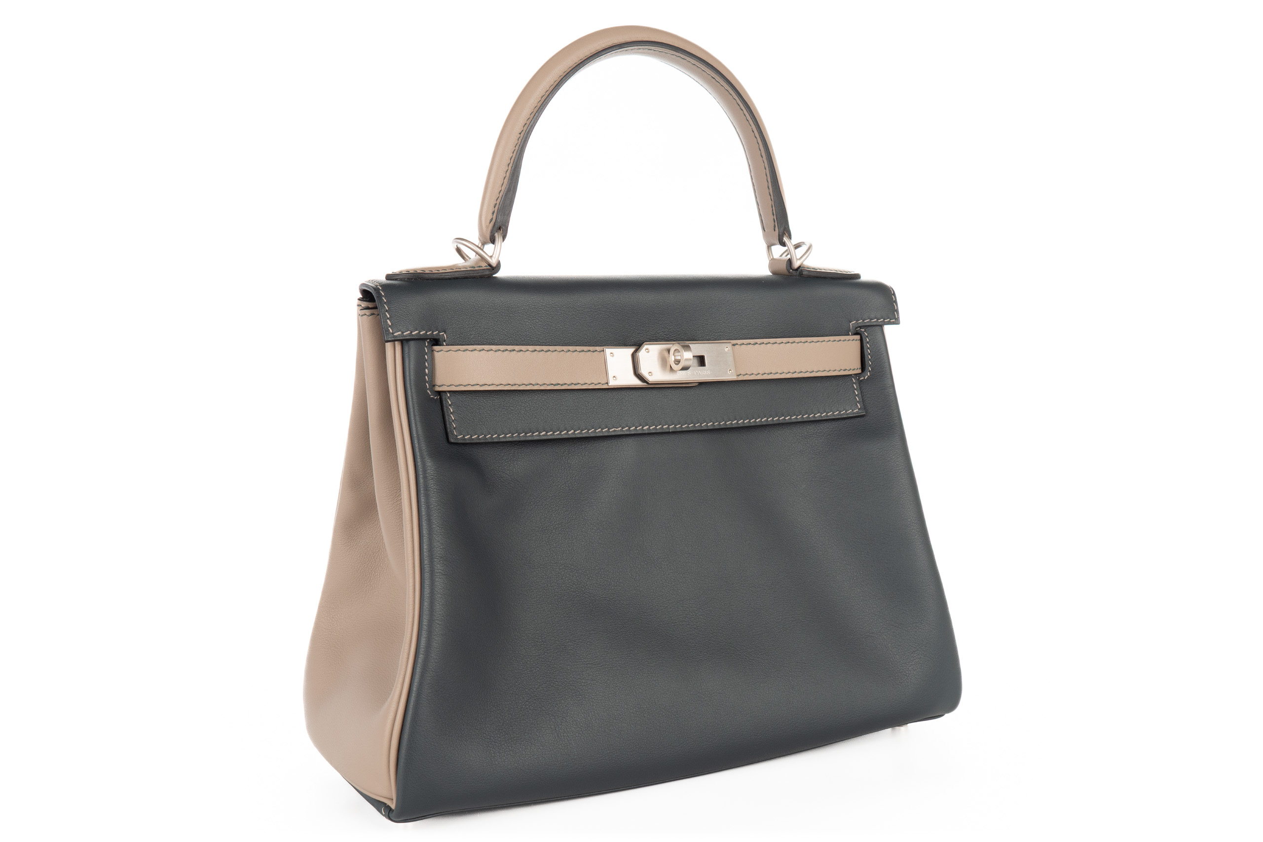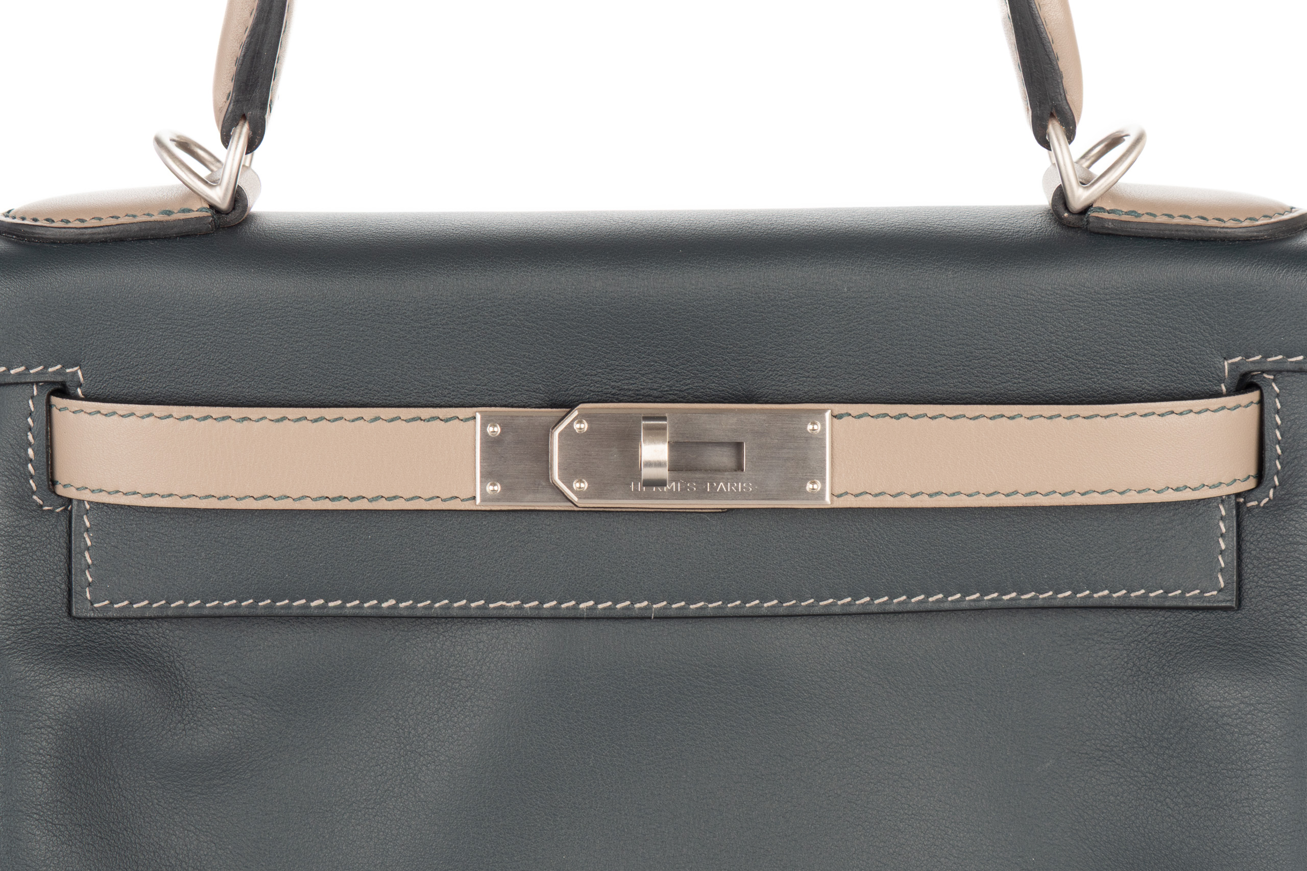 Hermès Kelly 28 Horse Shoe Stamp Vert Rousseau / Gris Asphalt Swift Brushed Palladium Hardware / B Stamp 2024, As New