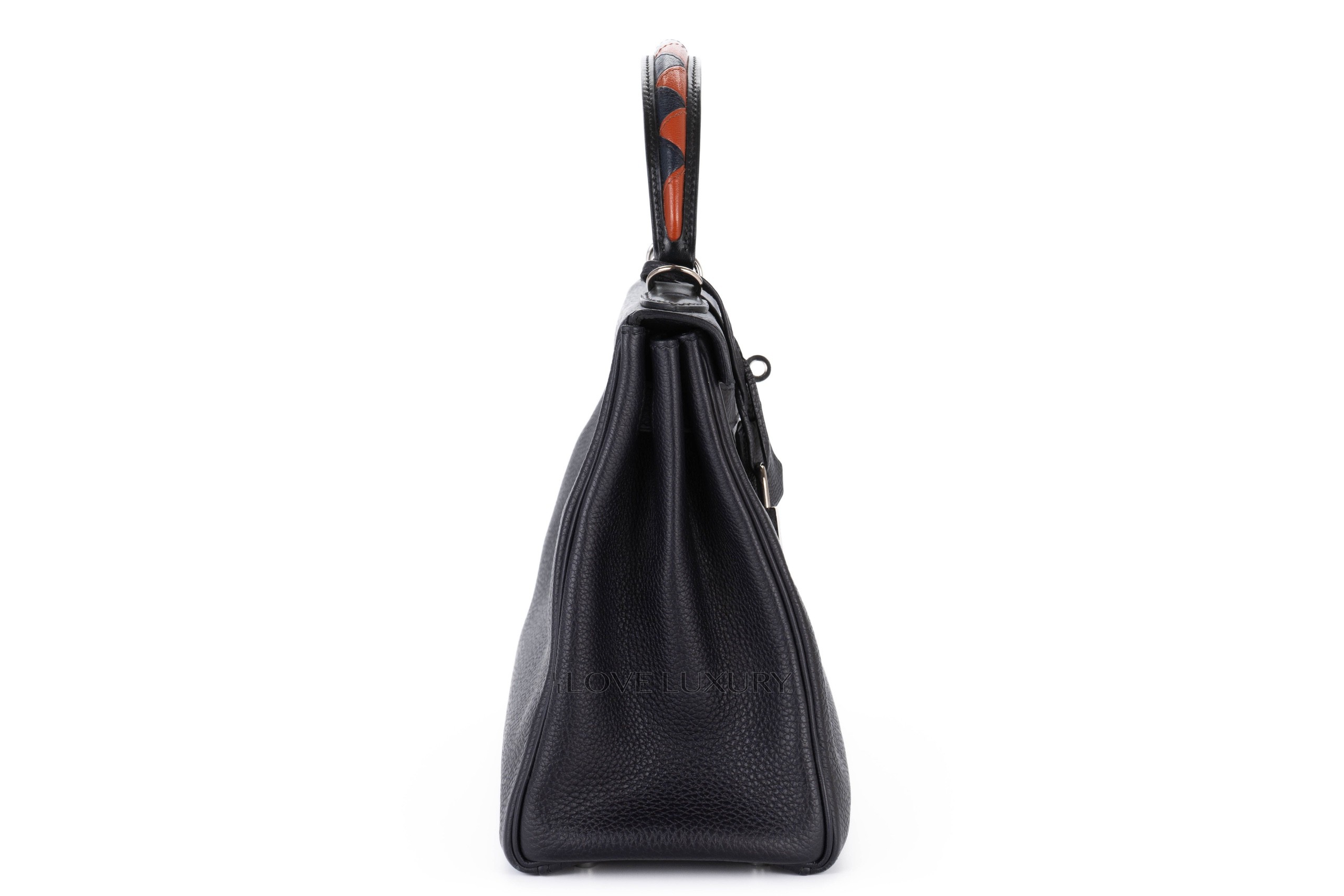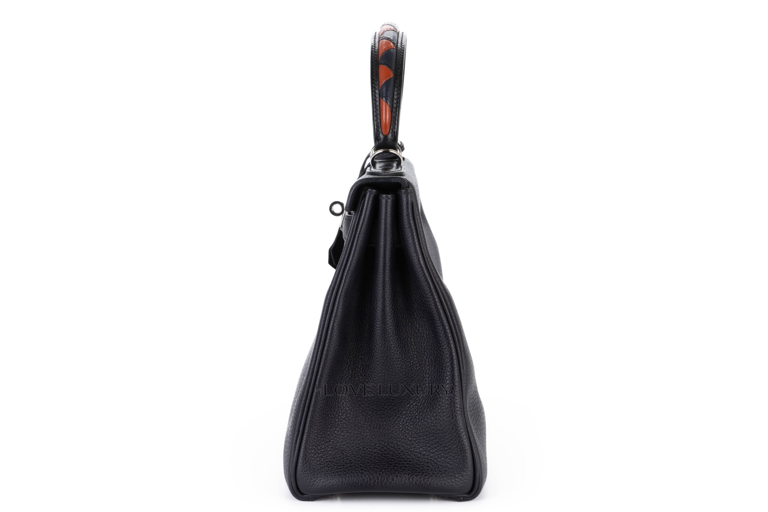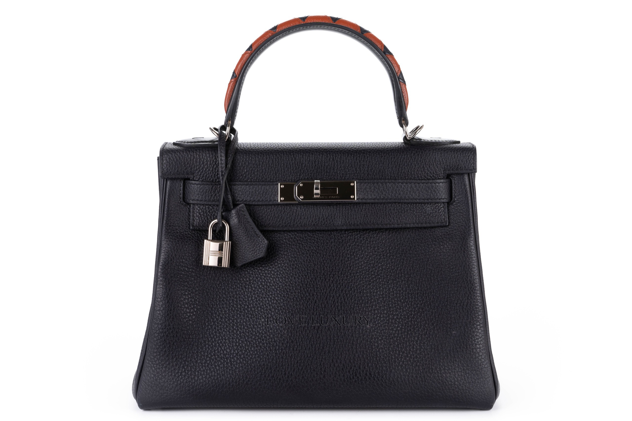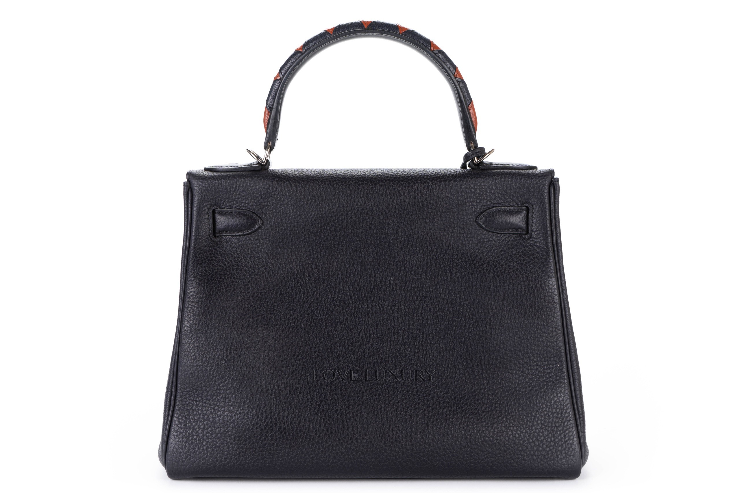 Hermès Kelly 28 Limited Edition Au Galop Bleu Indigo/Black/Cuivre Togo & Box Leather Phw / A stamp 2017 Preloved condition