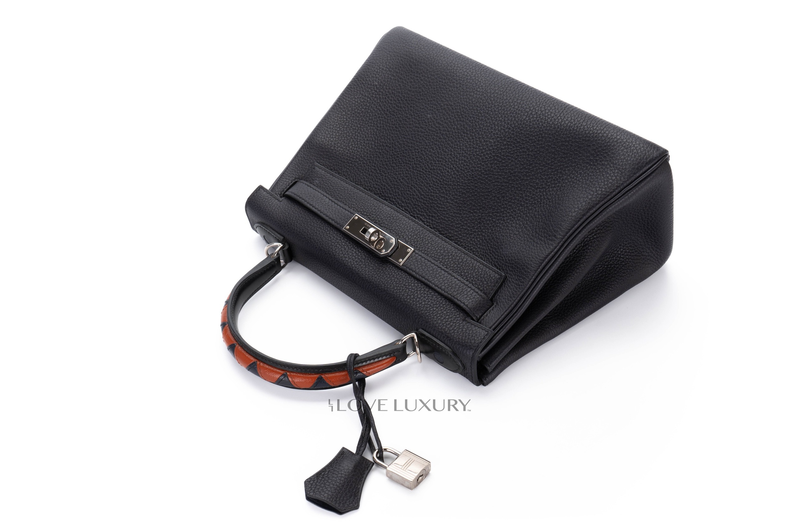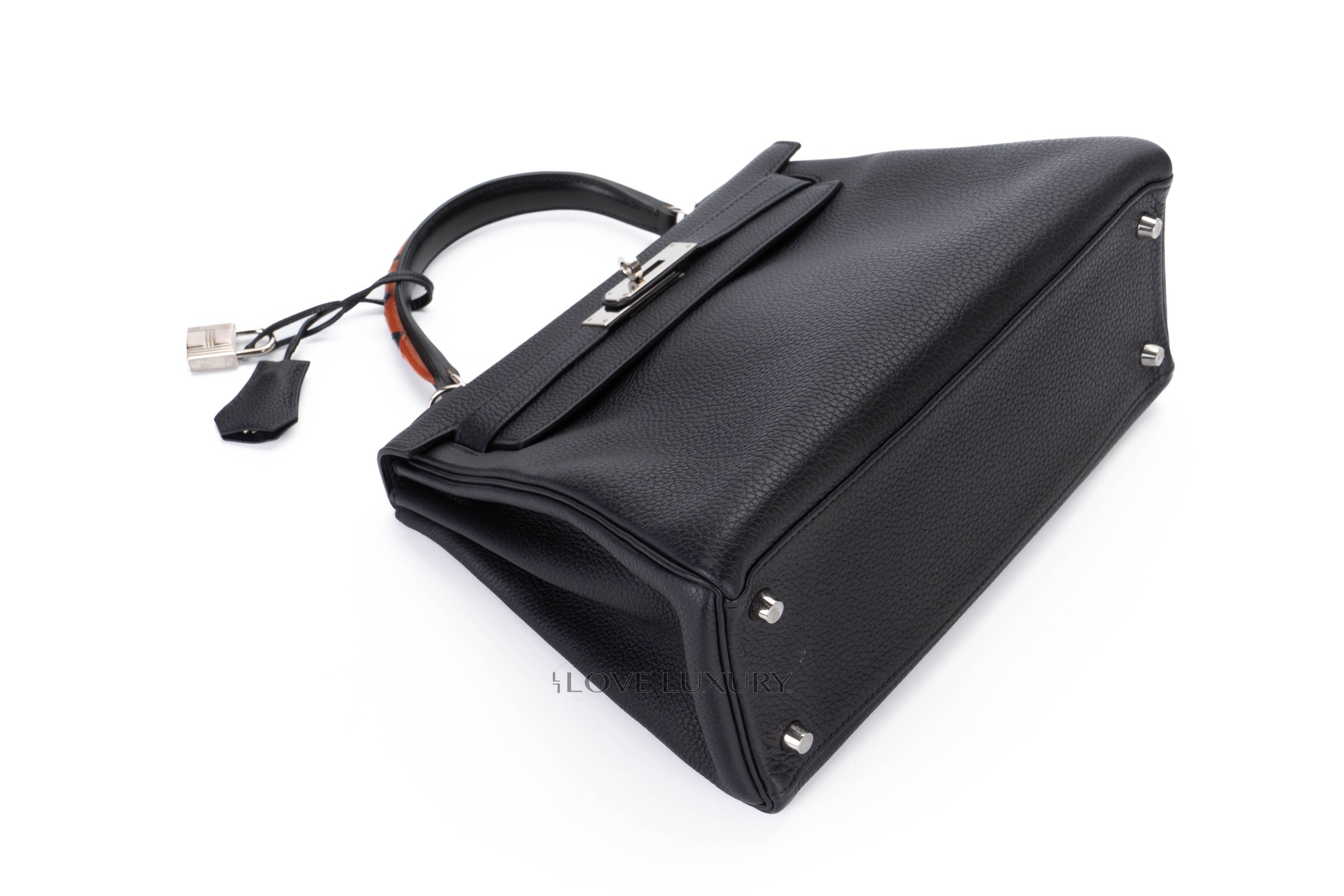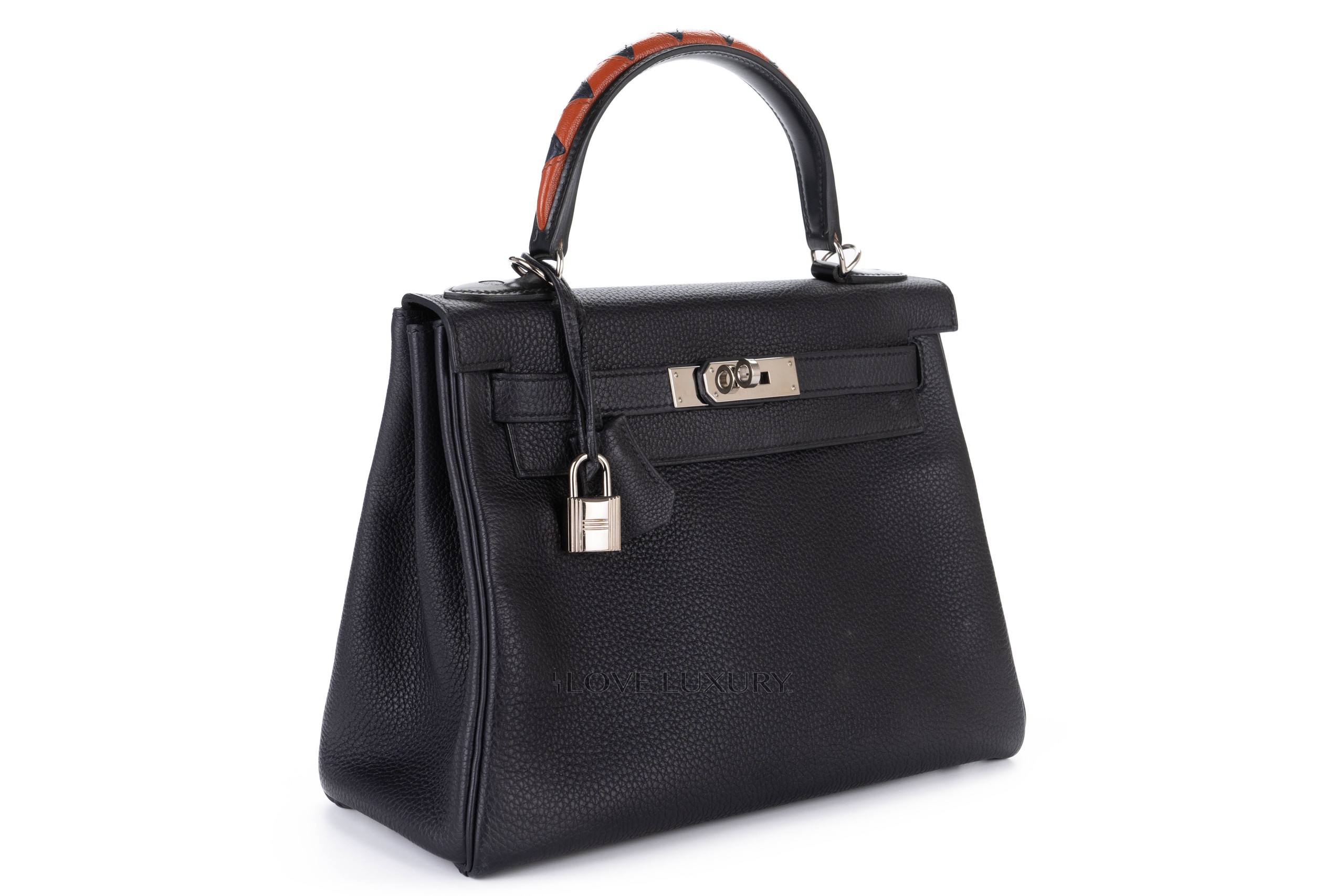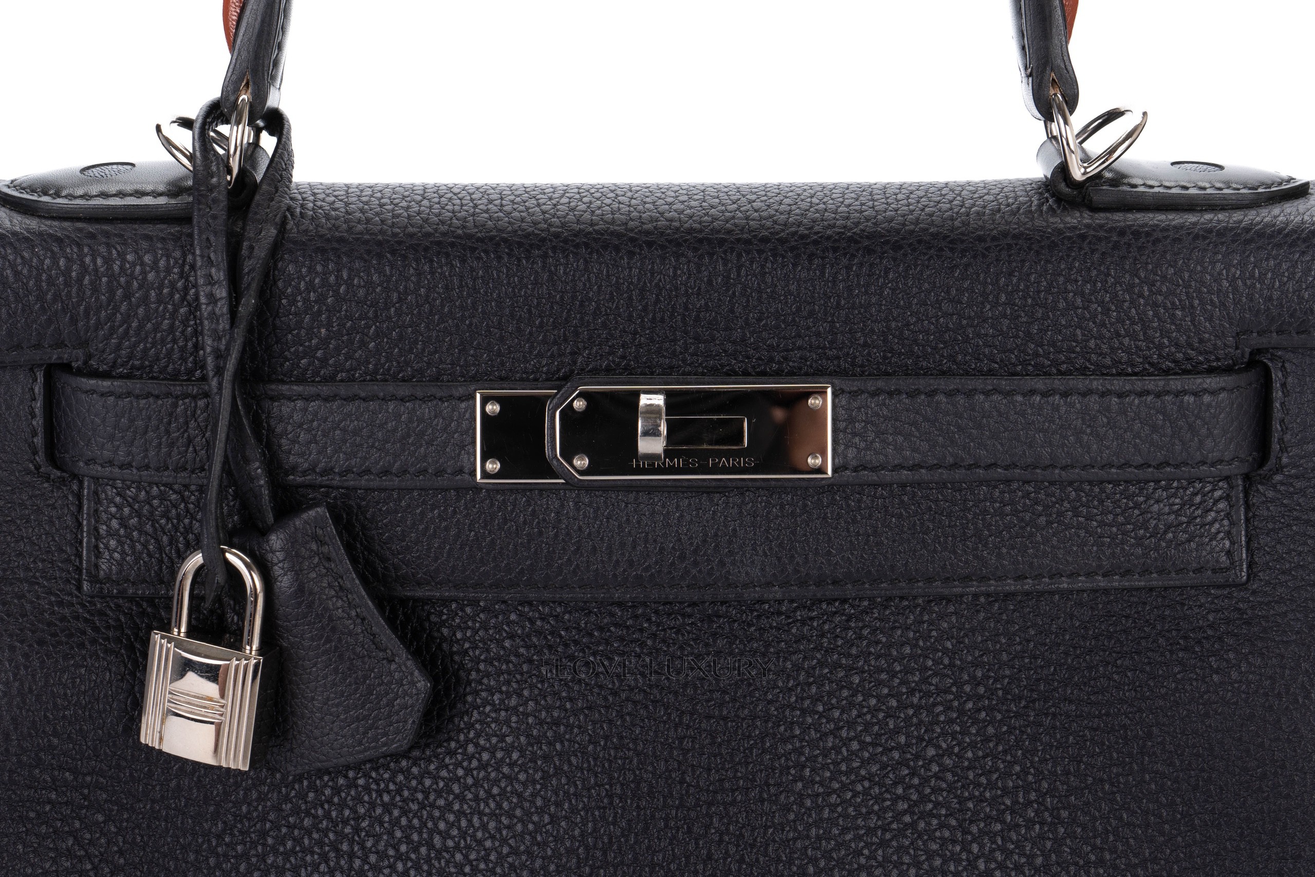 Hermès Kelly 28 Limited Edition Au Galop Bleu Indigo/Black/Cuivre Togo & Box Leather Phw / A stamp 2017 Preloved condition