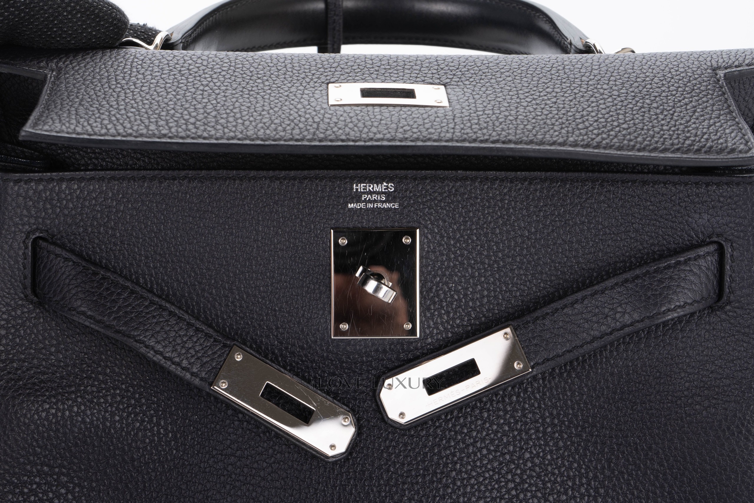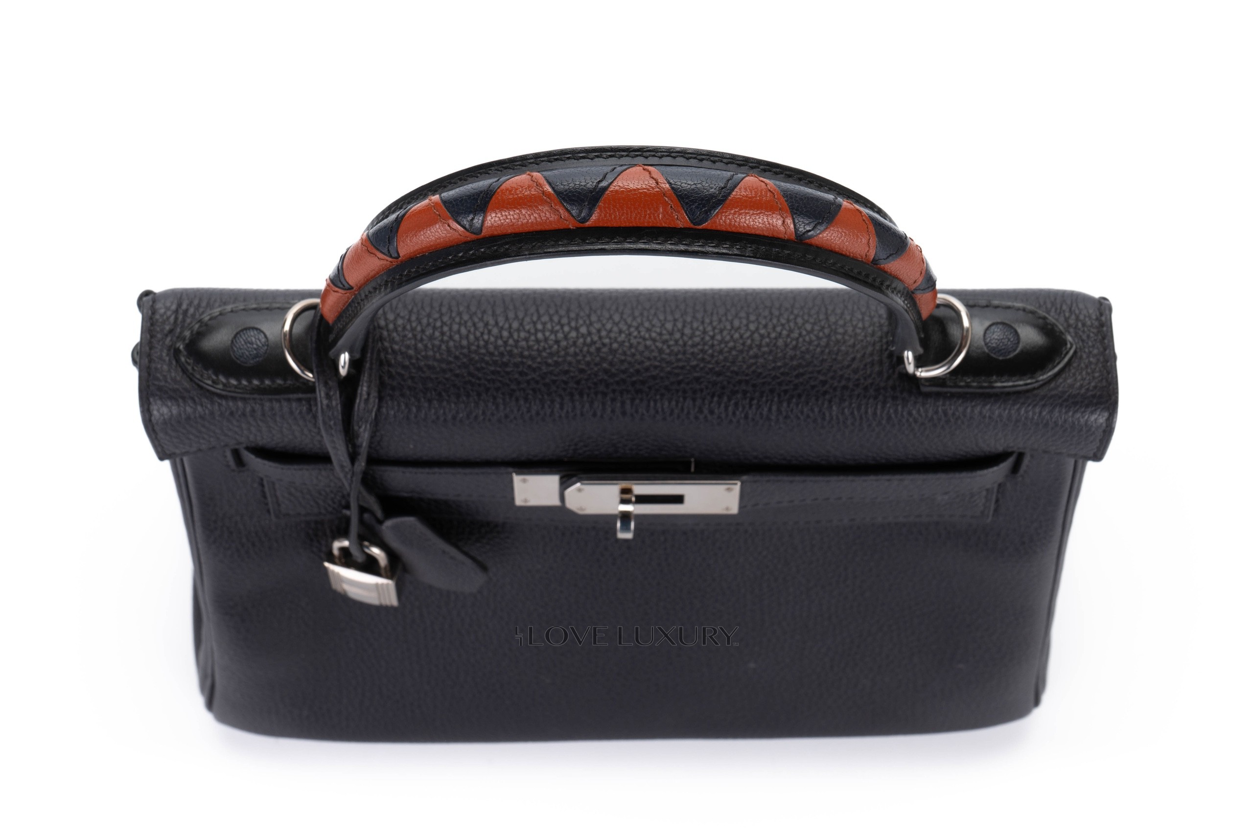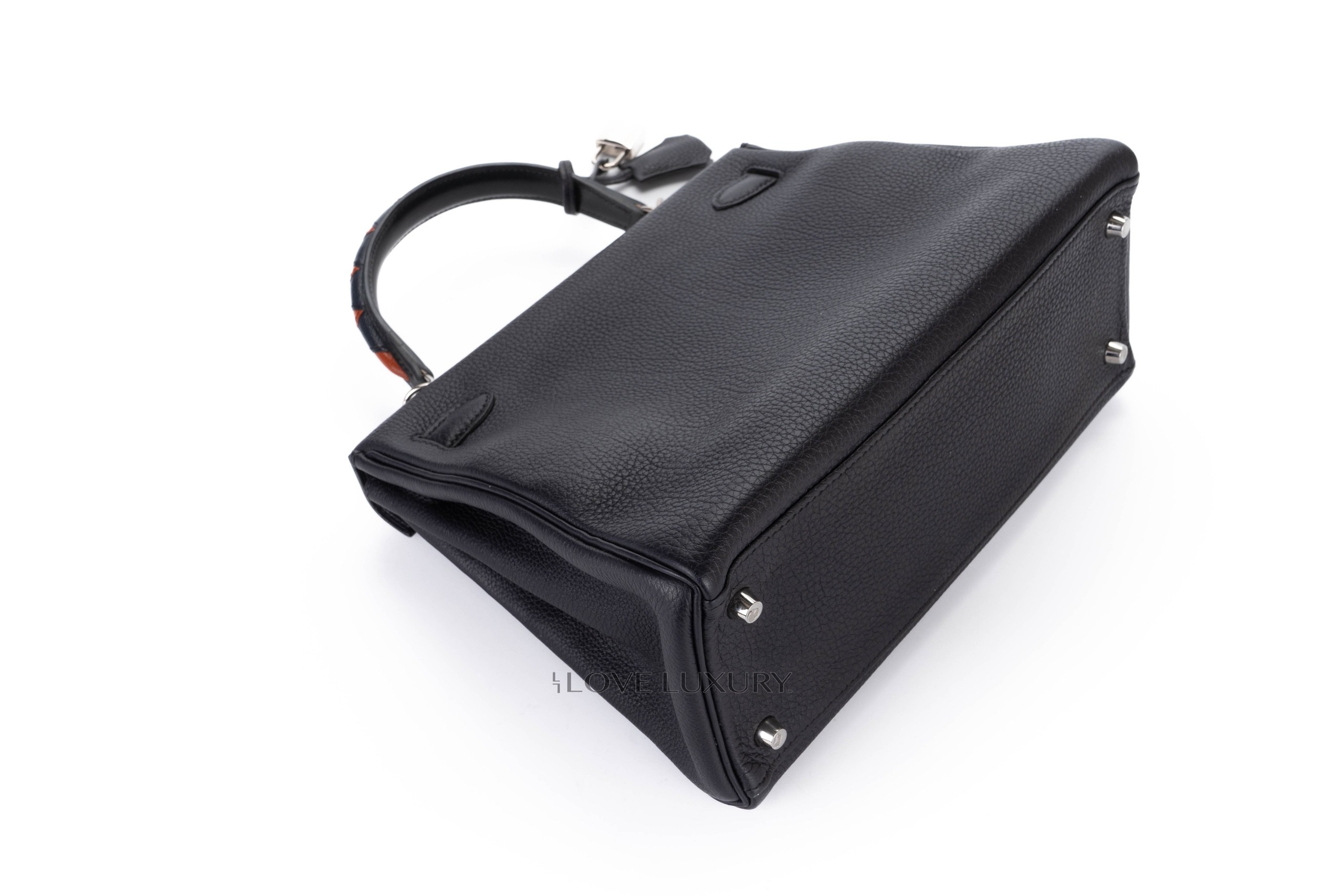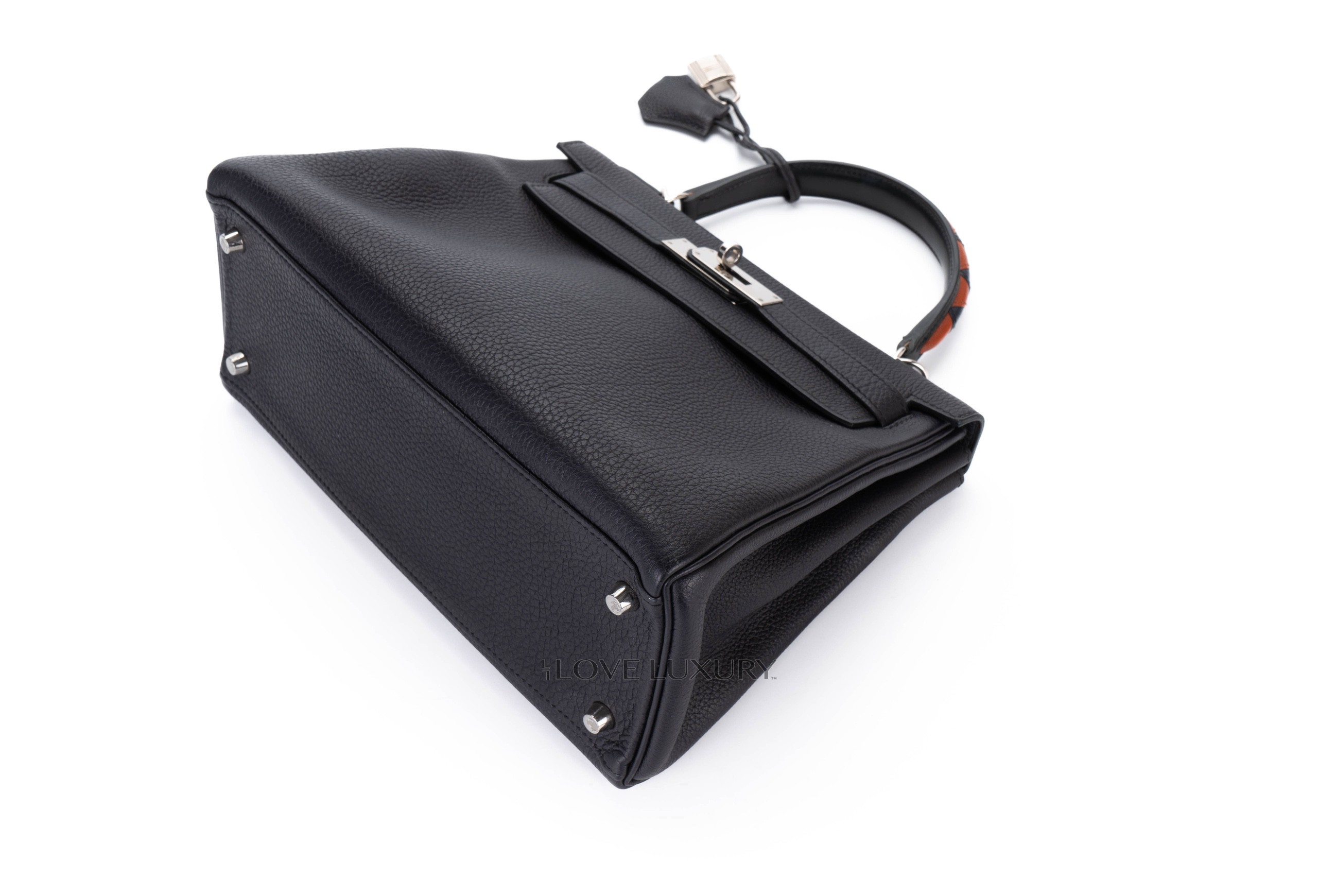 Hermès Kelly 28 Limited Edition Au Galop Bleu Indigo/Black/Cuivre Togo & Box Leather Phw / A stamp 2017 Preloved condition