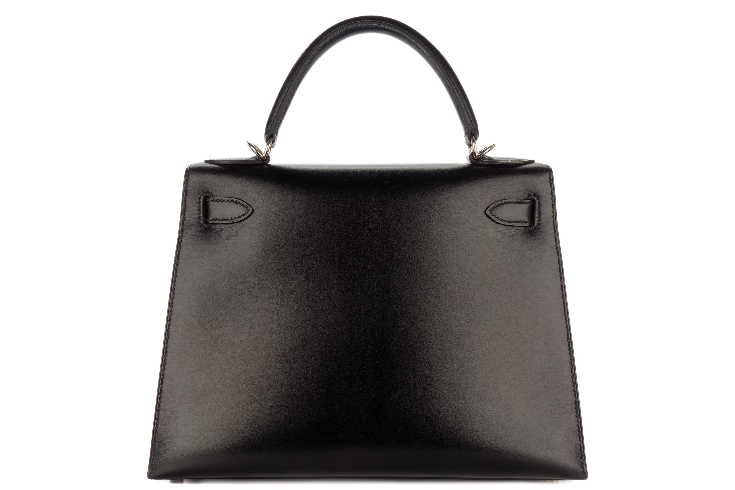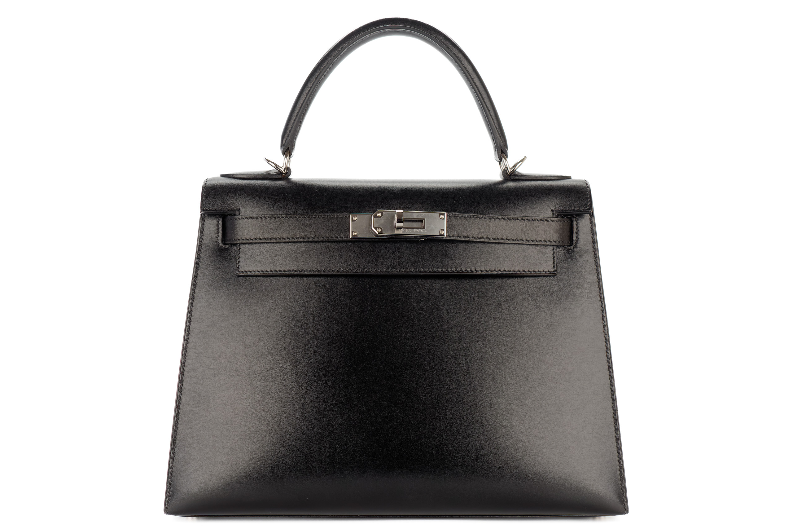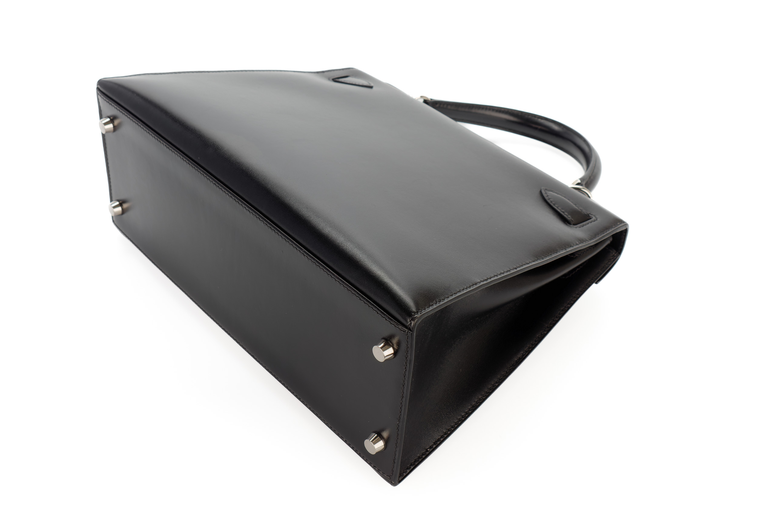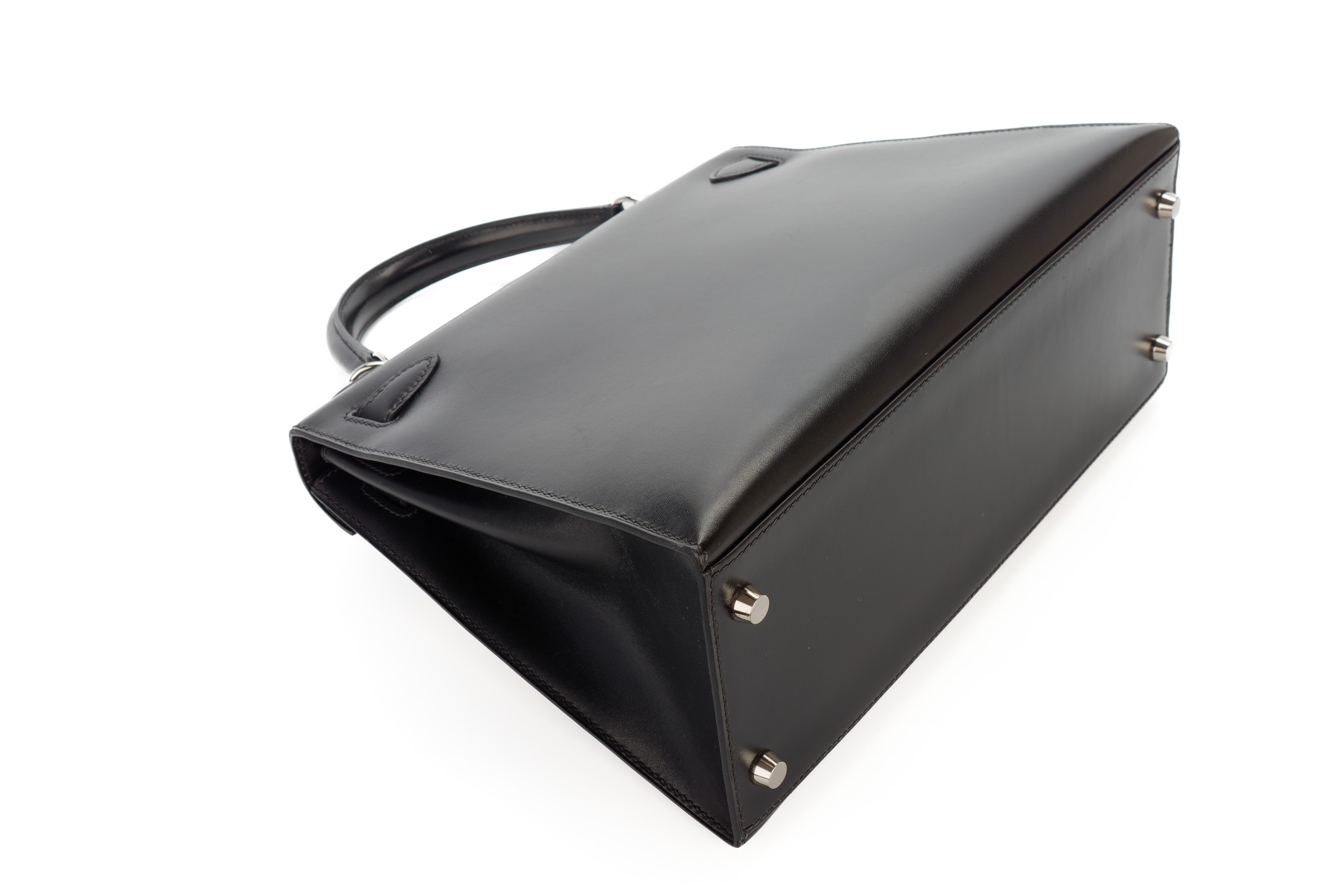 Hermès Kelly 28 Noir Box Leather Palladium Hardware / E Square Stamp 2001, Preloved
