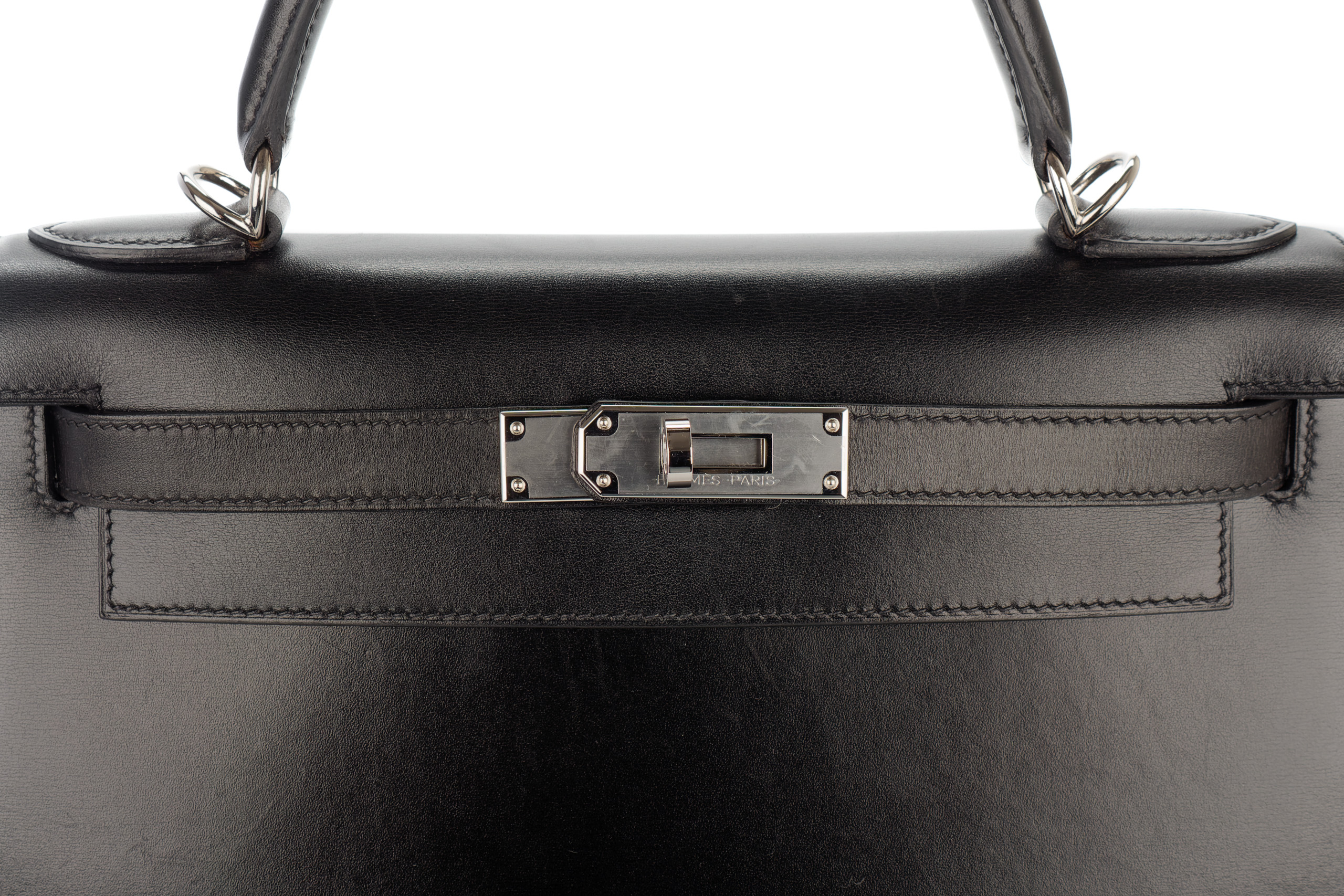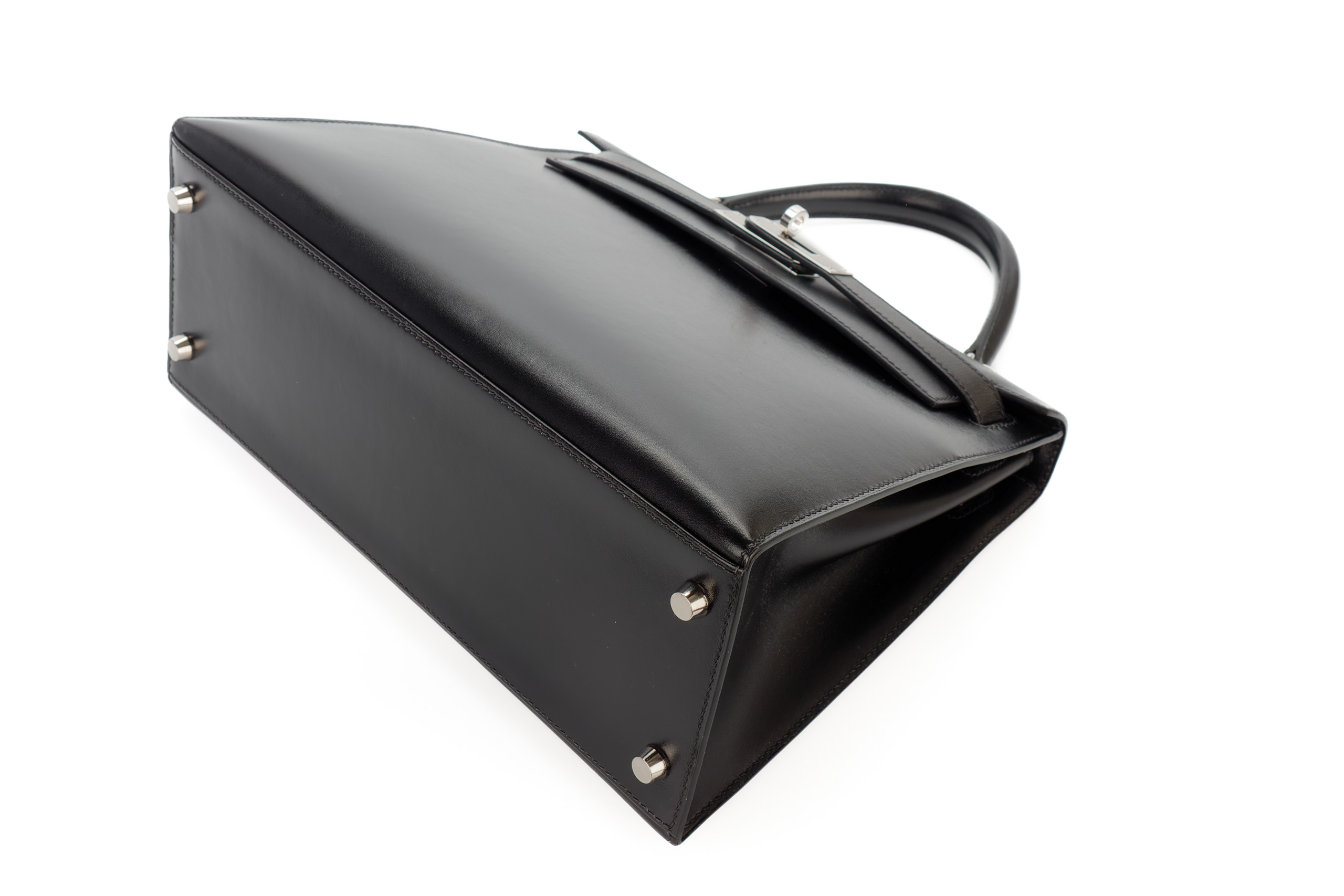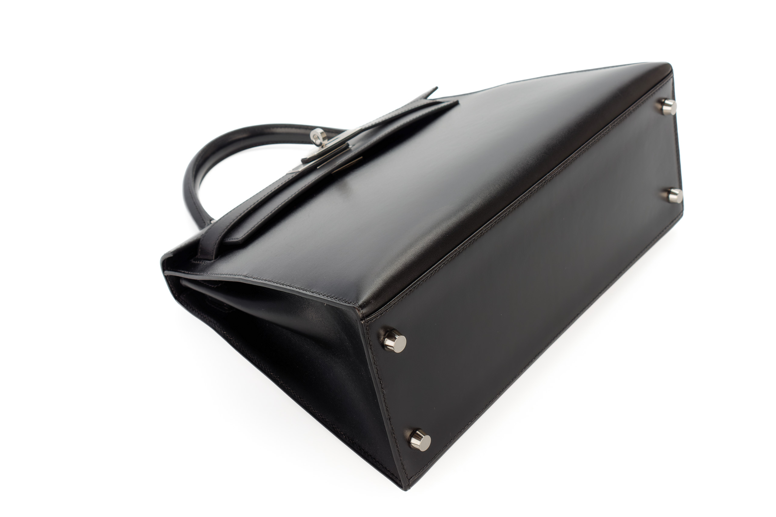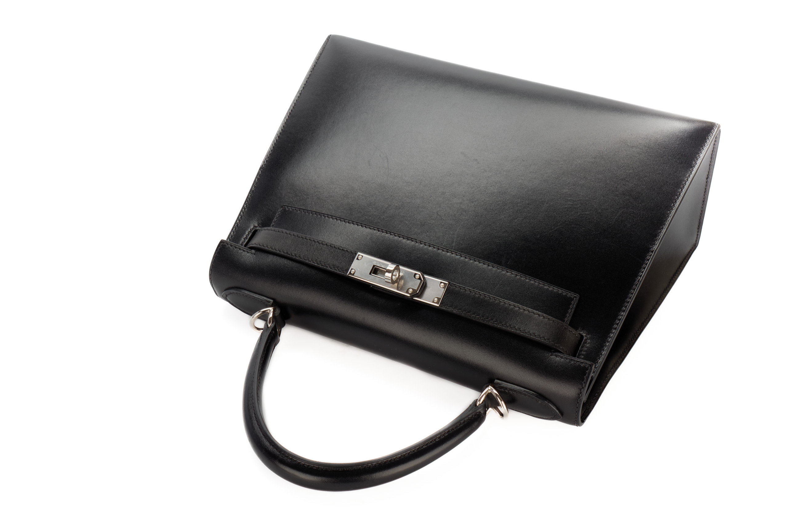 Hermès Kelly 28 Noir Box Leather Palladium Hardware / E Square Stamp 2001, Preloved