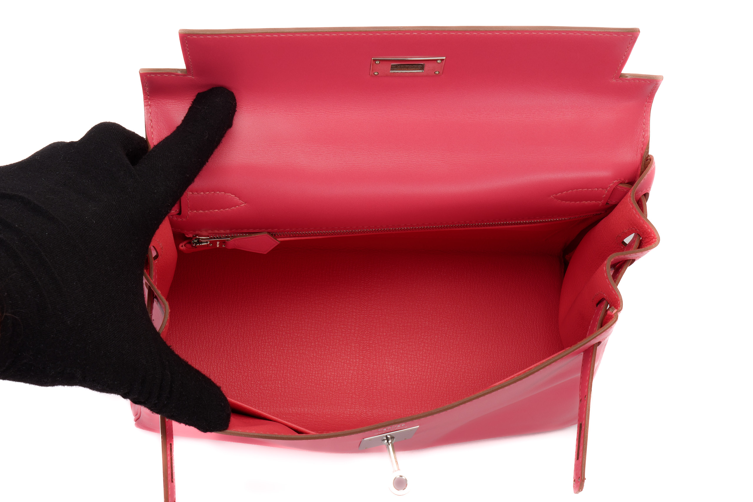 Hermès Kelly 28 Rose Lipstick Tadelakt Palladium Hardware / R Square 2014 Excellent Pre-Loved condition