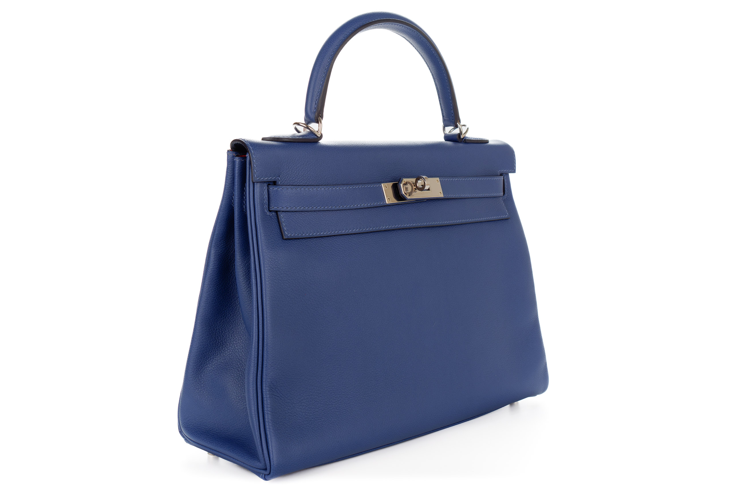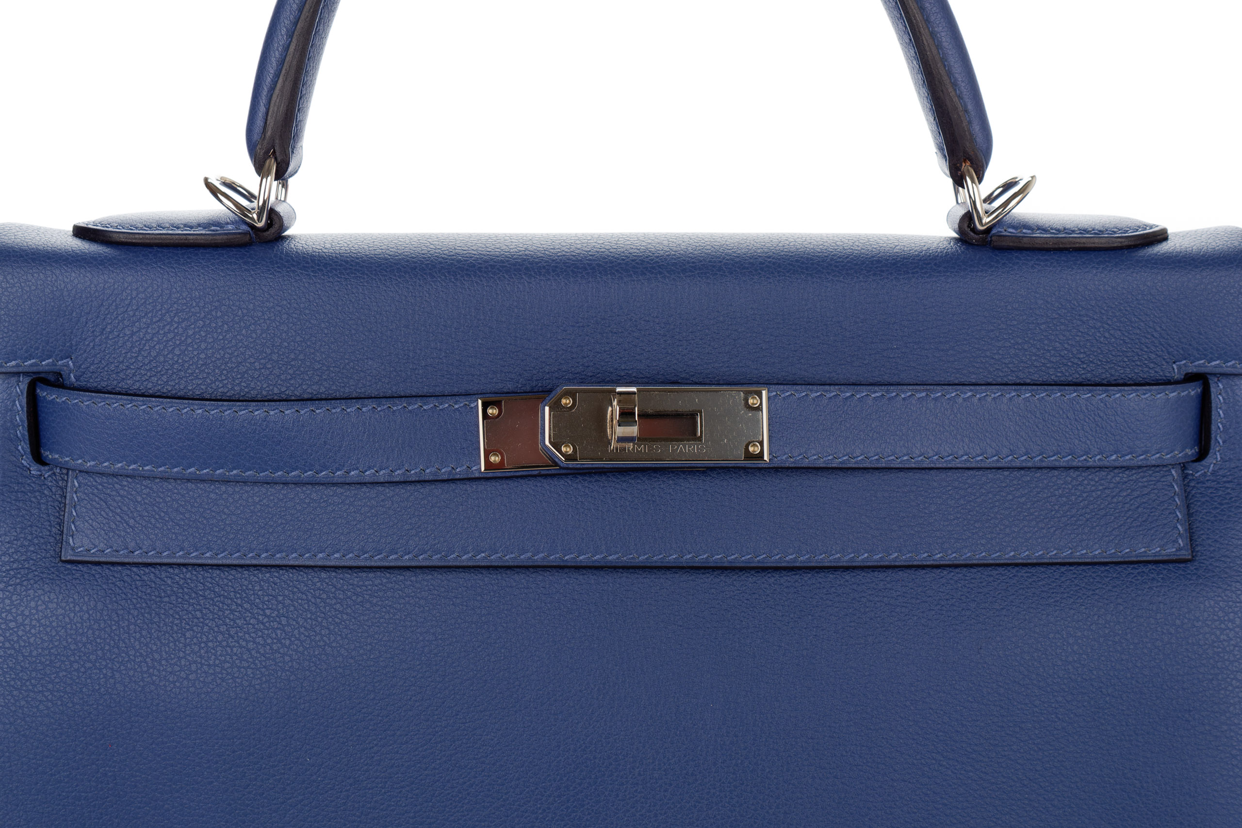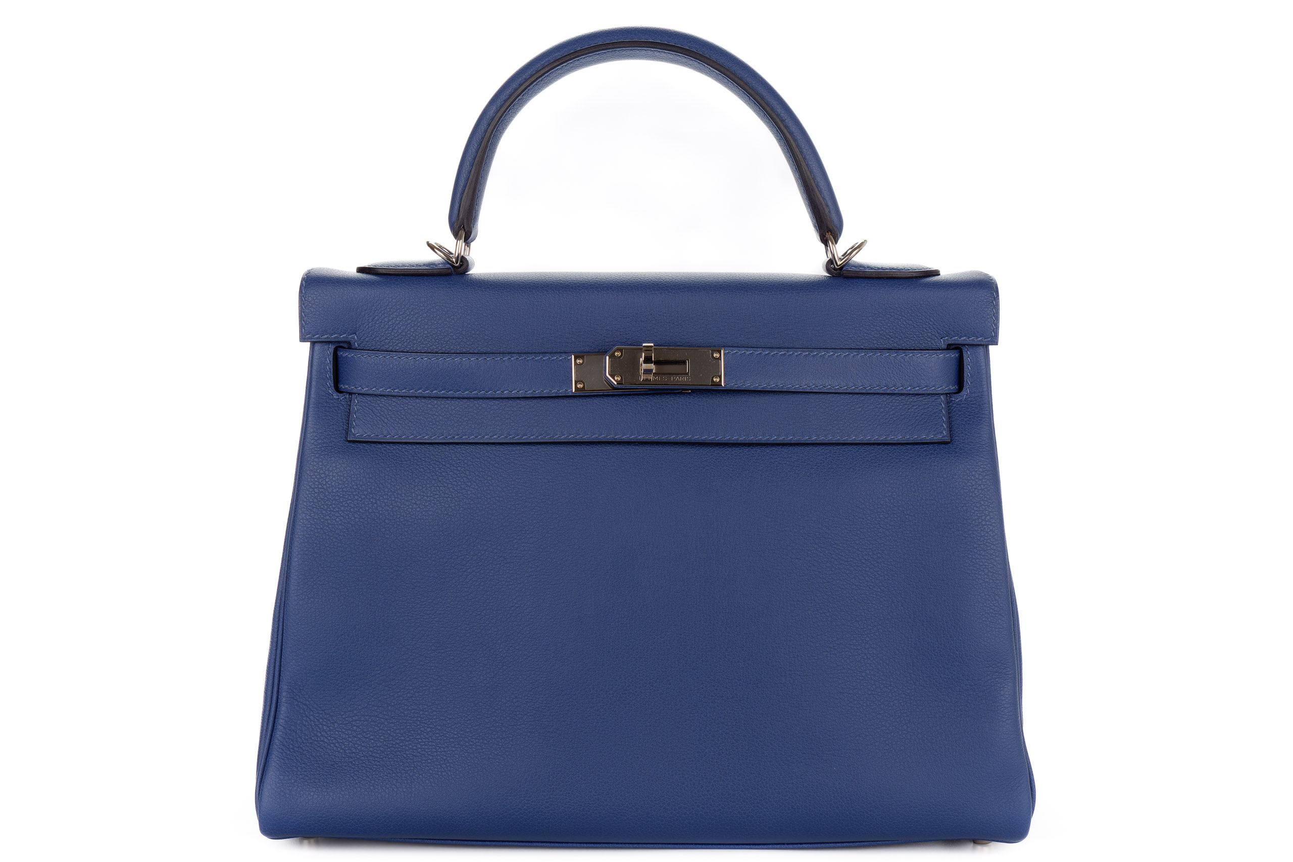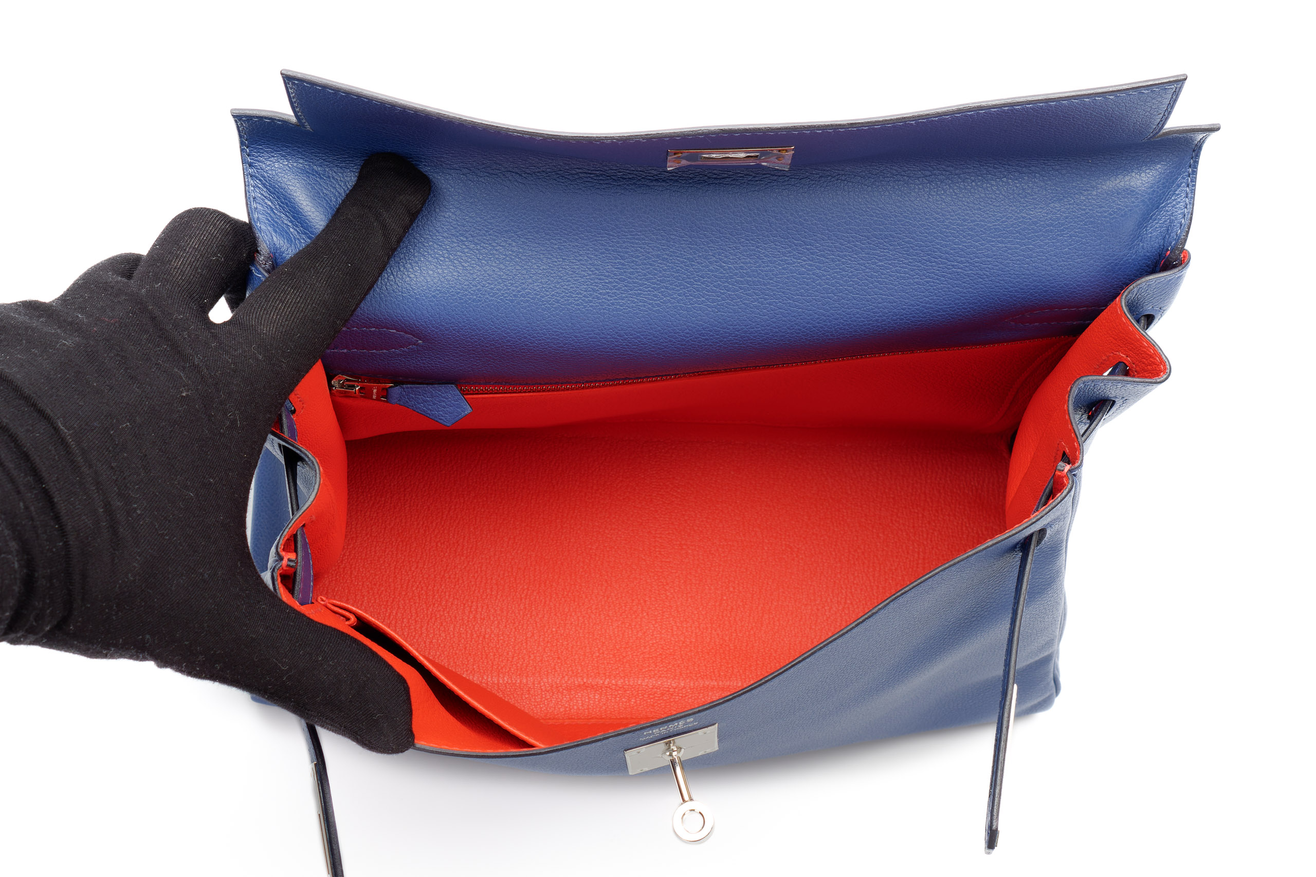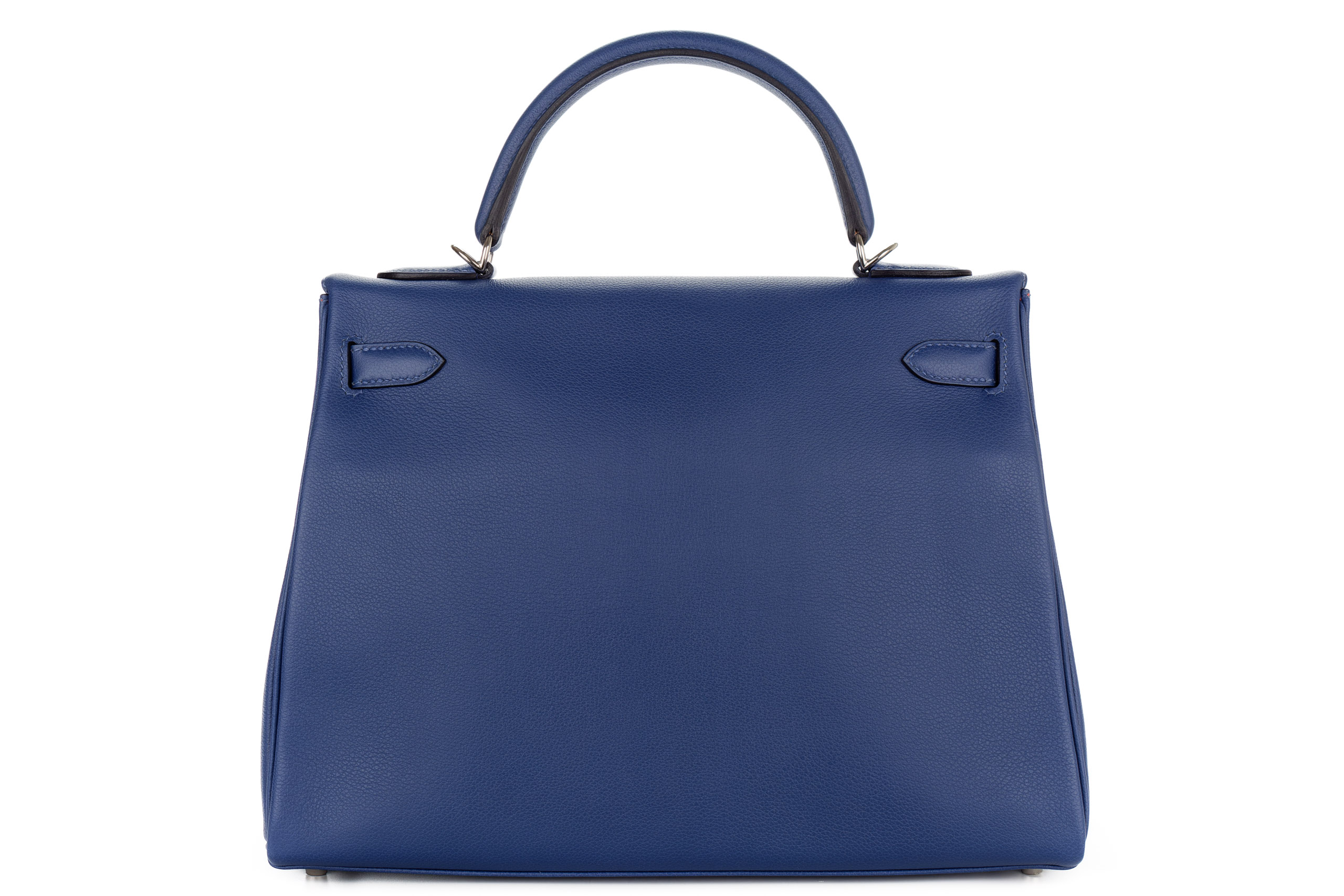 Hermès Kelly 32 Bleu Brighton / Capucine Verso Evercolour Palladium Hardware / C stamp 2018, brand new