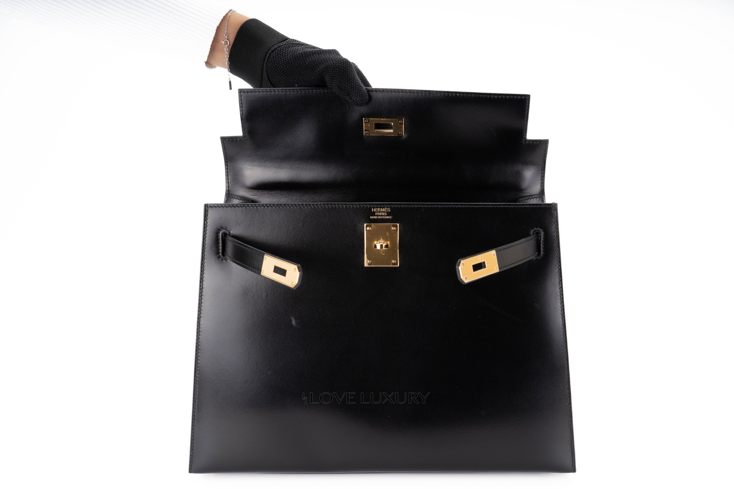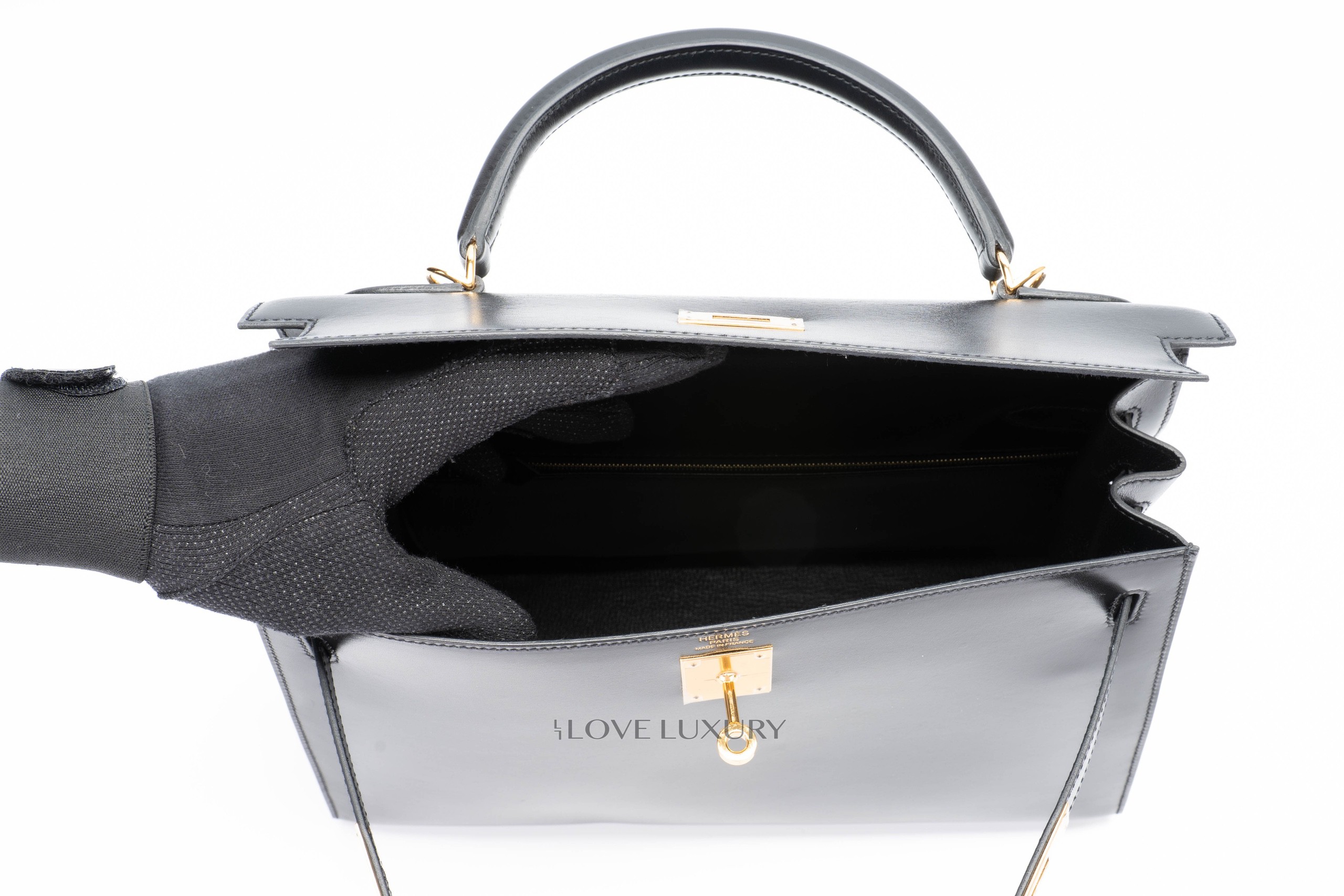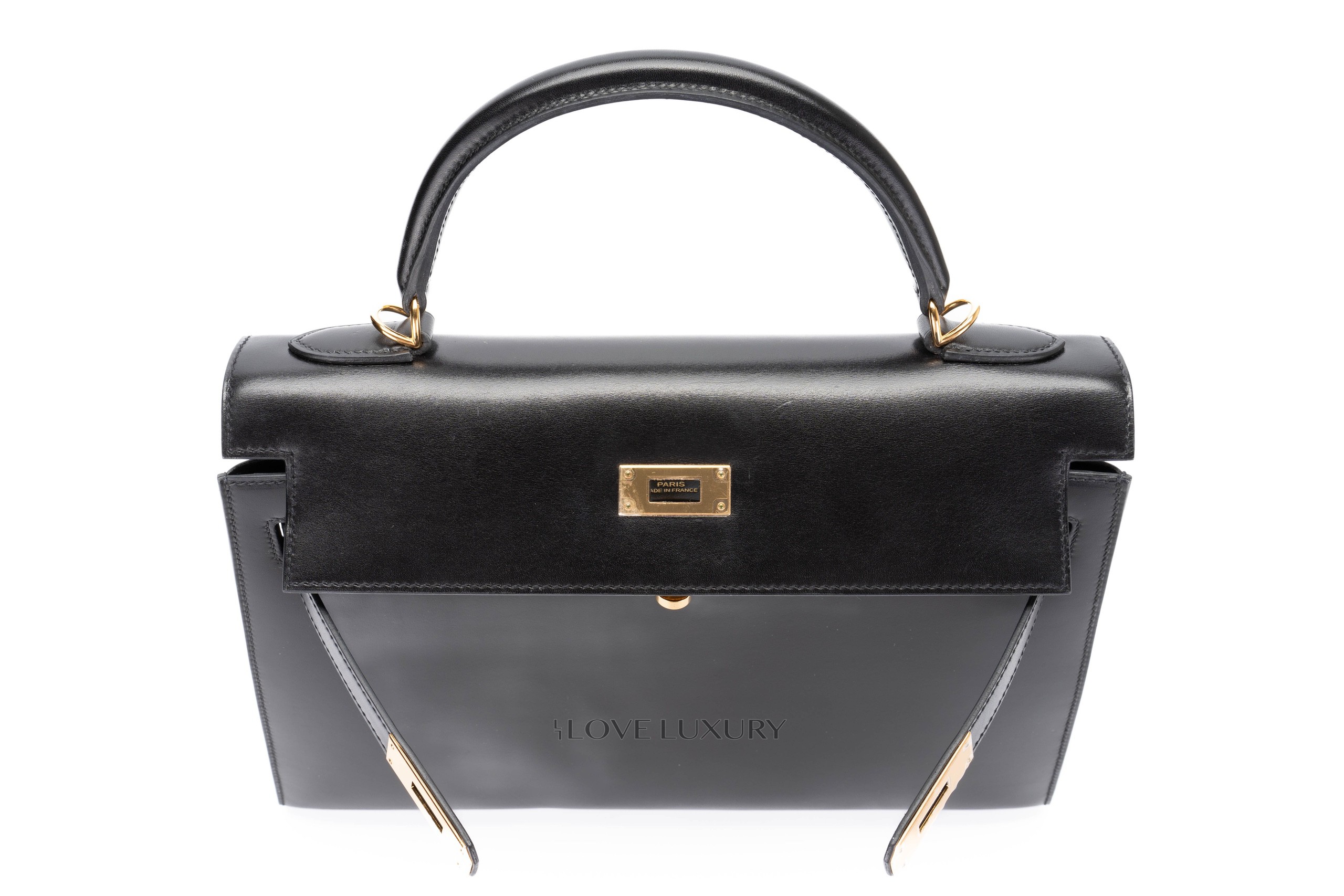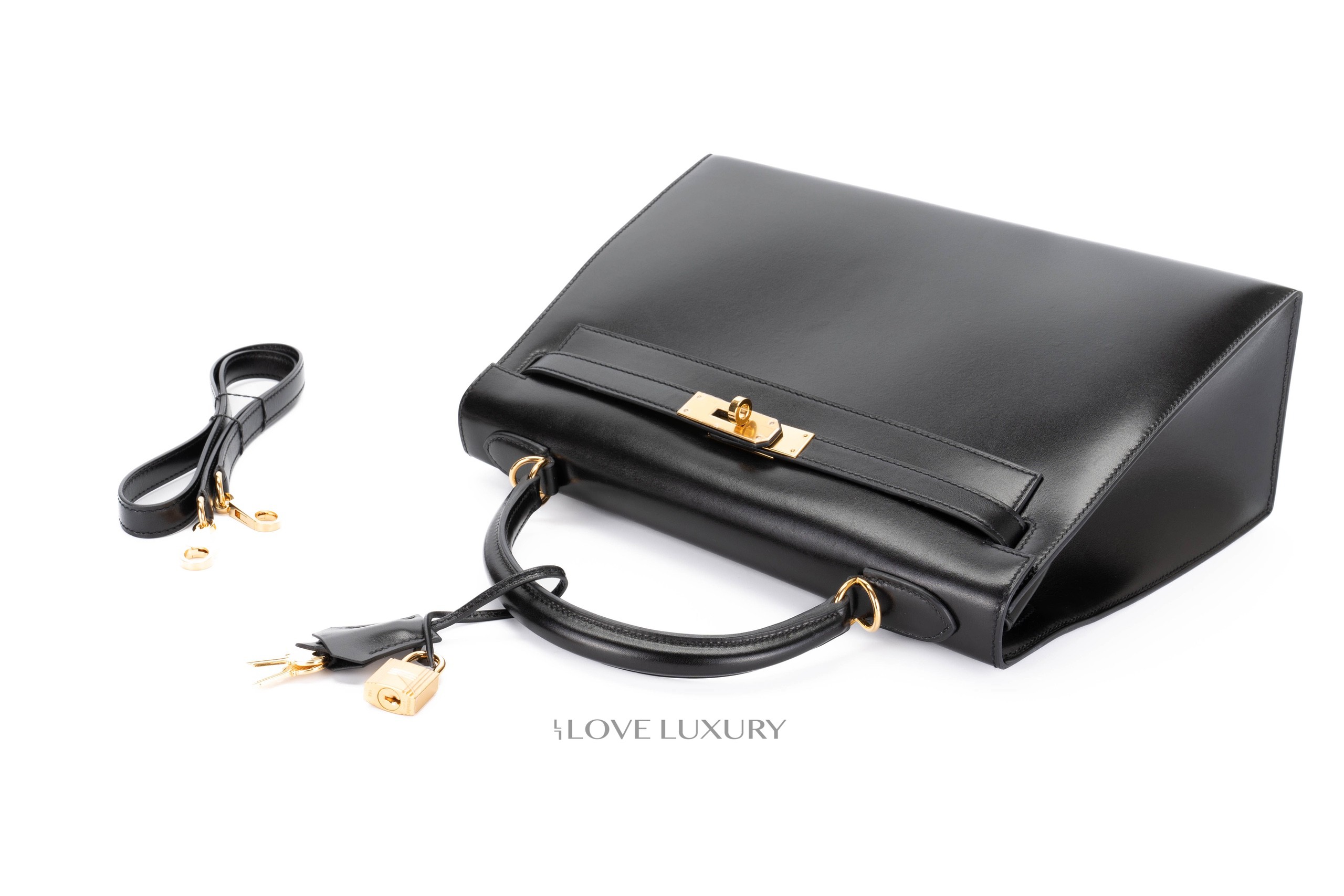 Hermès Kelly 32 Box Calf Sellier Gold Hardware / C stamp Very Good Pre-Loved condition.