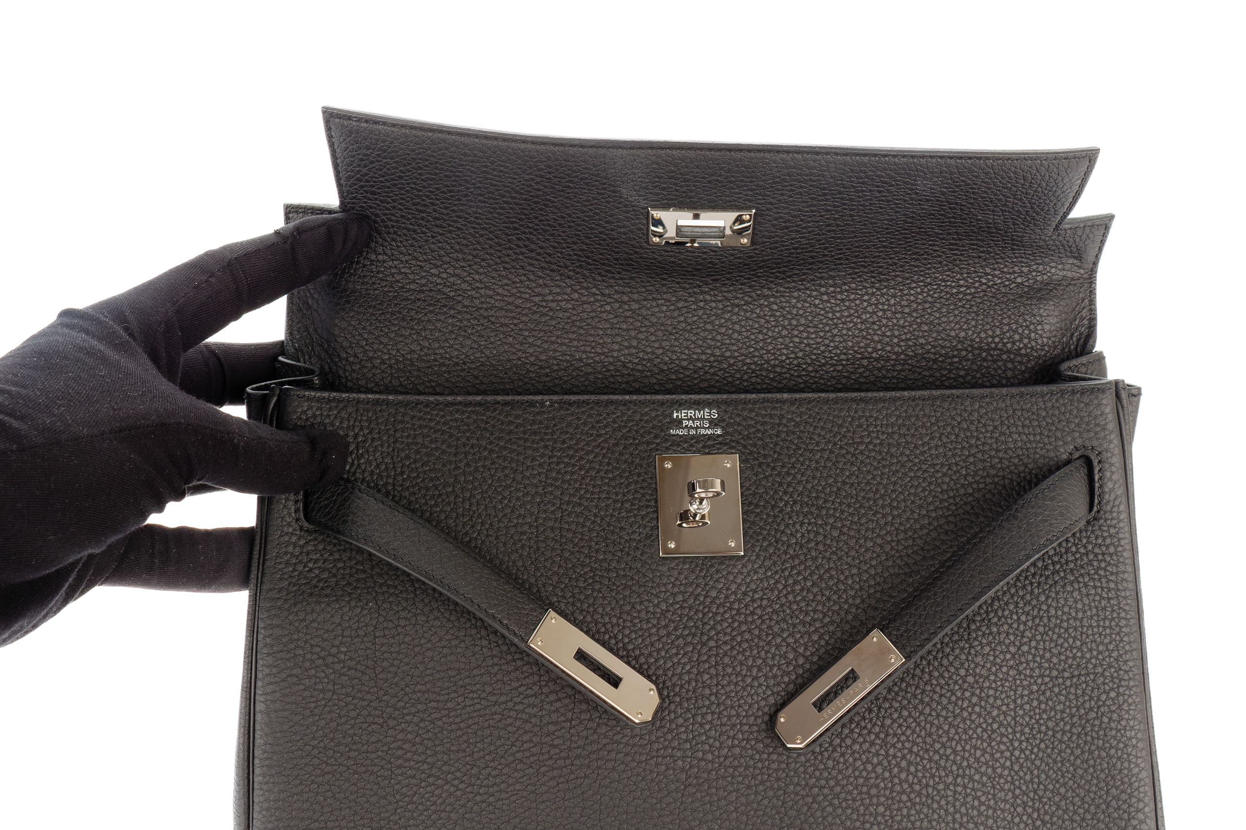 Hermès Kelly 32 Noir / Black Togo Palladium Hardware