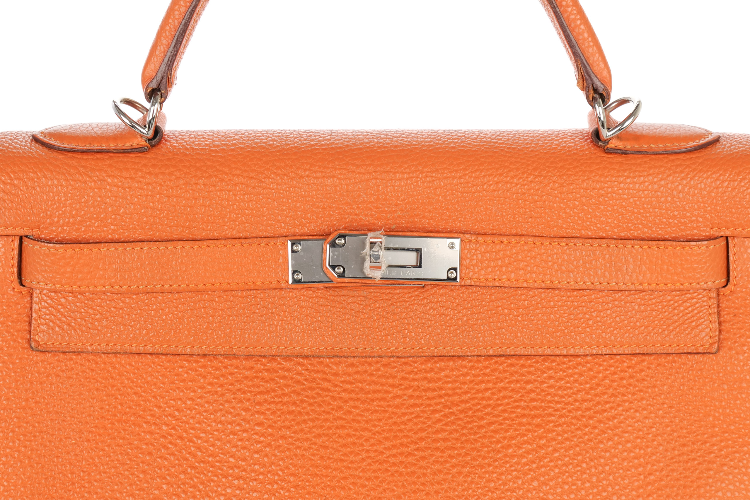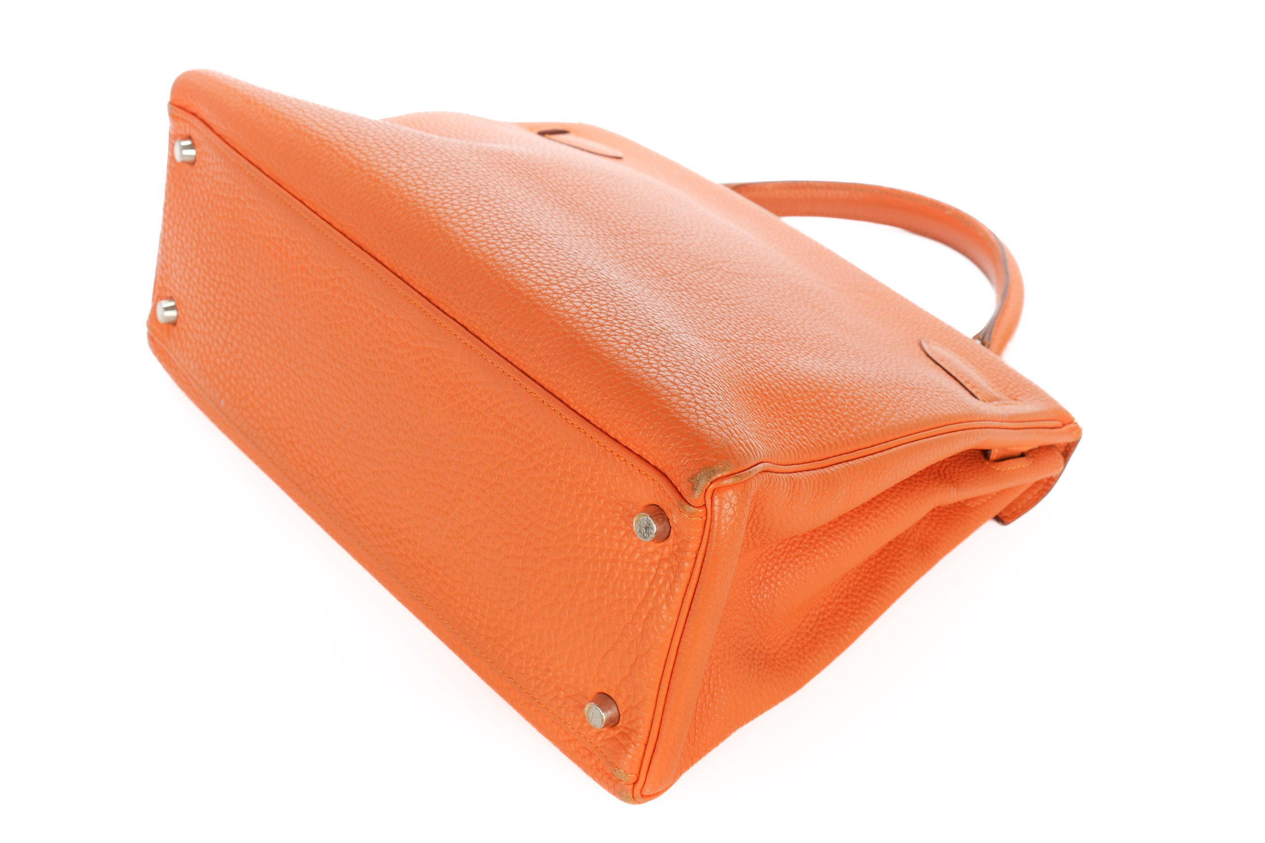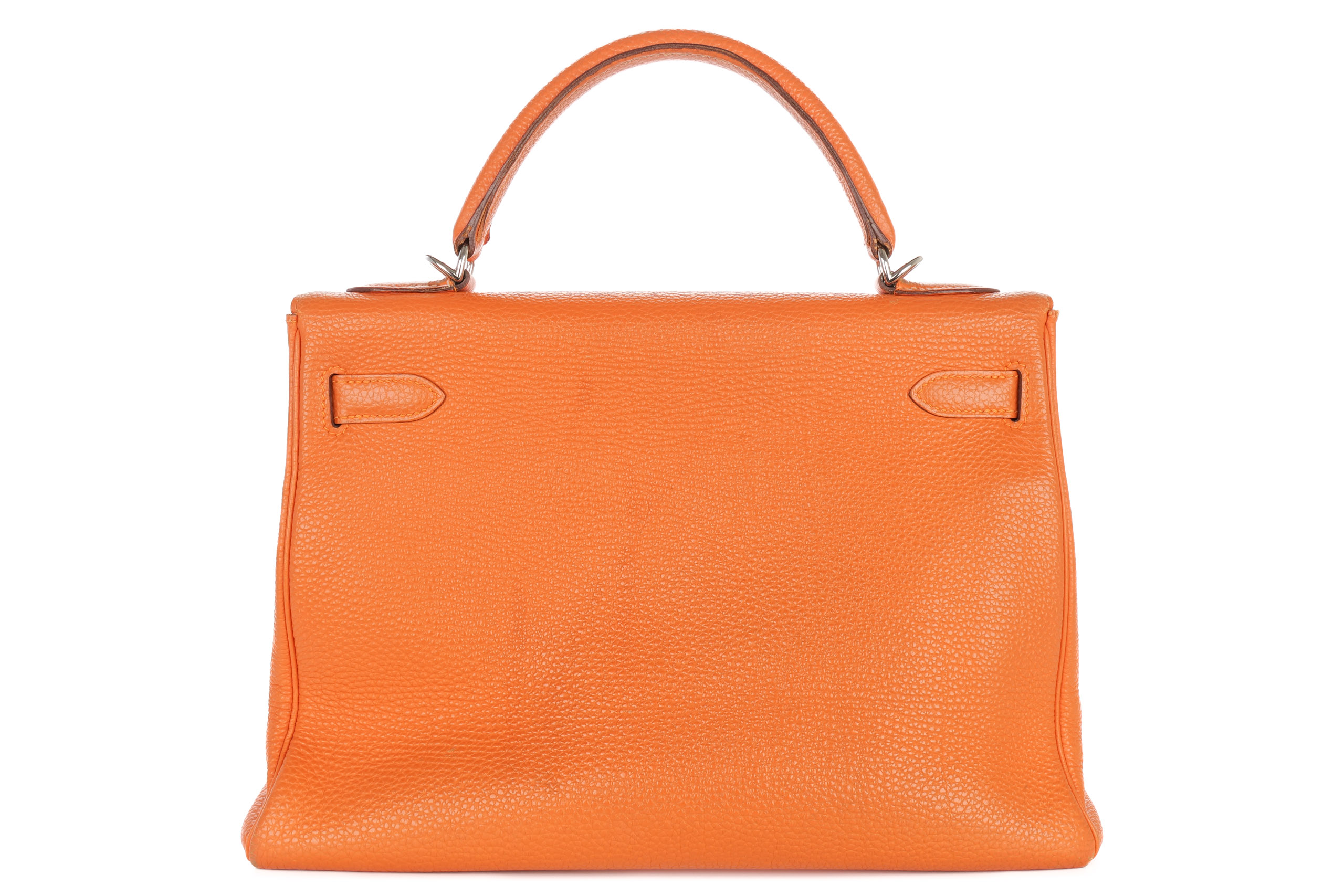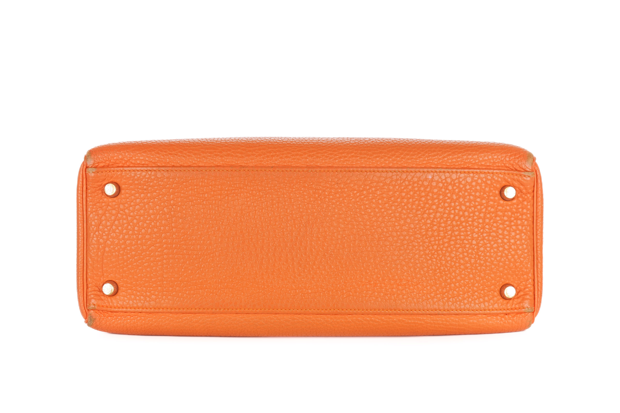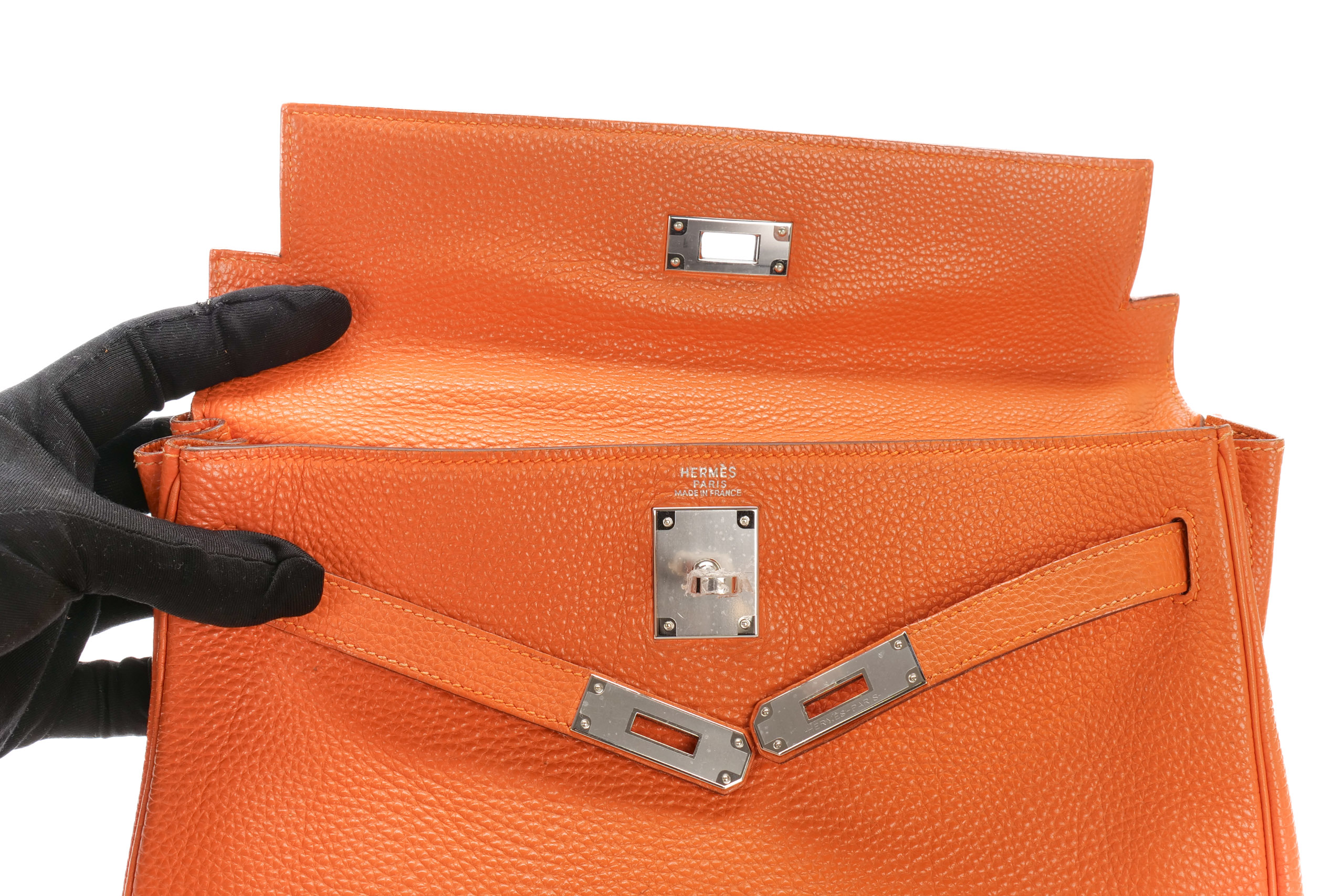 Hermès Kelly 32 Orange H Clemence Palladium Hardware / H Square 2004, Preloved
