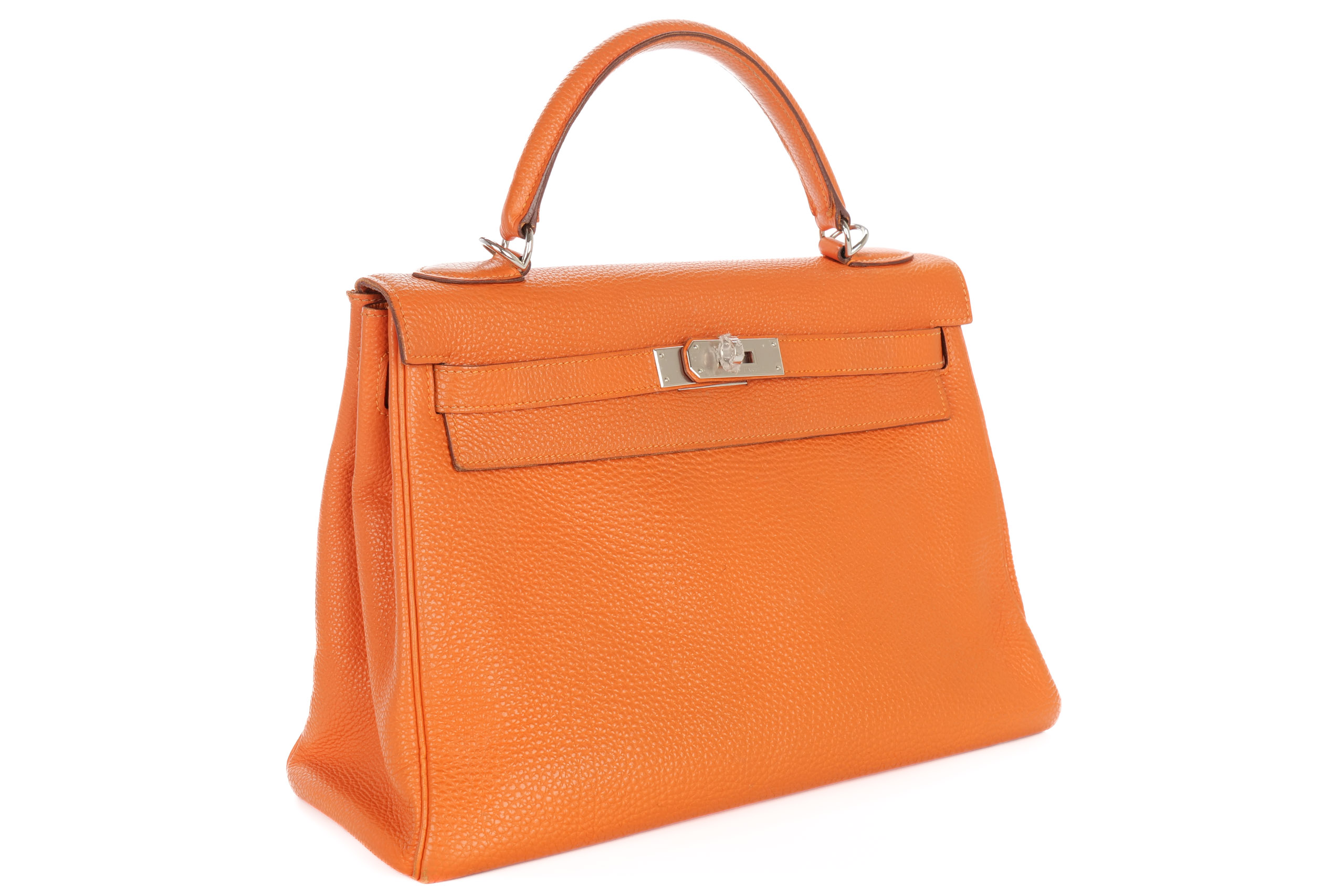 Hermès Kelly 32 Orange H Clemence Palladium Hardware