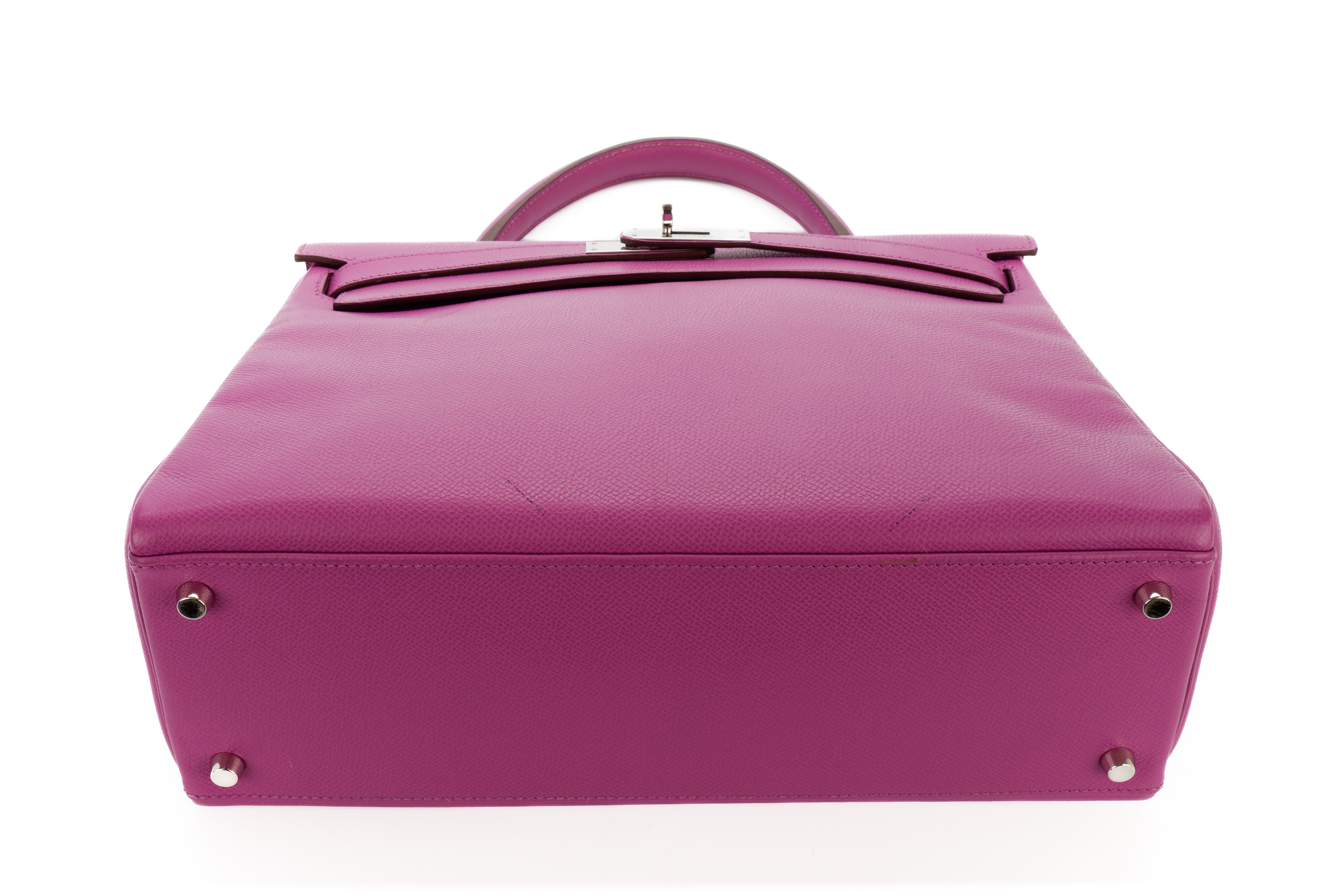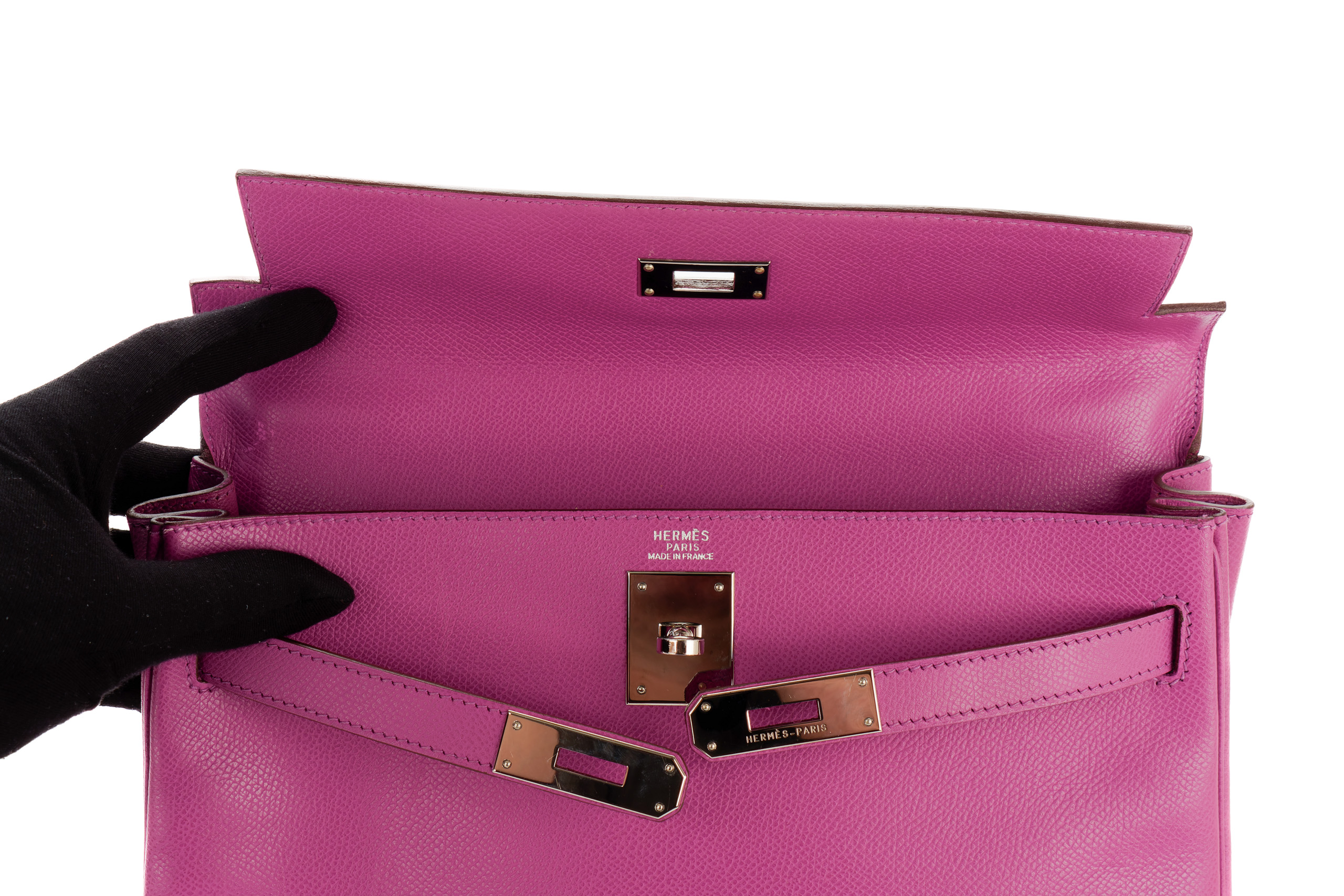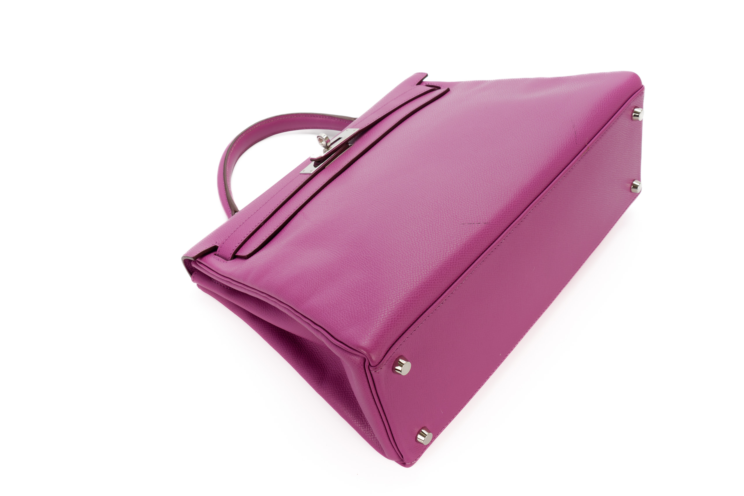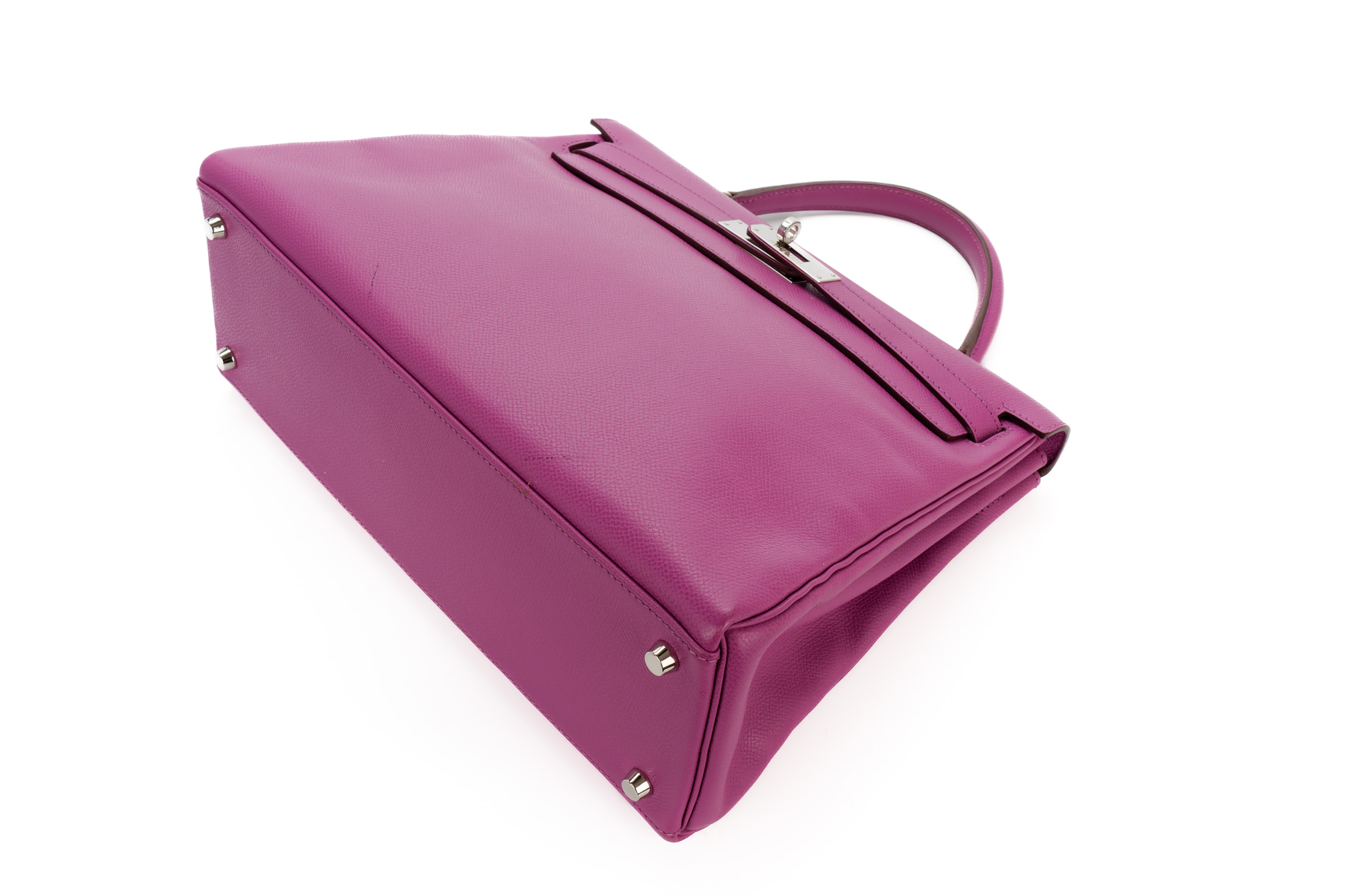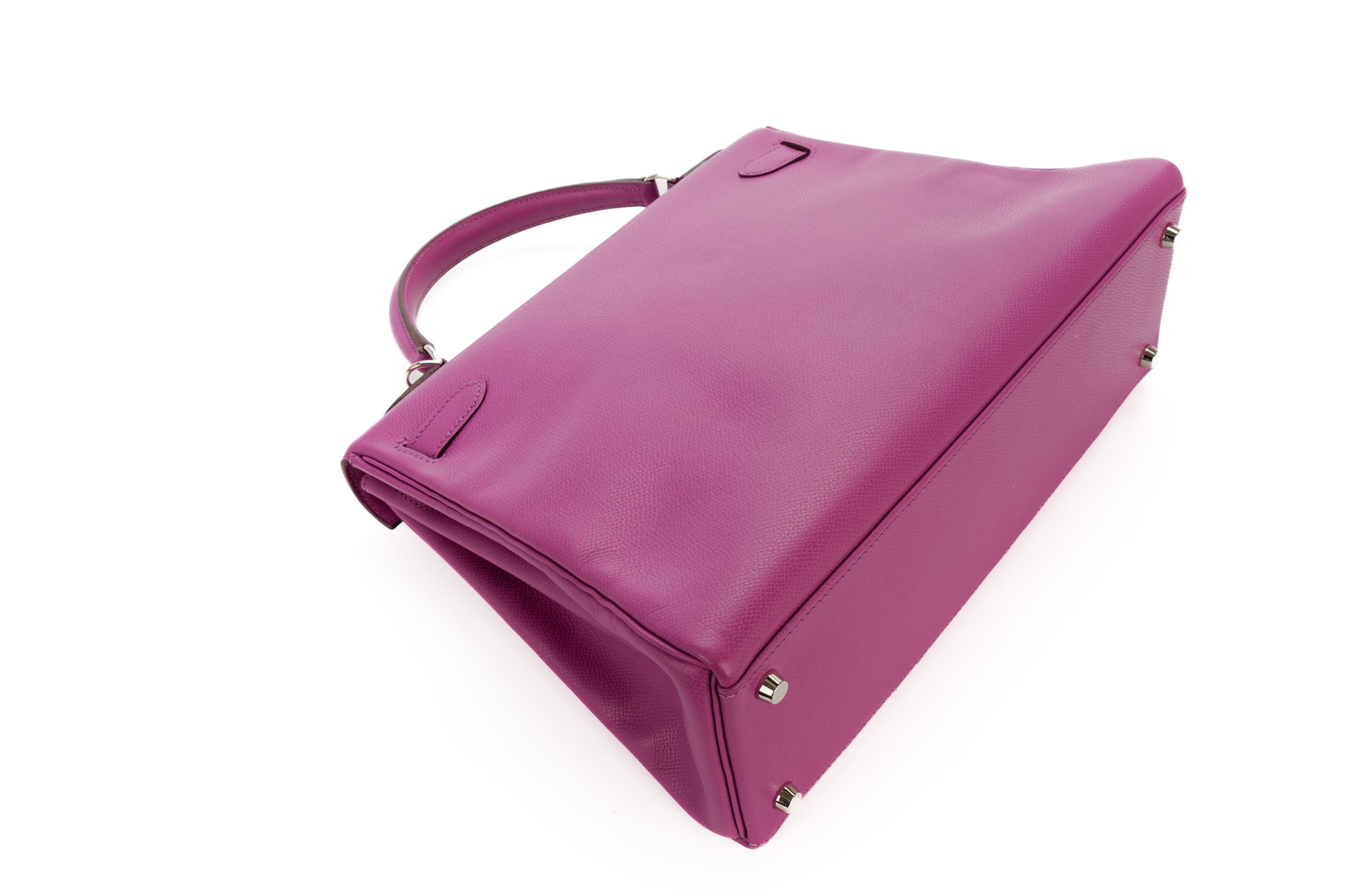 Hermès Kelly 32 Violet Courchevel Palladium Hardware / I Square Stamp 2005, Preloved