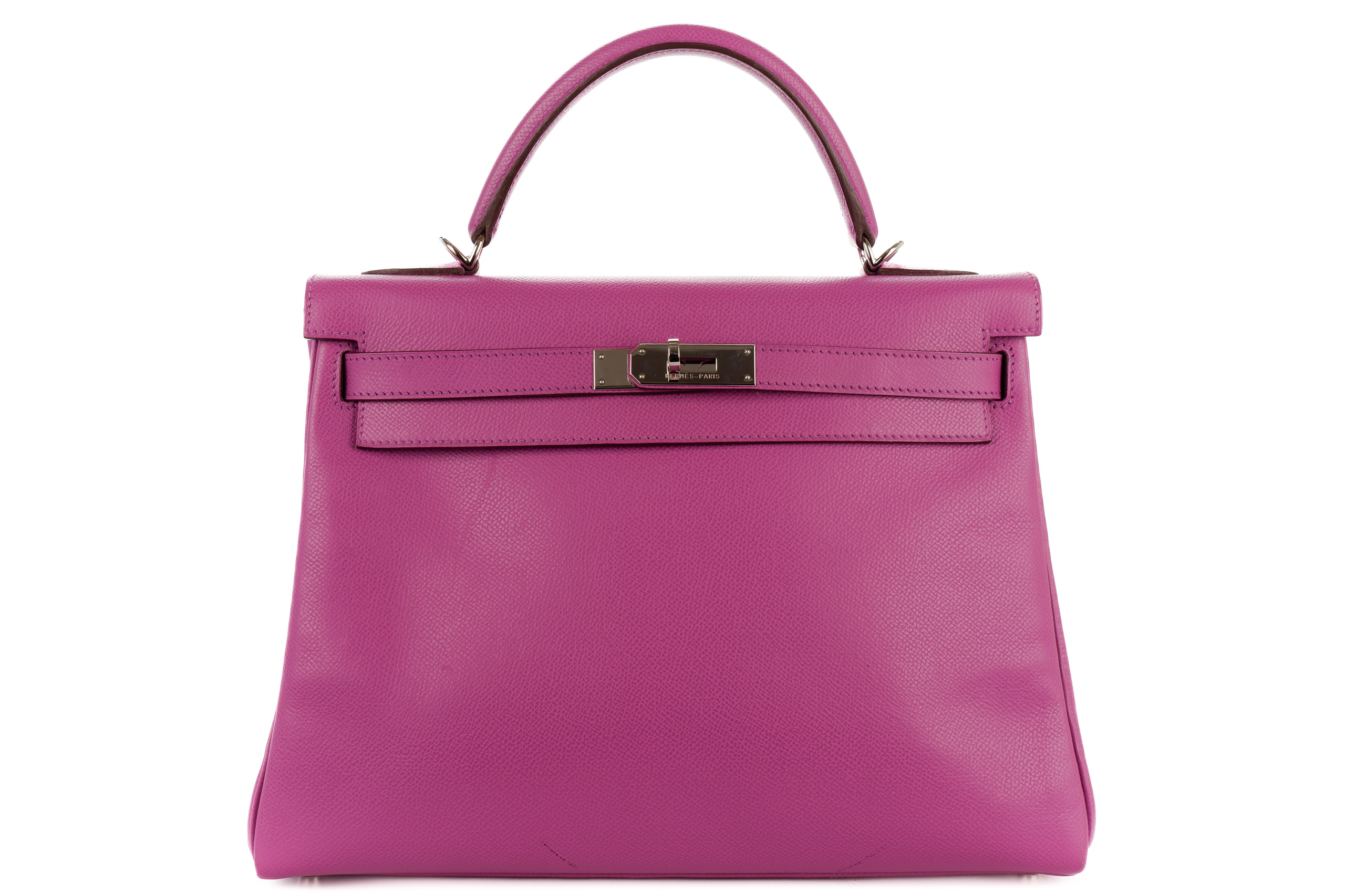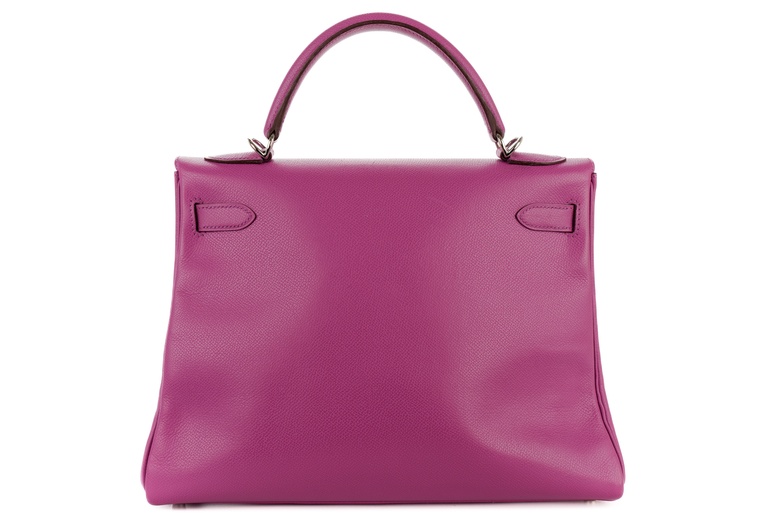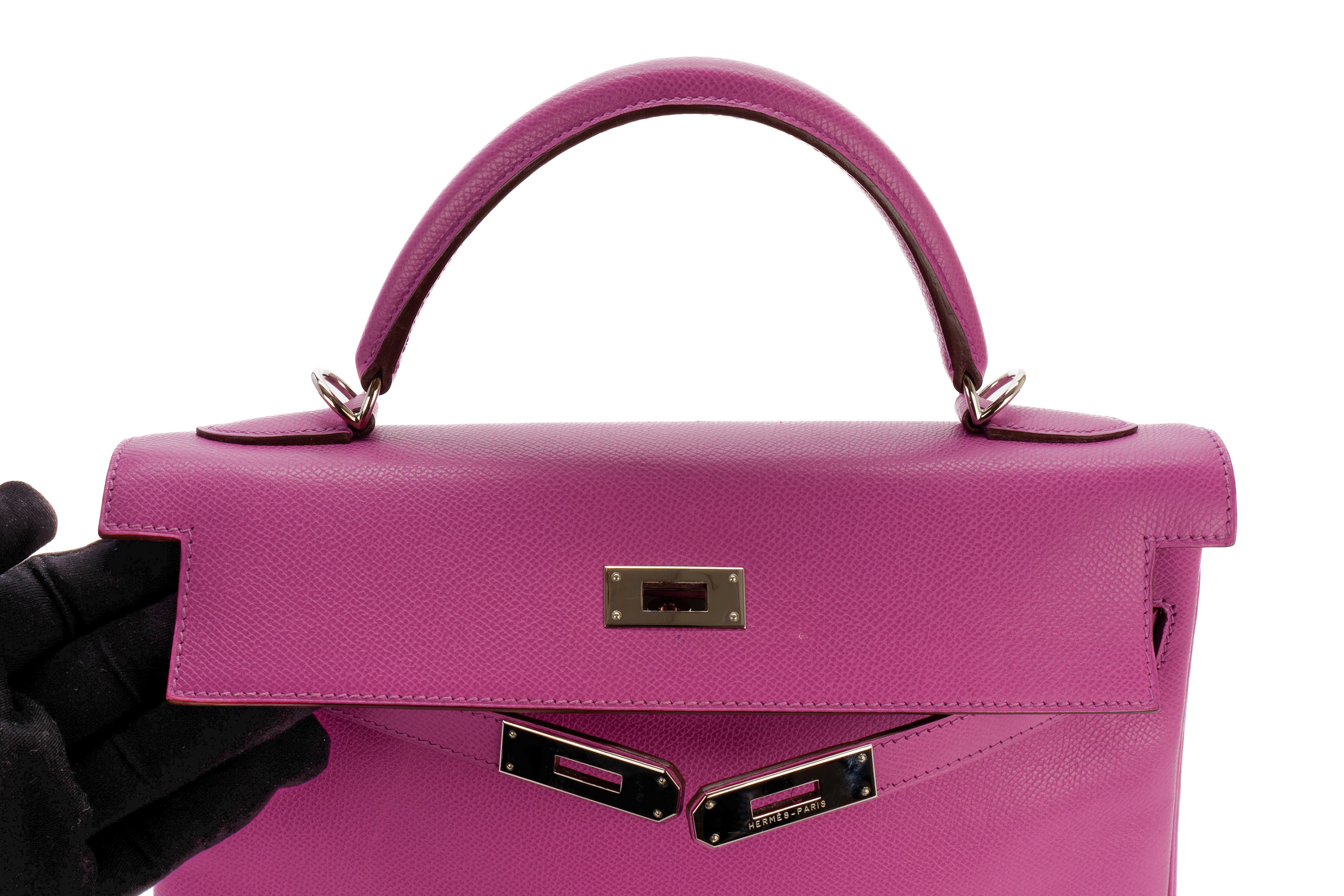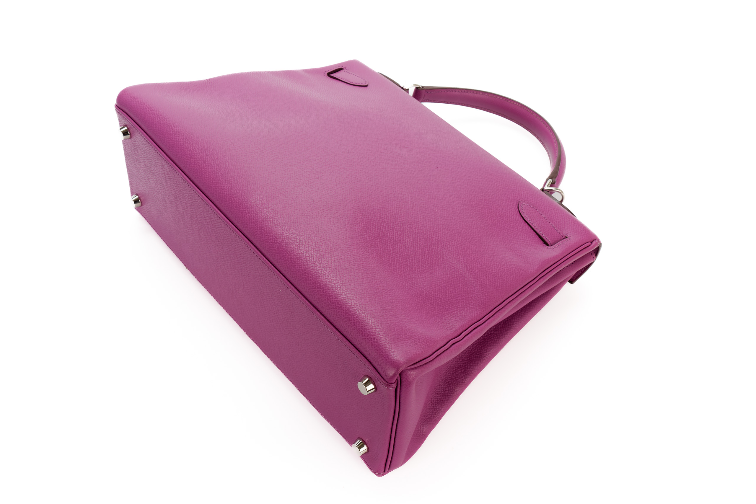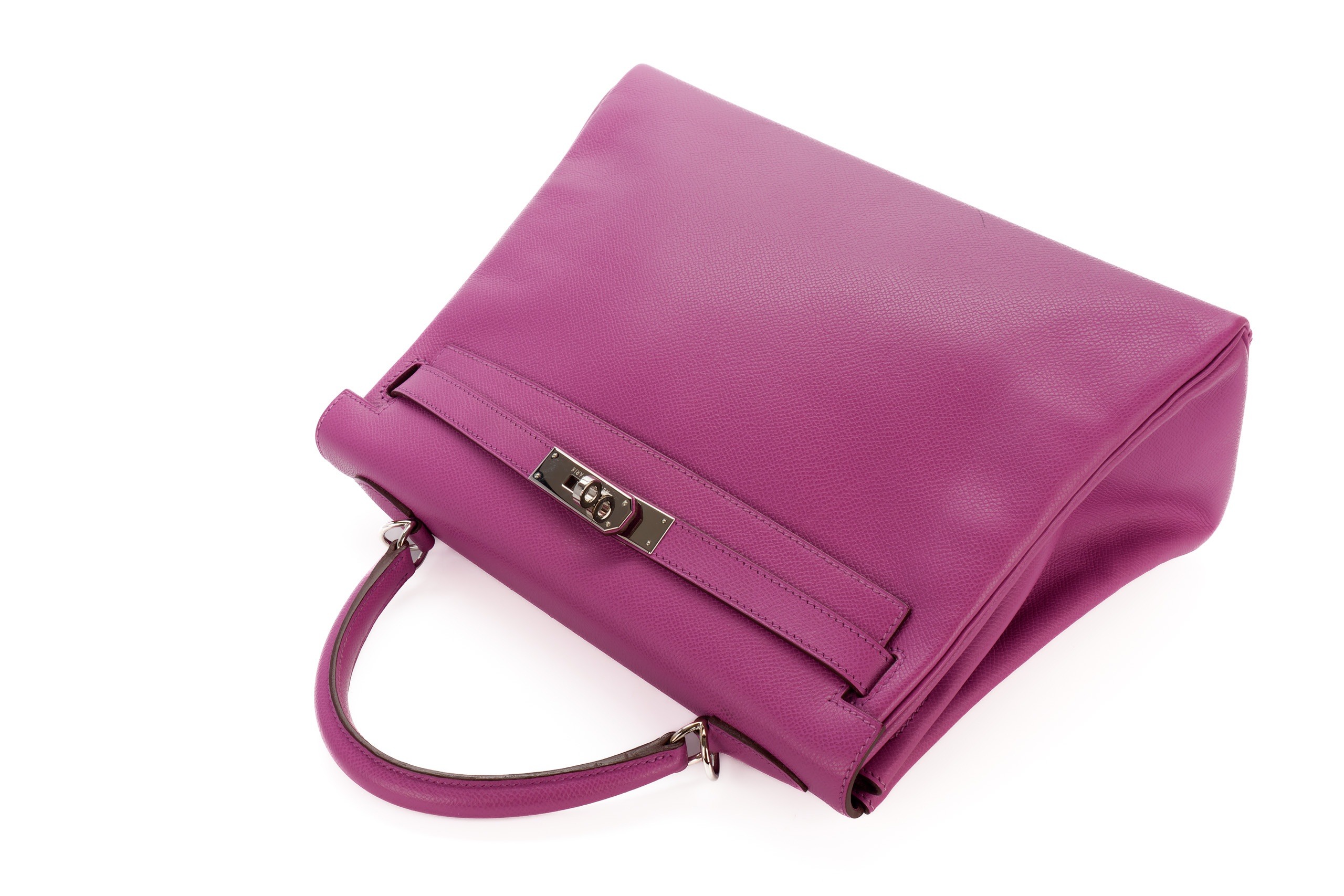 Hermès Kelly 32 Violet Courchevel Palladium Hardware / I Square Stamp 2005, Preloved