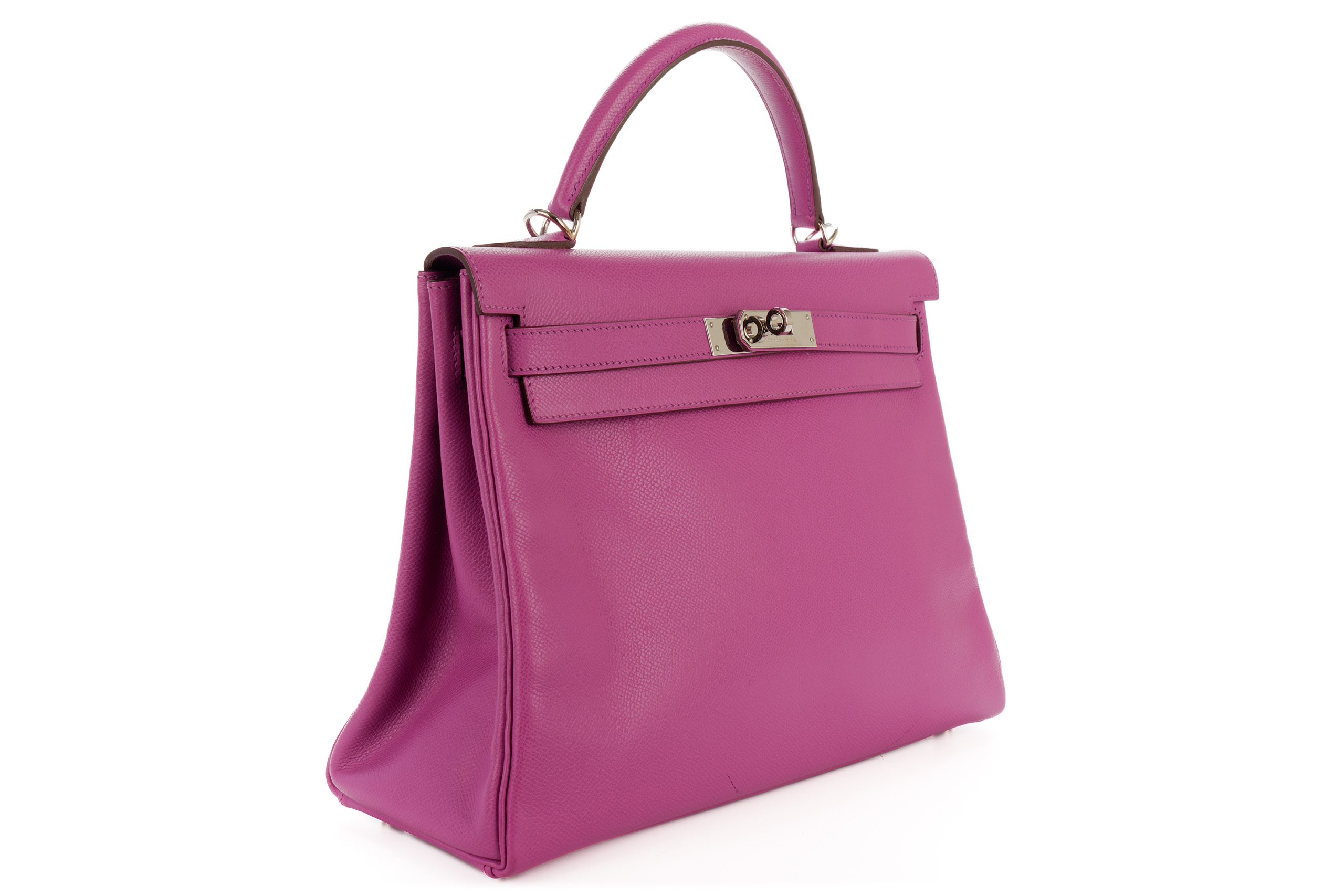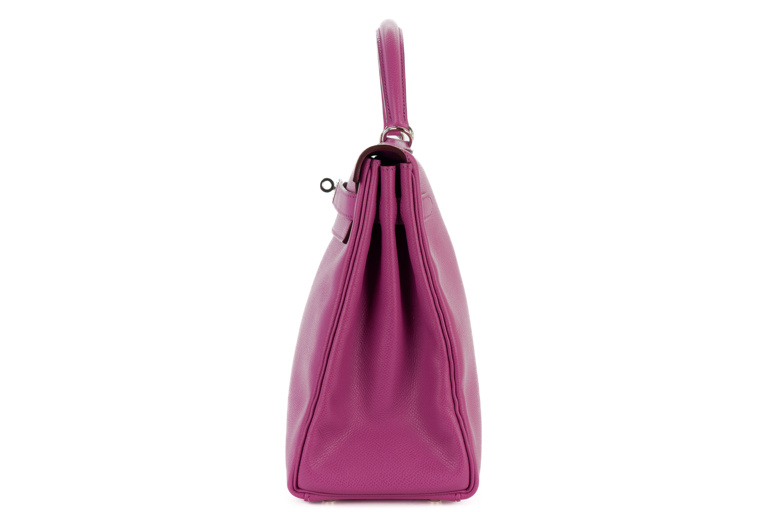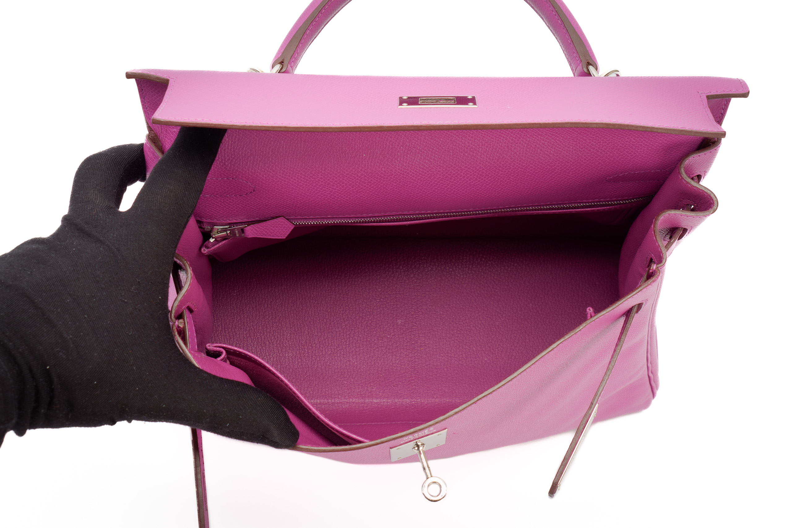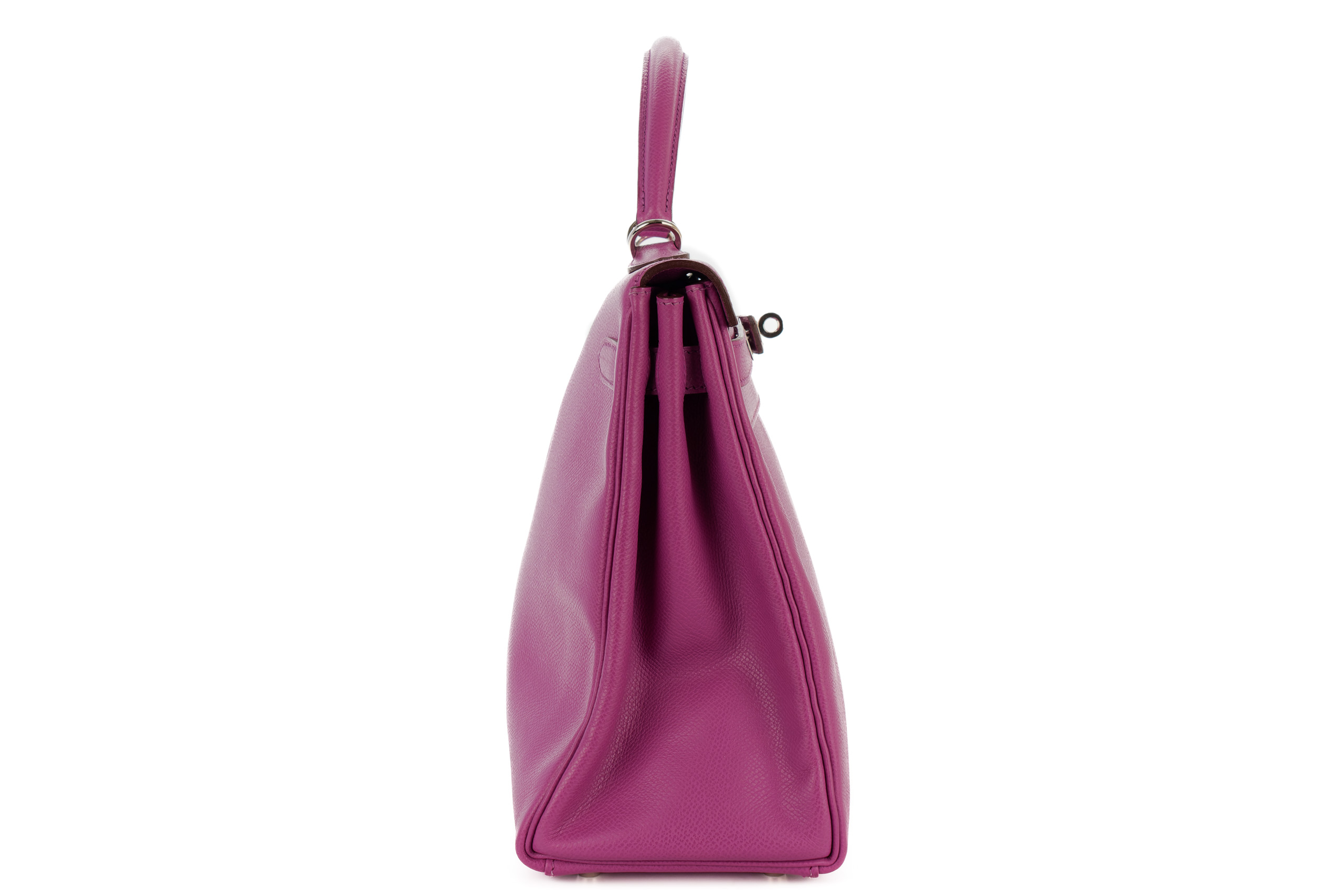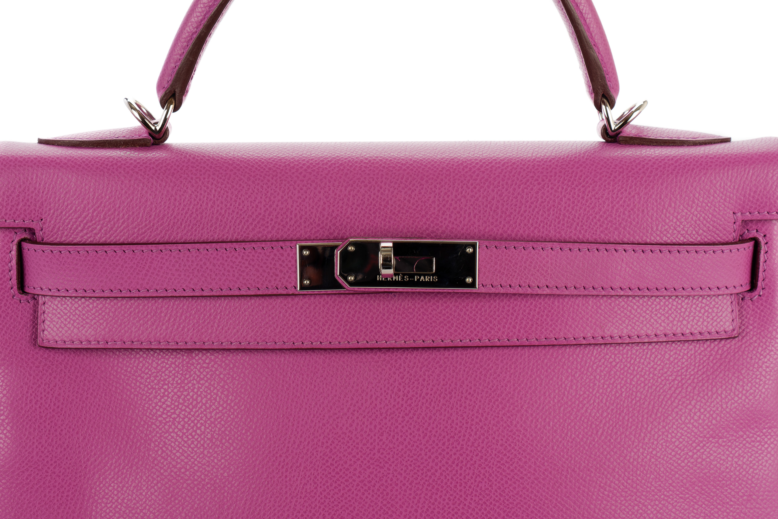 Hermès Kelly 32 Violet Courchevel Palladium Hardware / I Square Stamp 2005, Preloved