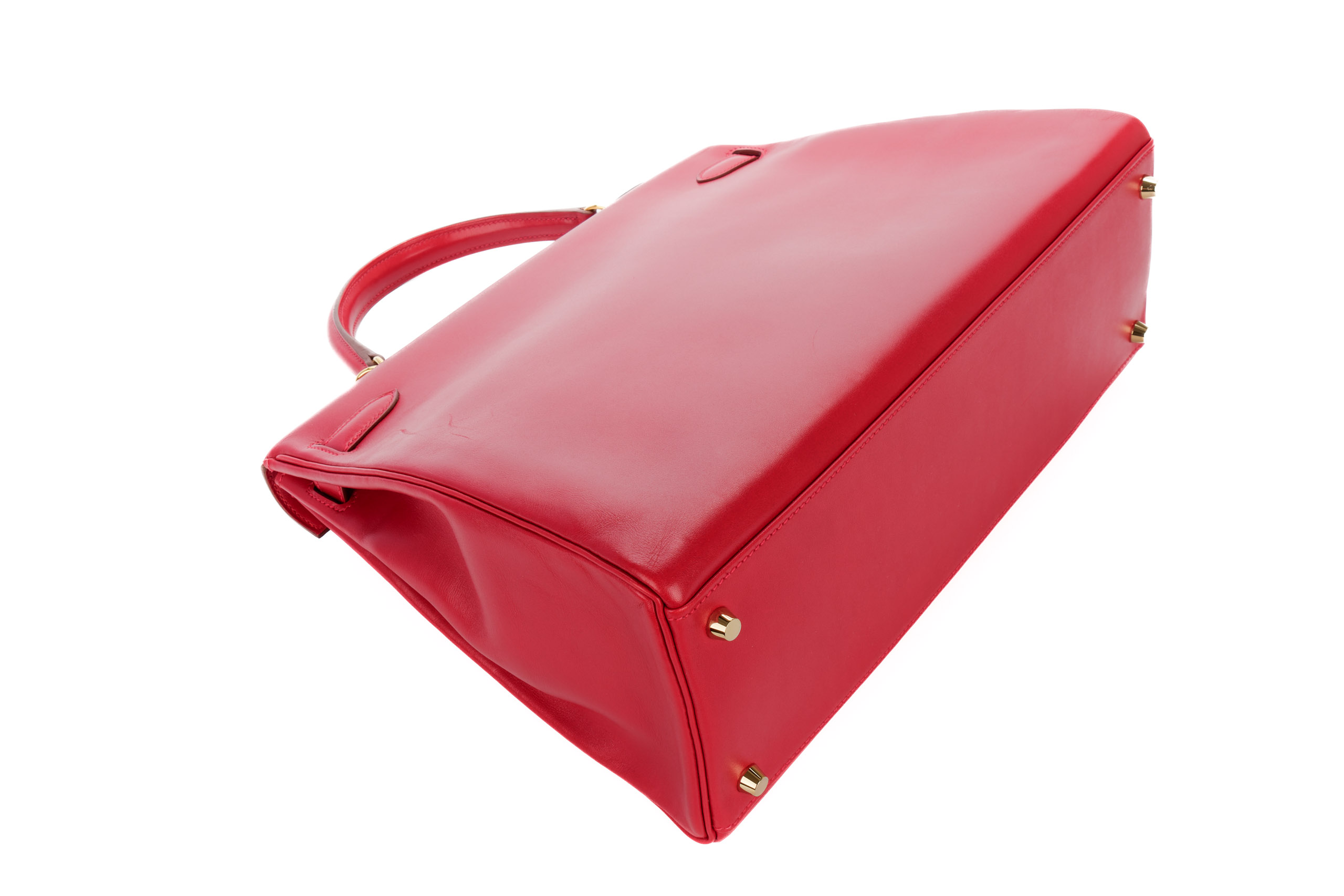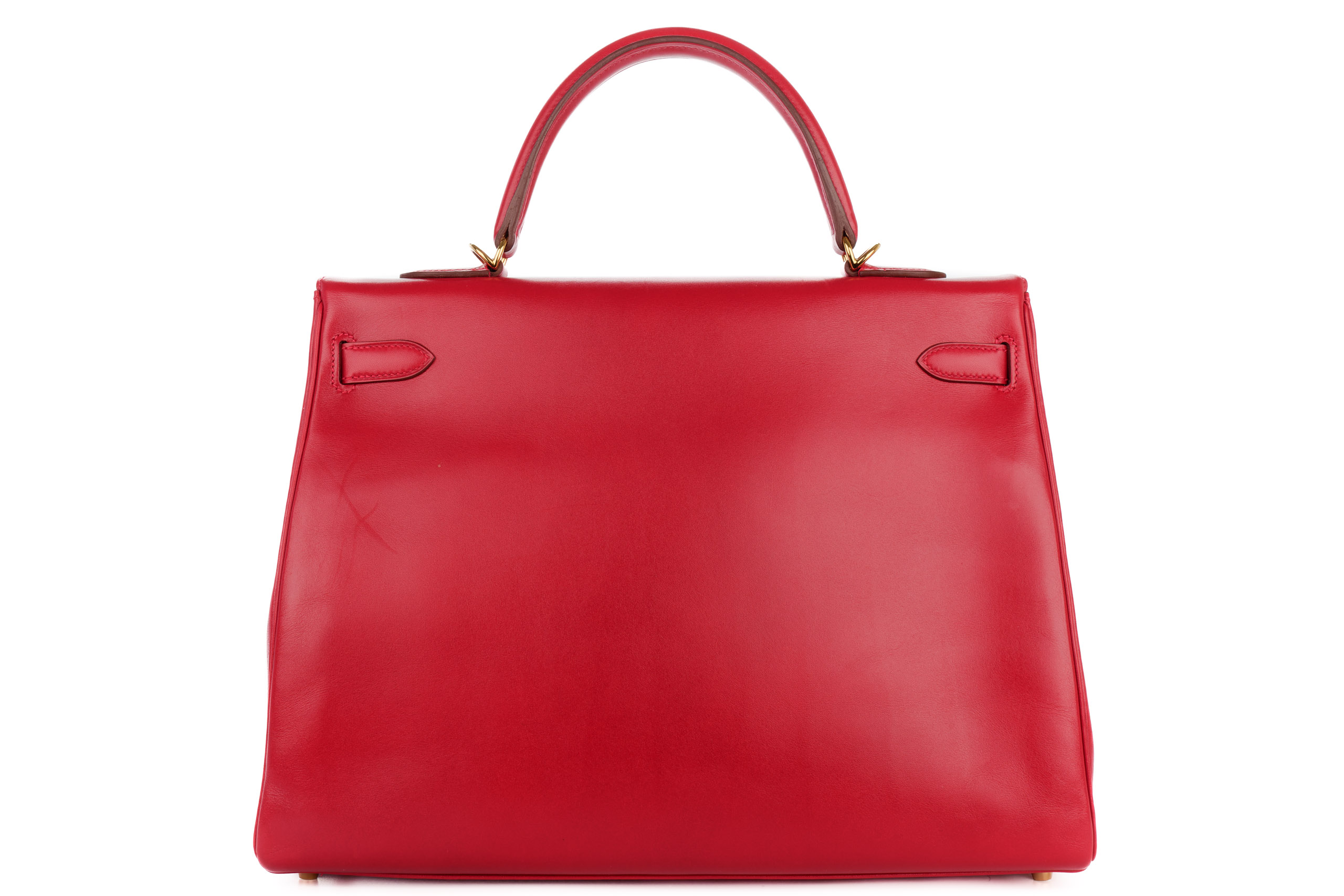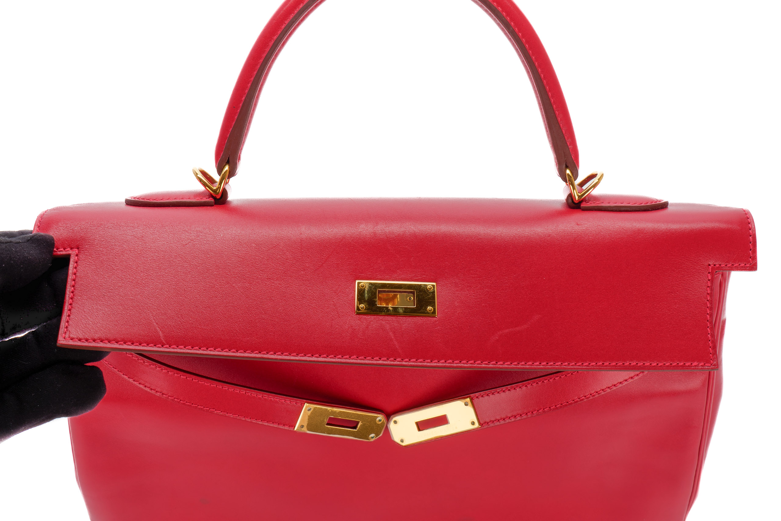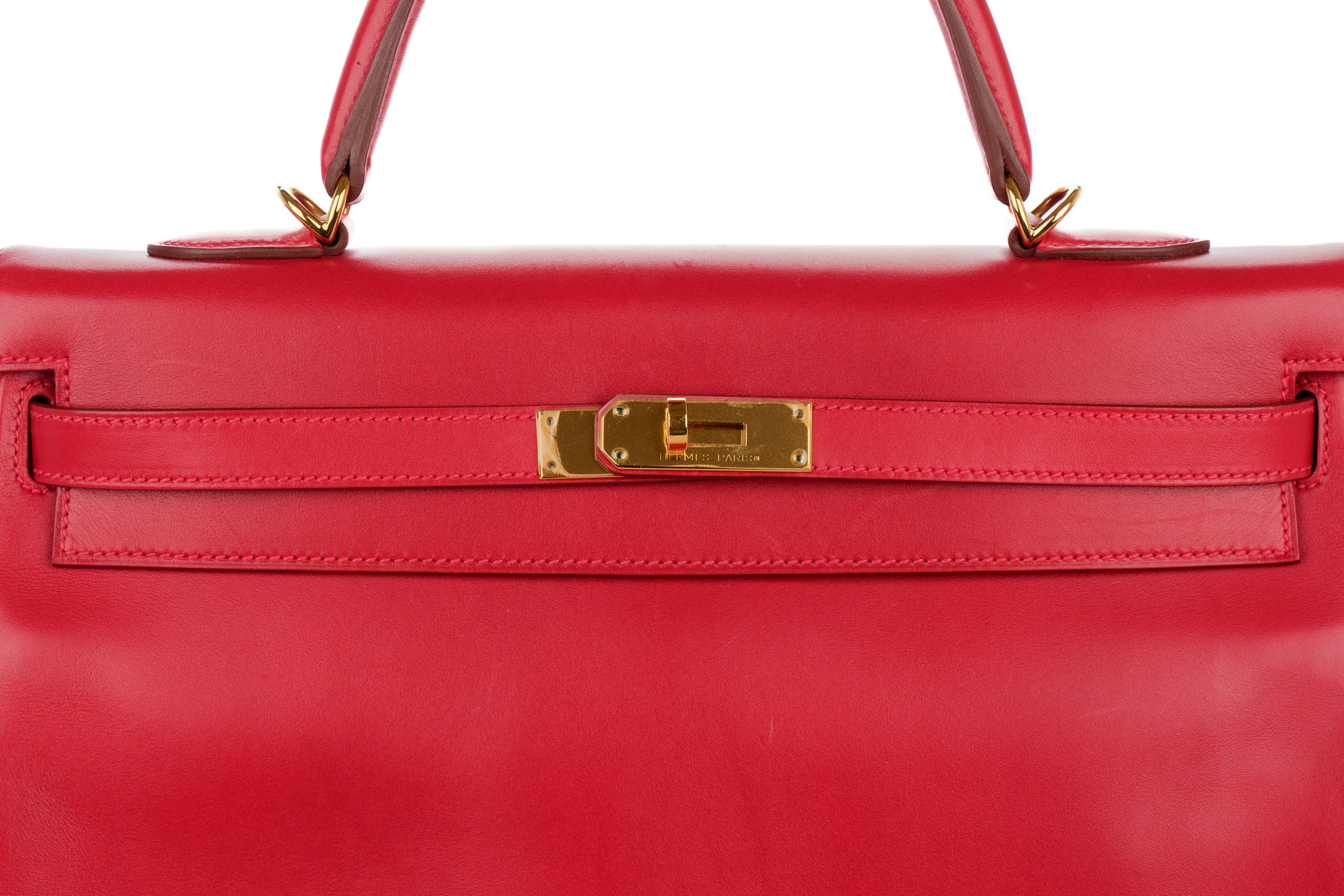 Hermès Kelly 35 Box Leather Roturne Rouge Vif Gold Hardware / Q Square 2013, Excellent Preloved