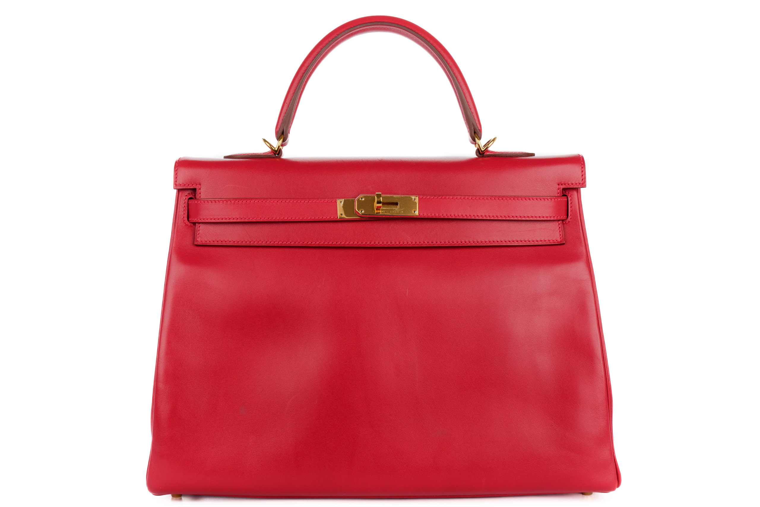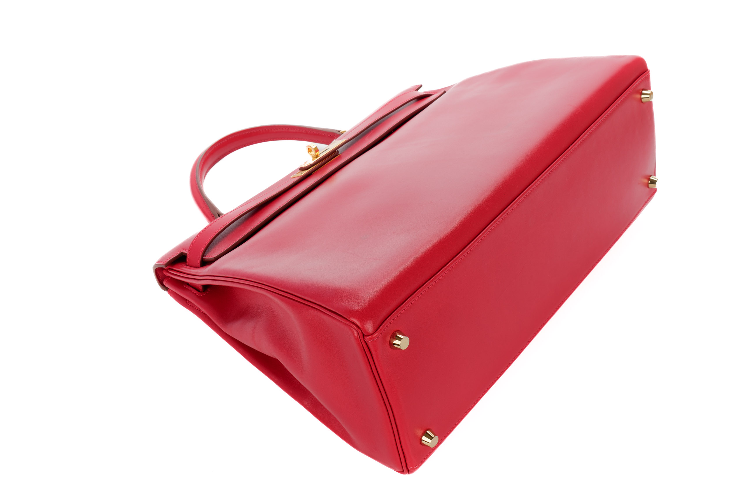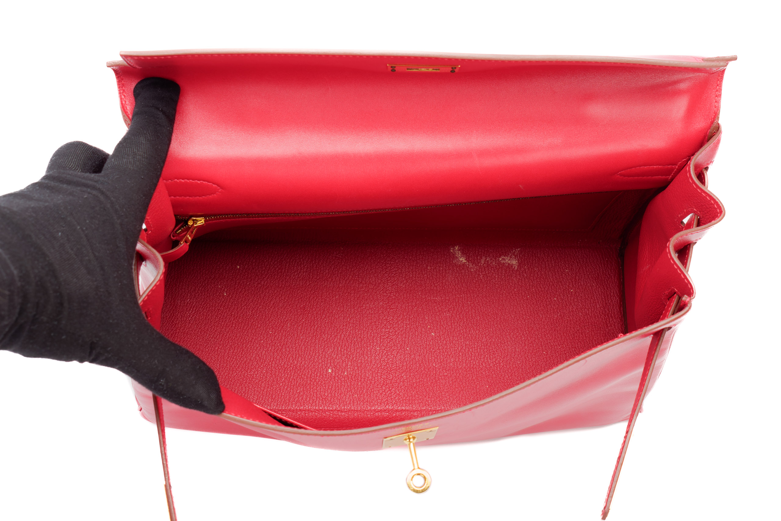 Hermès Kelly 35 Box Leather Roturne Rouge Vif Gold Hardware / Q Square 2013, Excellent Preloved