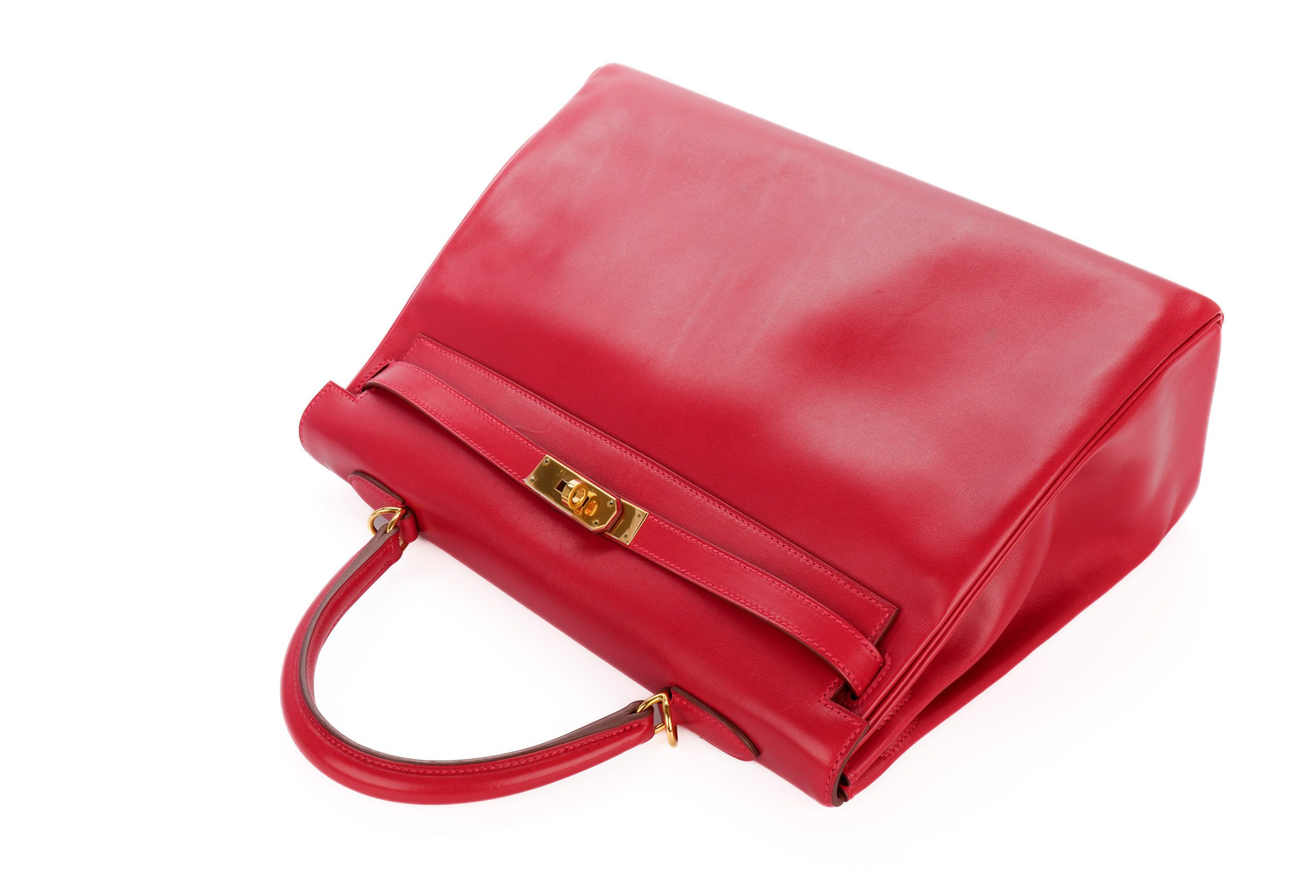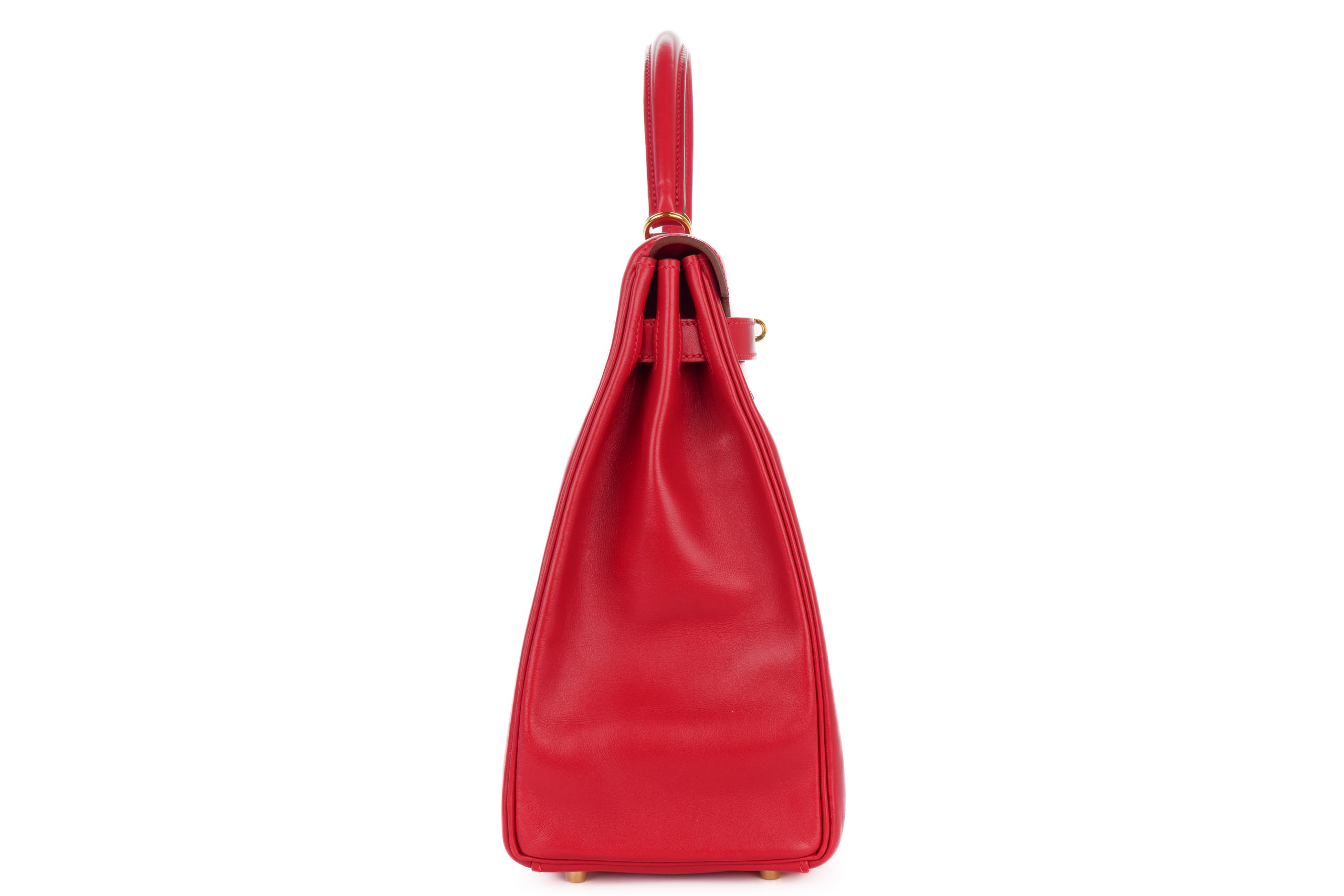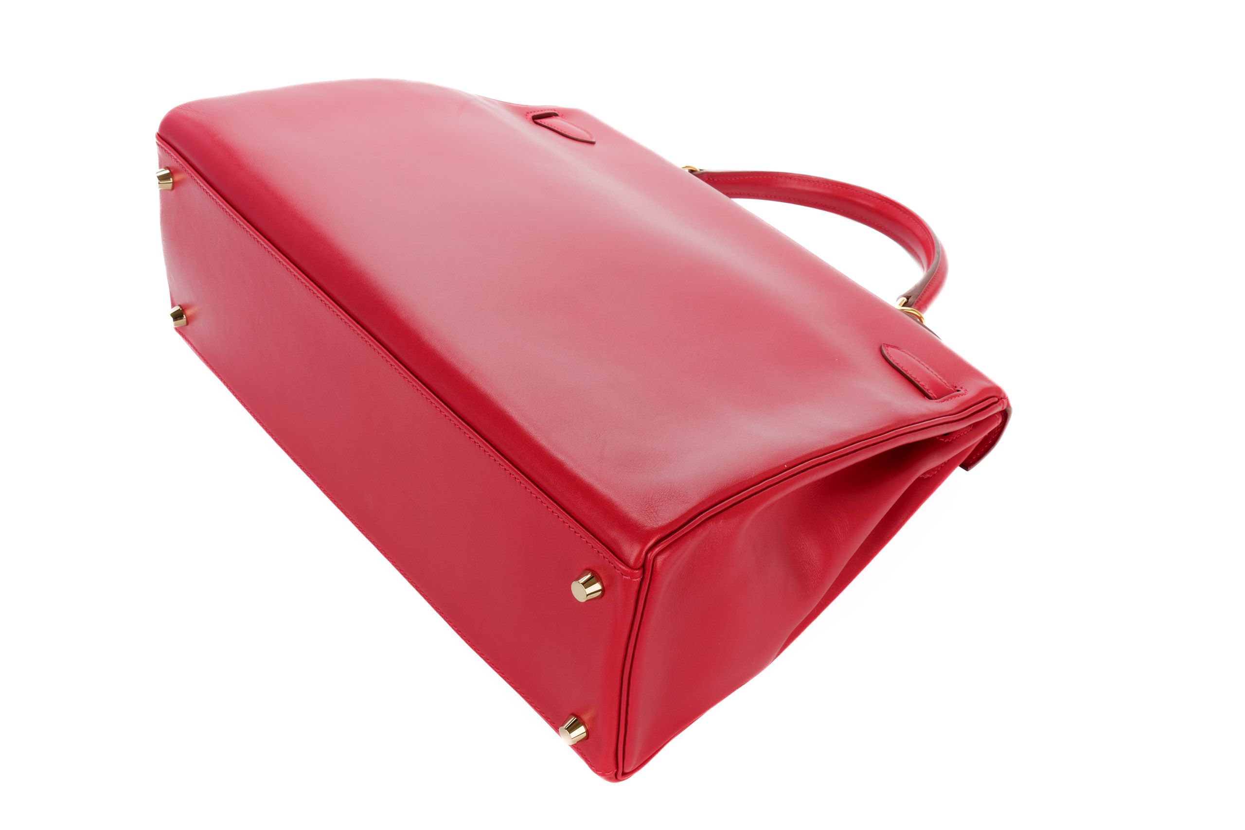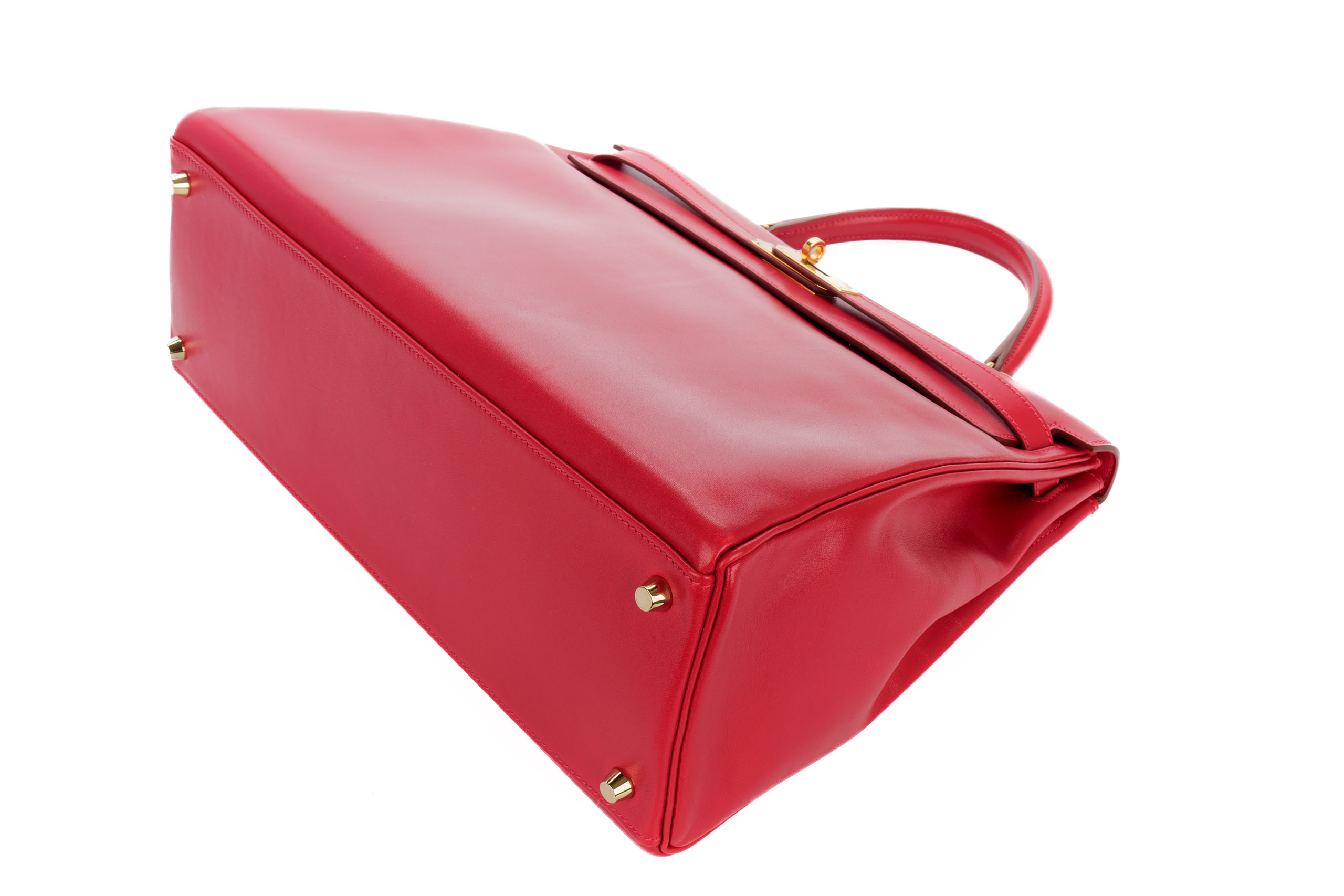 Hermès Kelly 35 Box Leather Roturne Rouge Vif Gold Hardware / Q Square 2013, Excellent Preloved