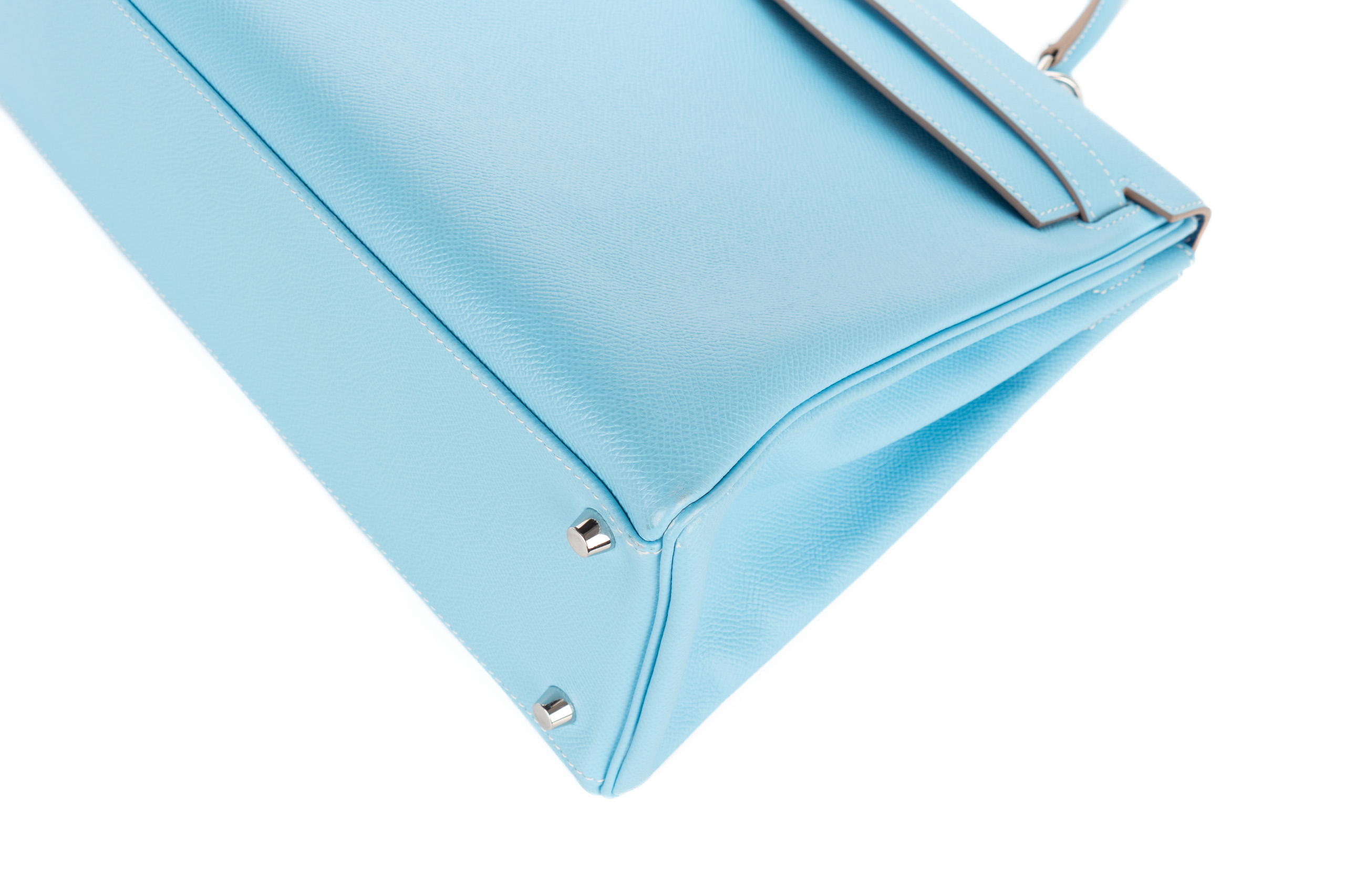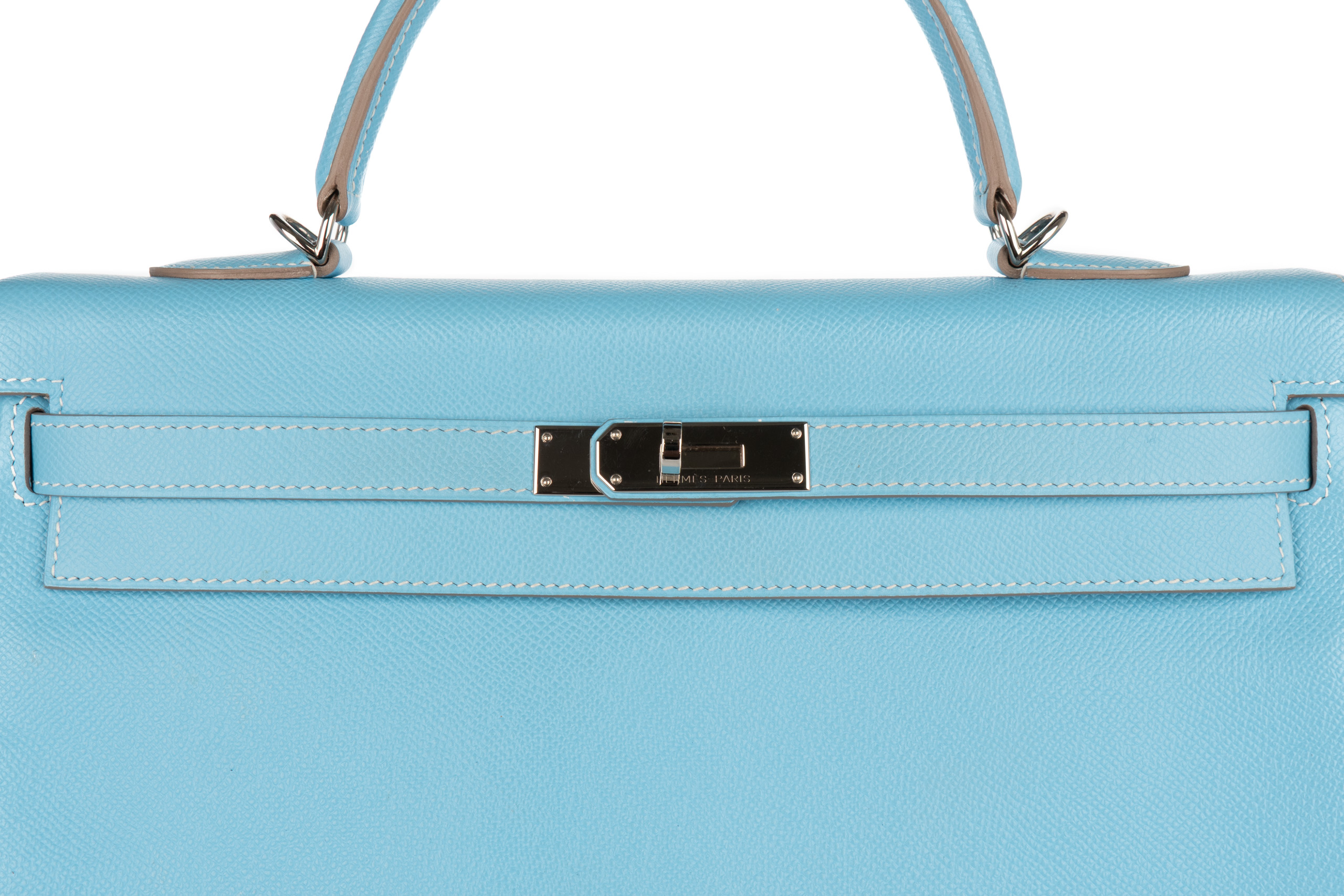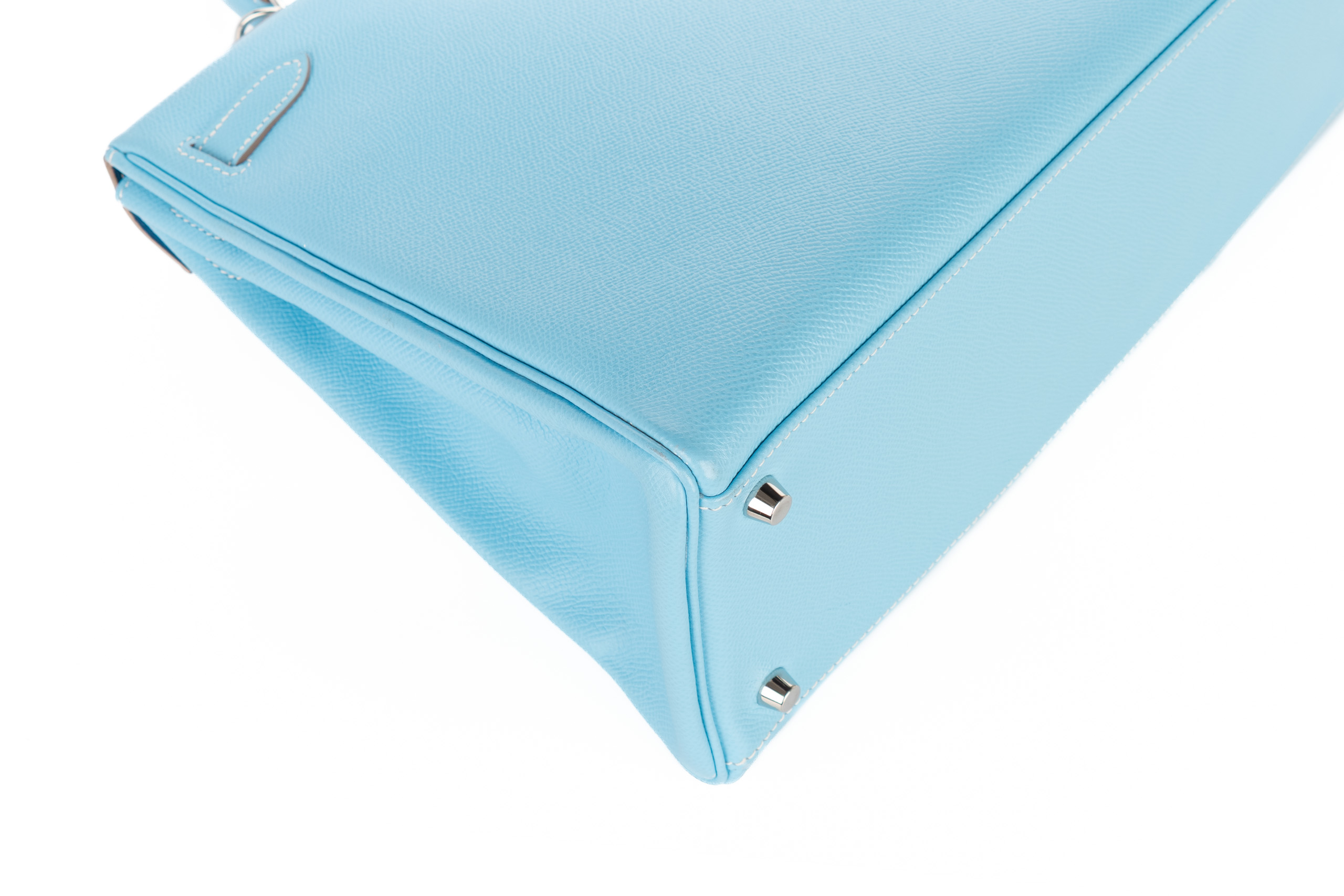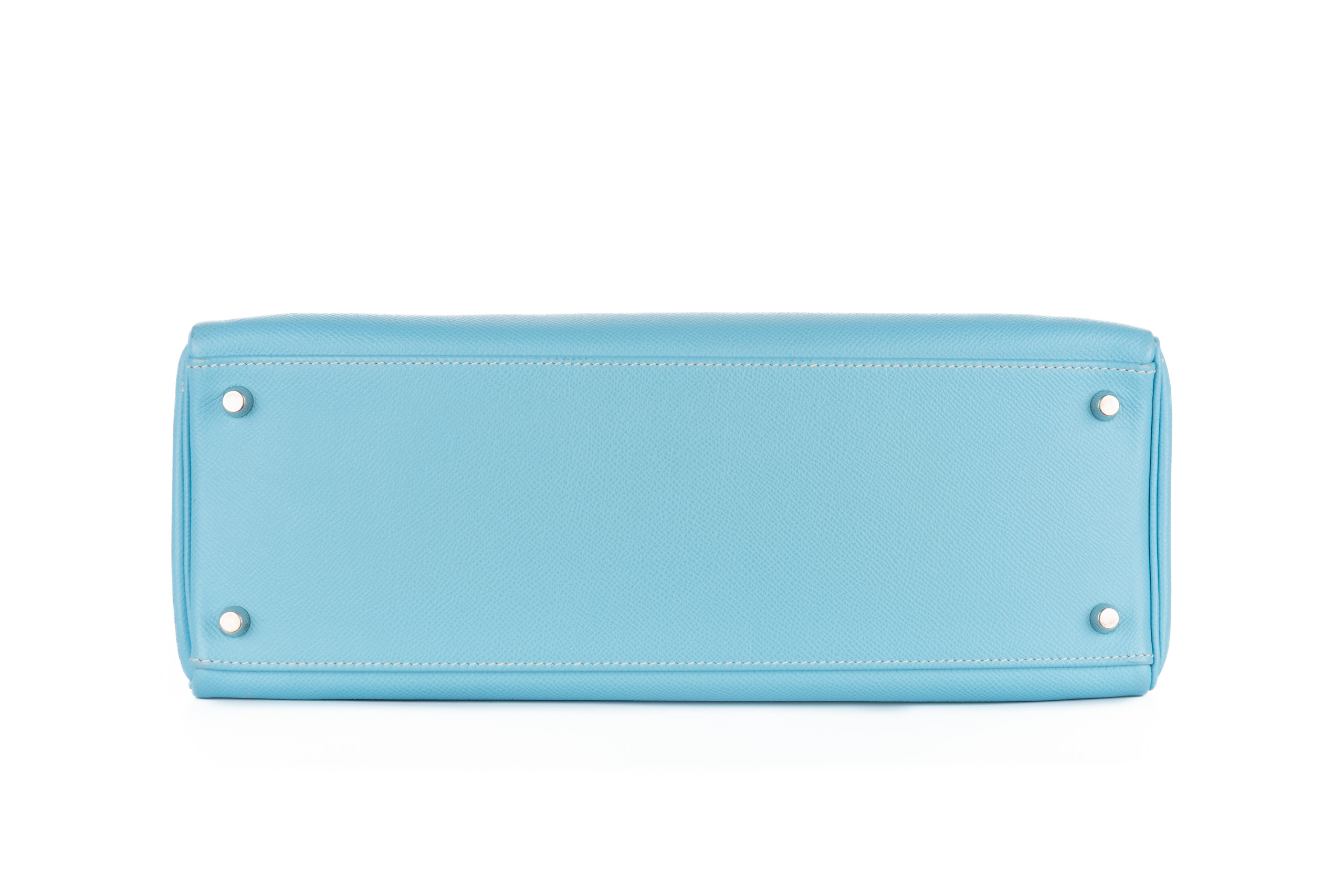 Hermès Kelly 35 Candy Collection Bleu Celeste / Bleu Mykonos Epsom Retourne Palladium Hardware / O Circle Stamp 2011, Excellent Preloved