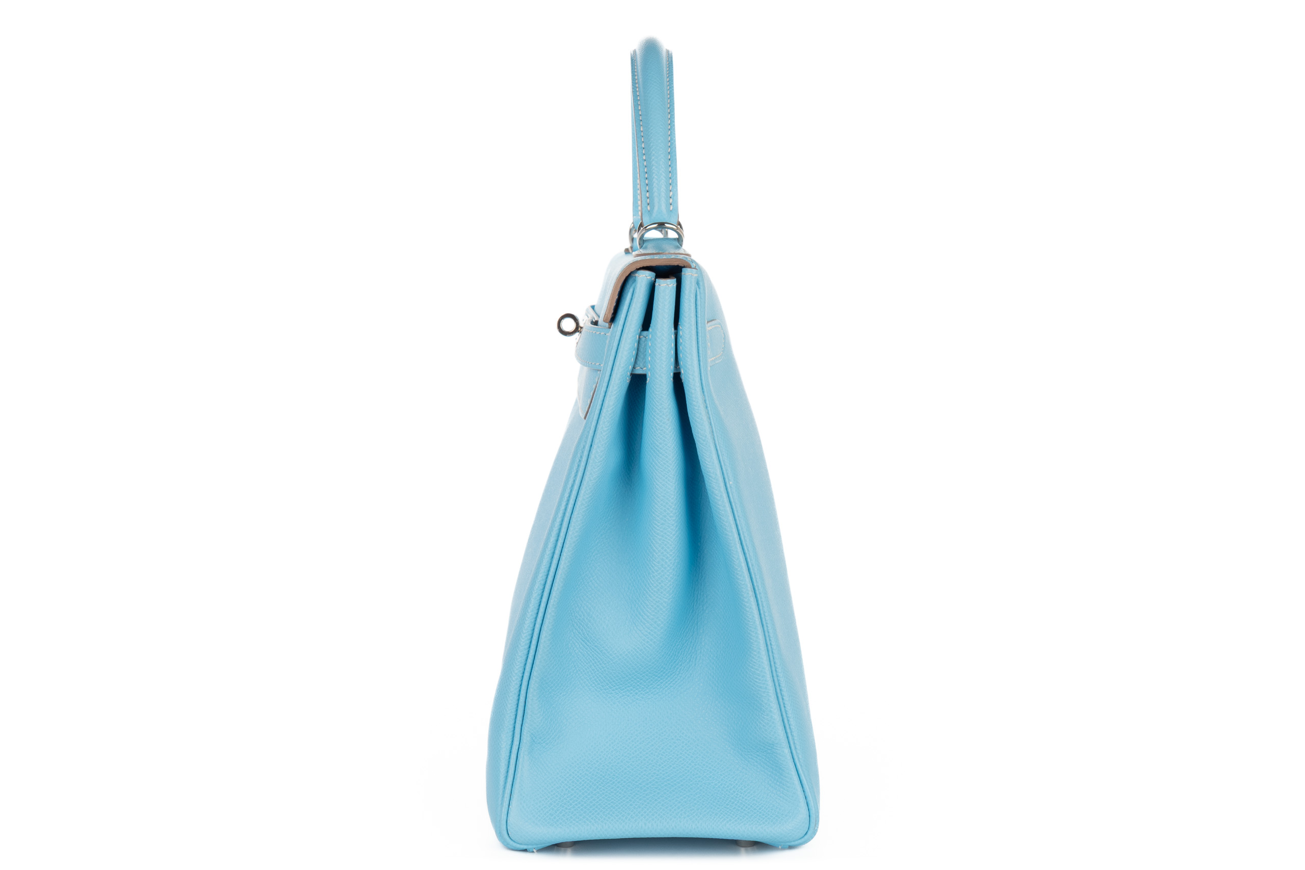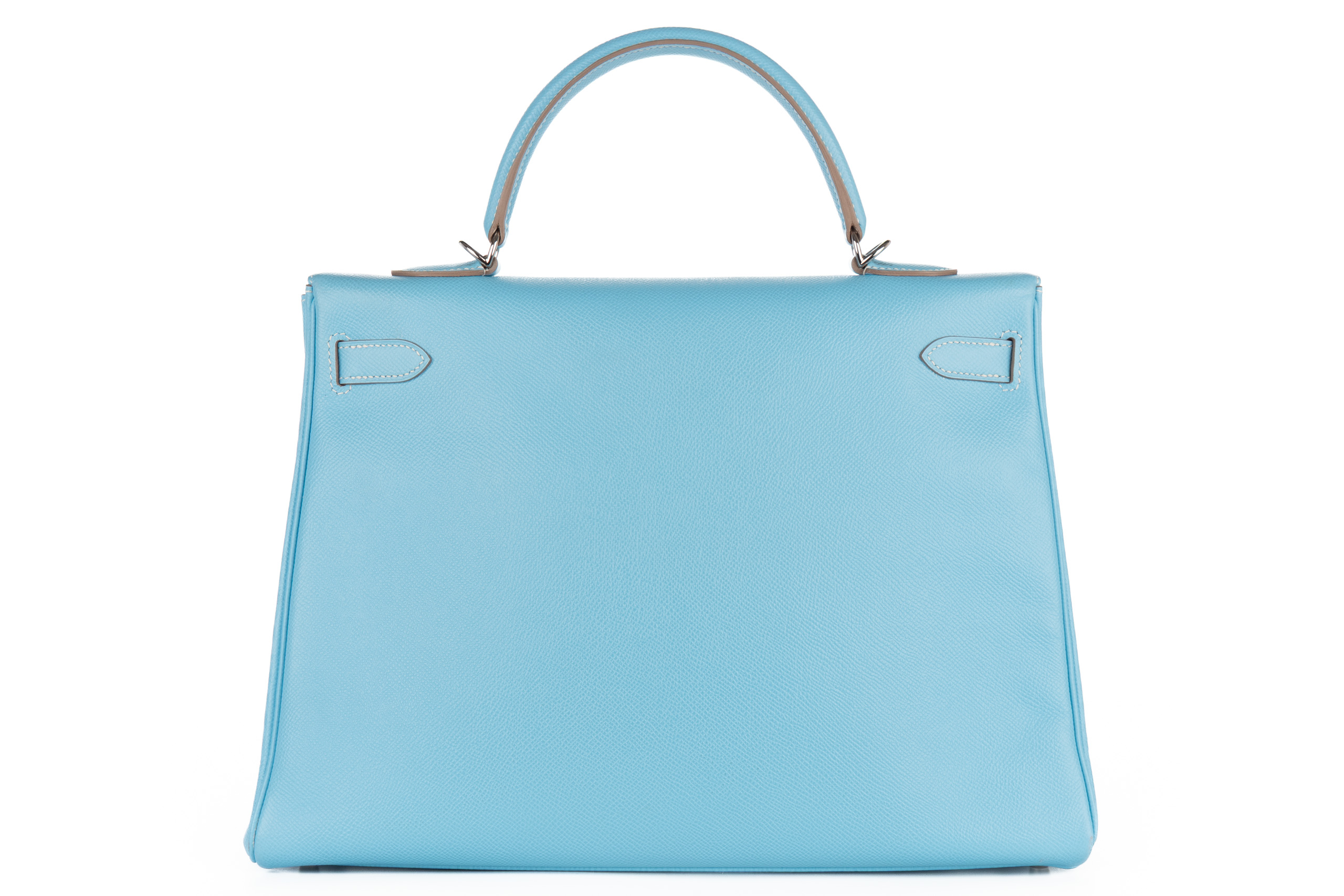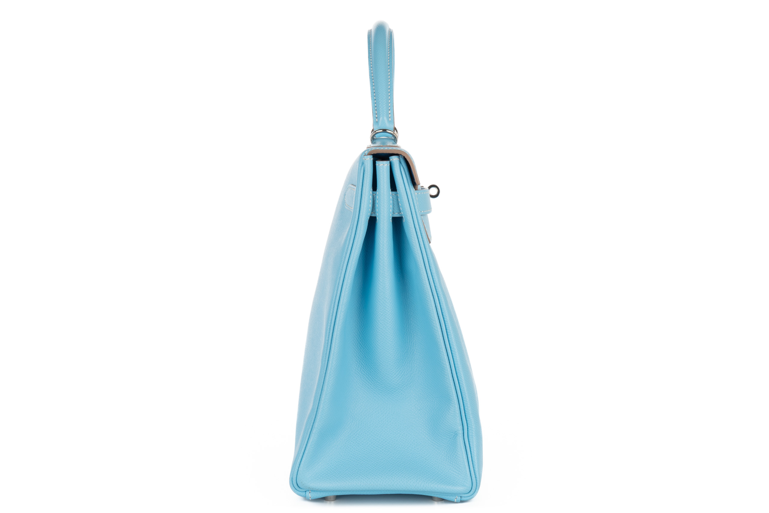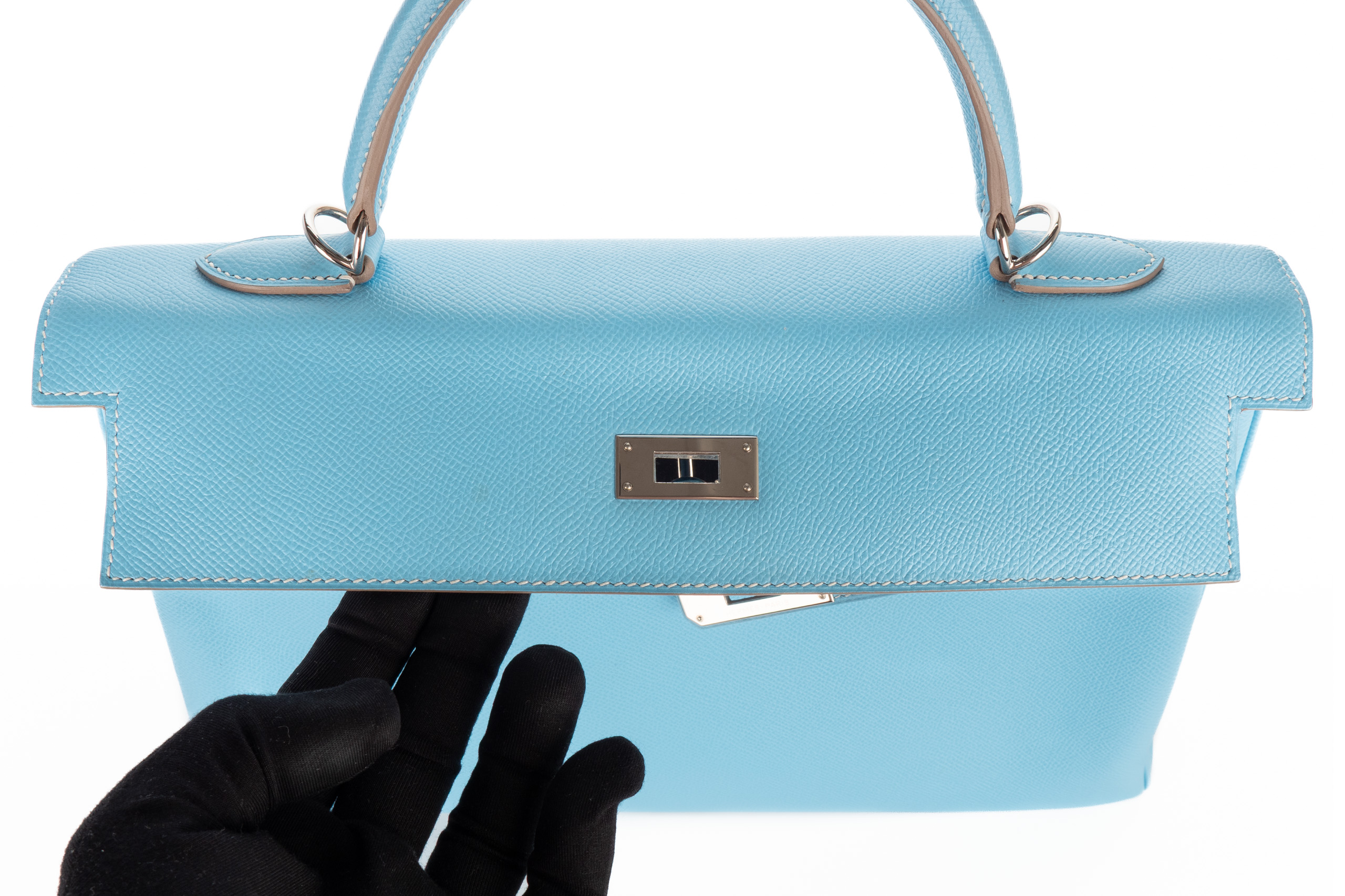 Hermès Kelly 35 Candy Collection Bleu Celeste / Bleu Mykonos Epsom Retourne Palladium Hardware / O Circle Stamp 2011, Excellent Preloved
