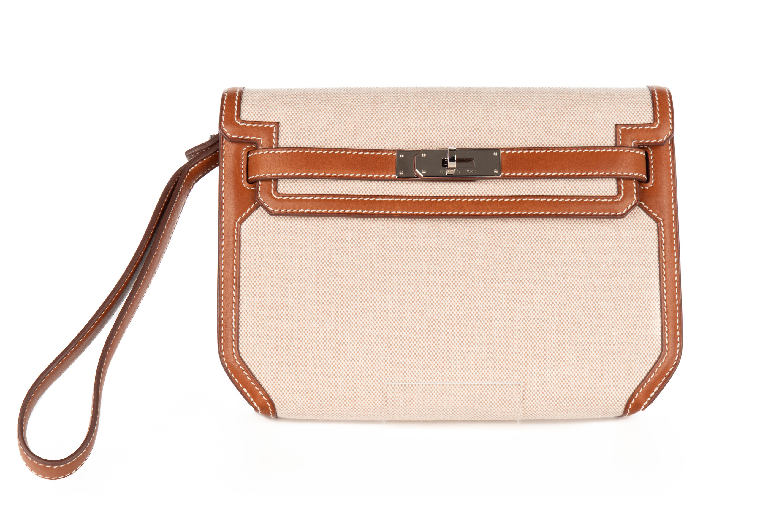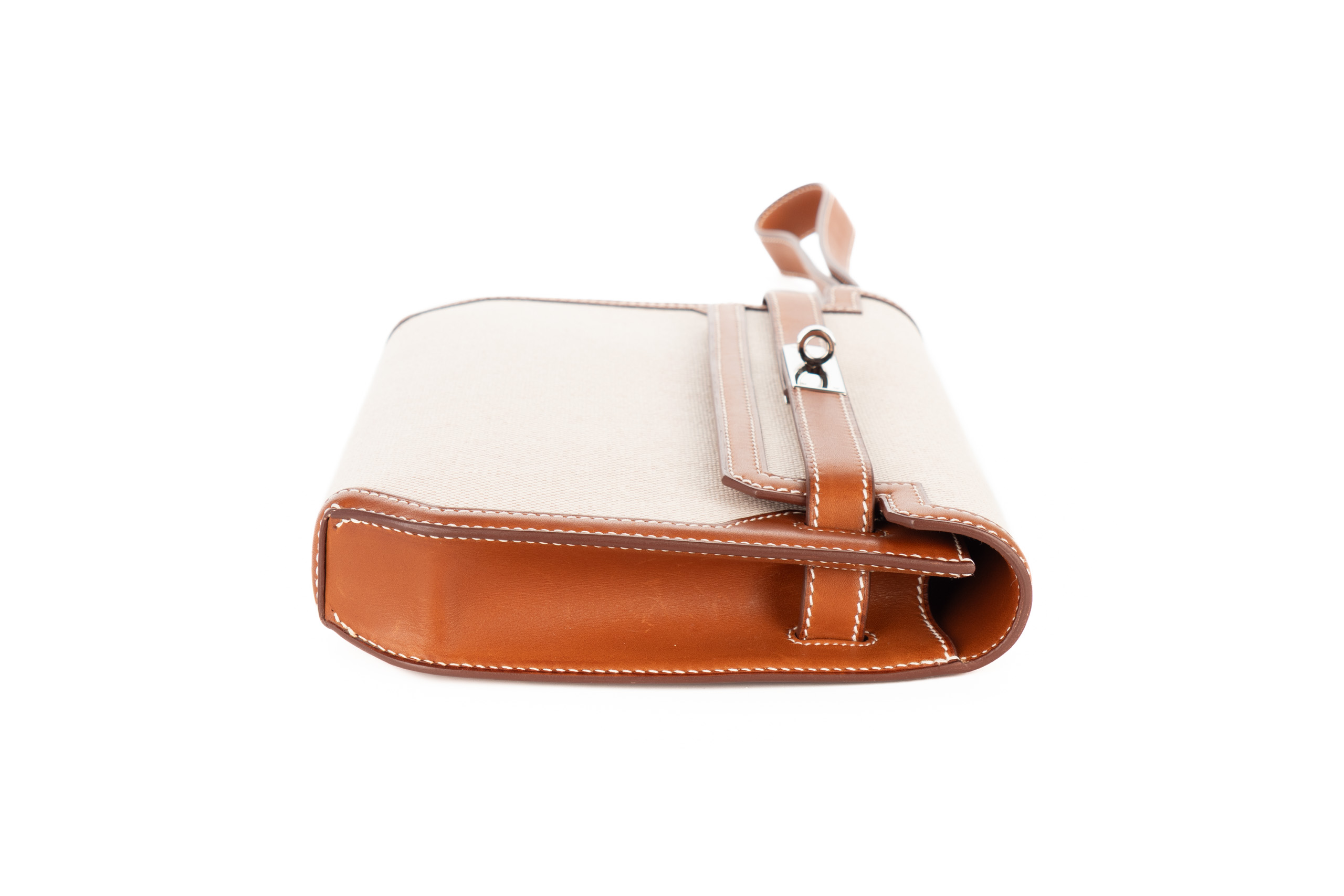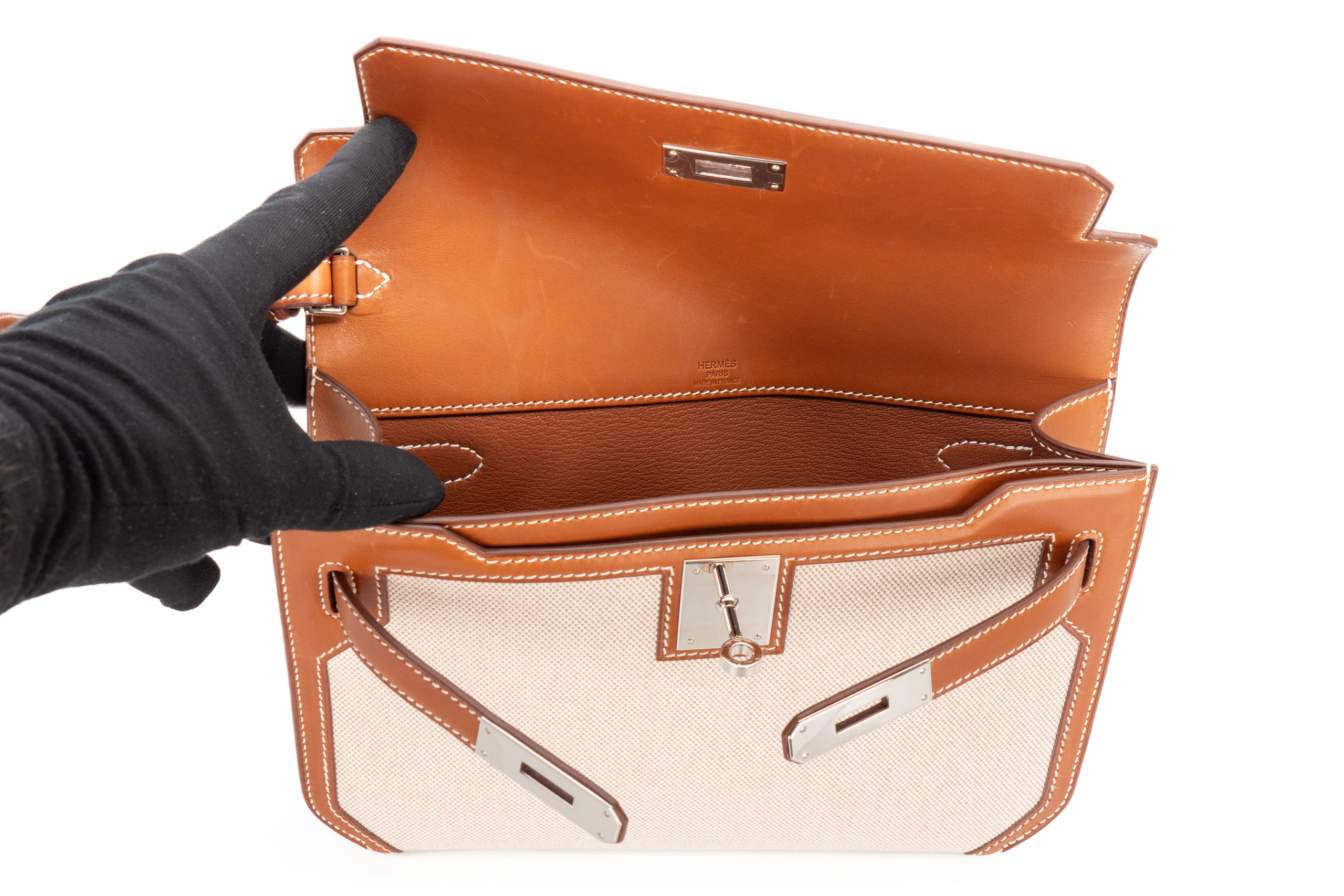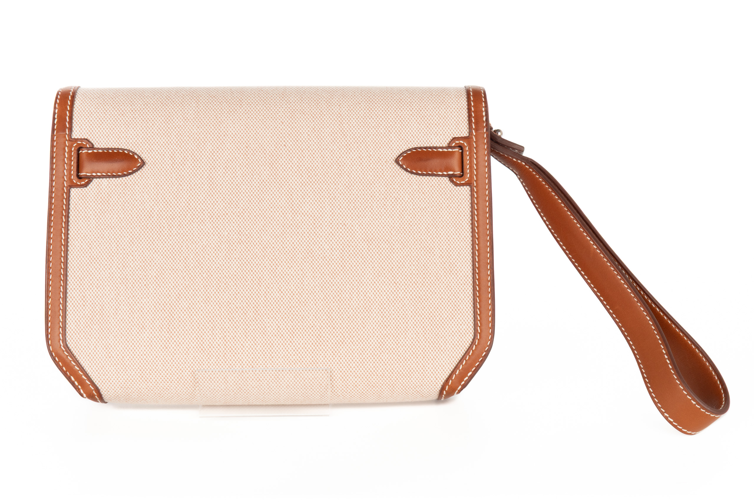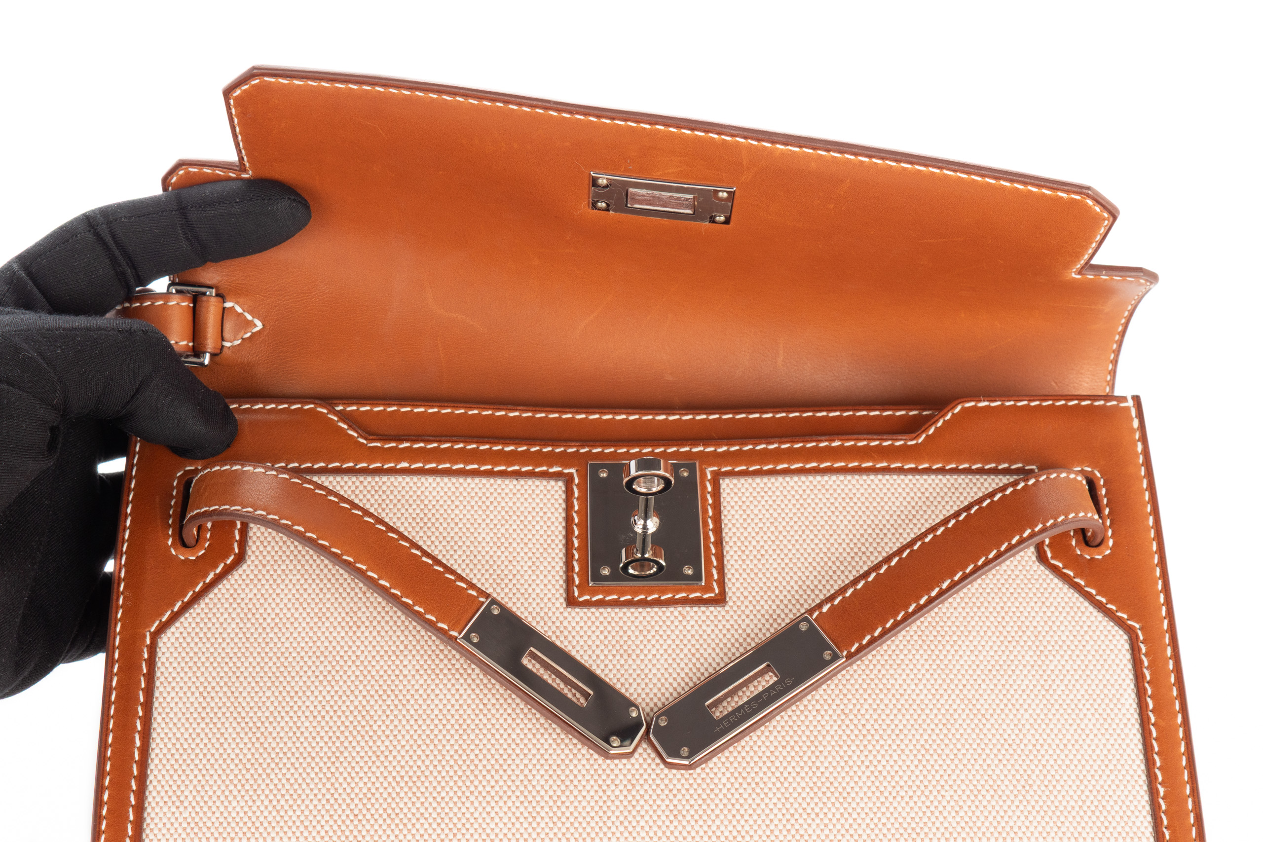 Hermès Kelly Depeches 25 Barenia Faubourg / Ecru Toile Palladium Hardware / Z Stamp 2021, Excellent Pre Loved