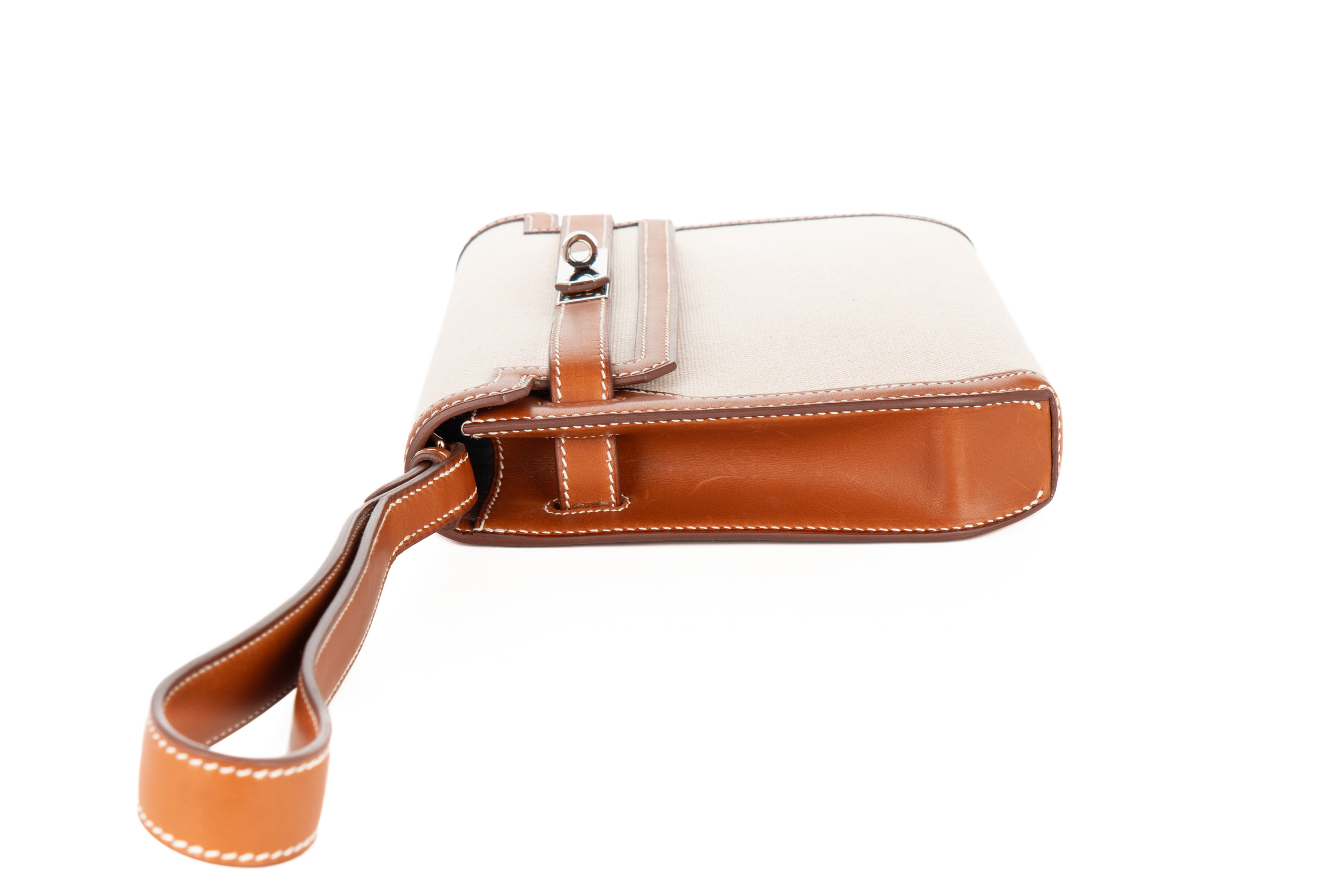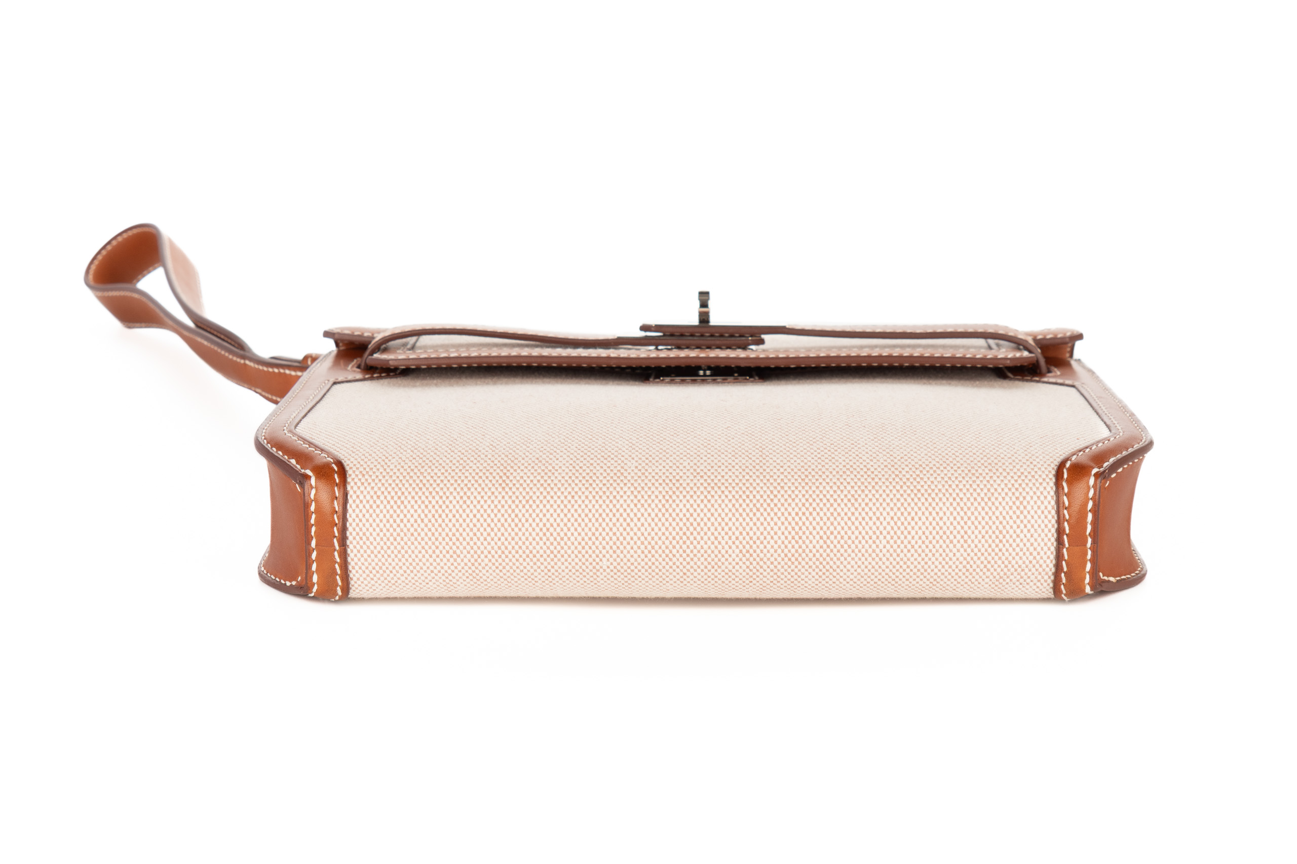 Hermès Kelly Depeches 25 Barenia Faubourg / Ecru Toile Palladium Hardware