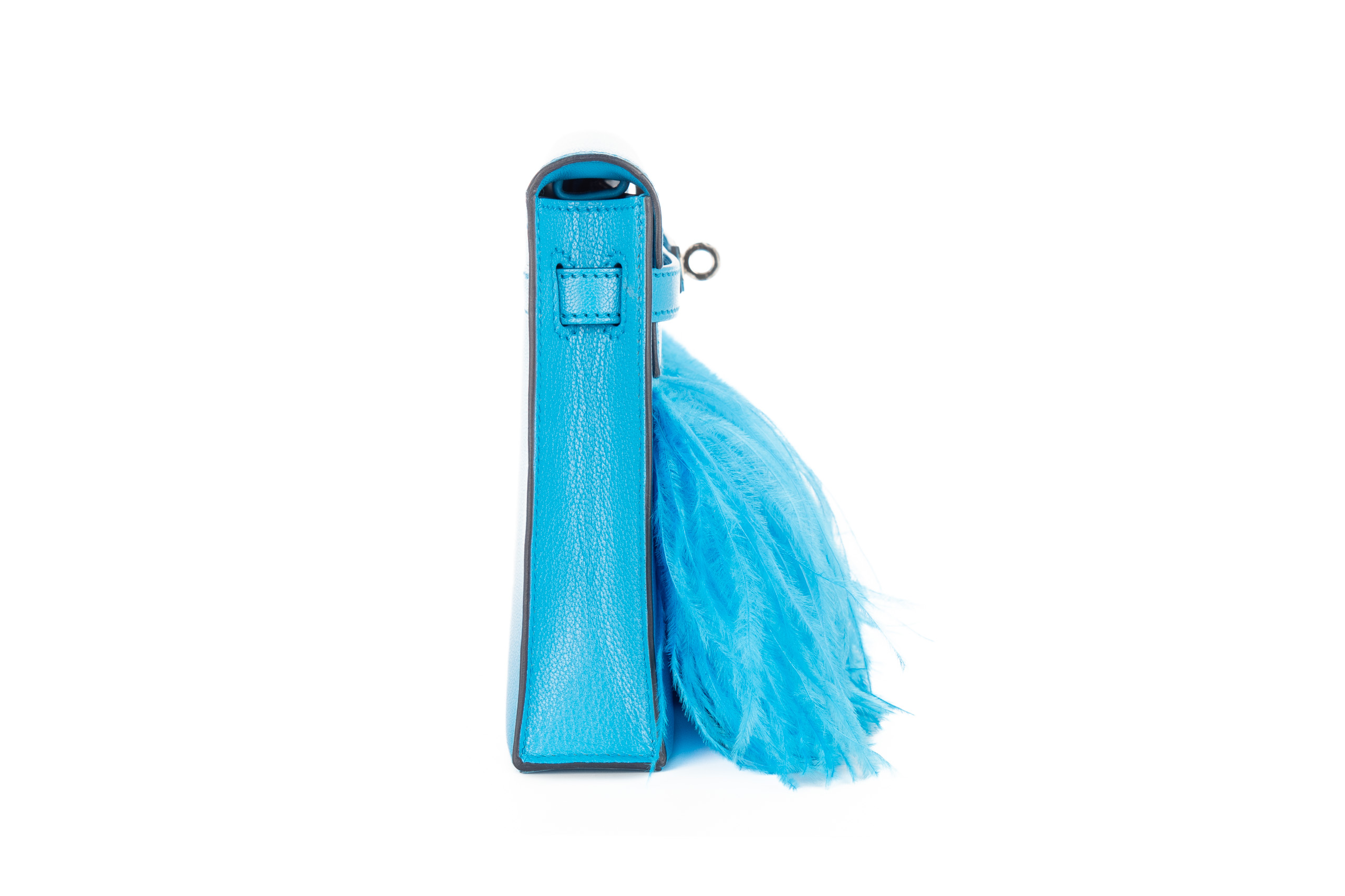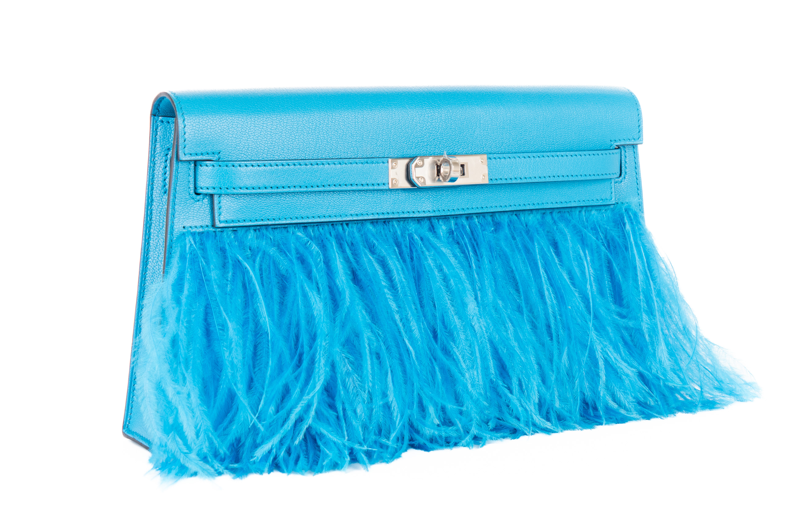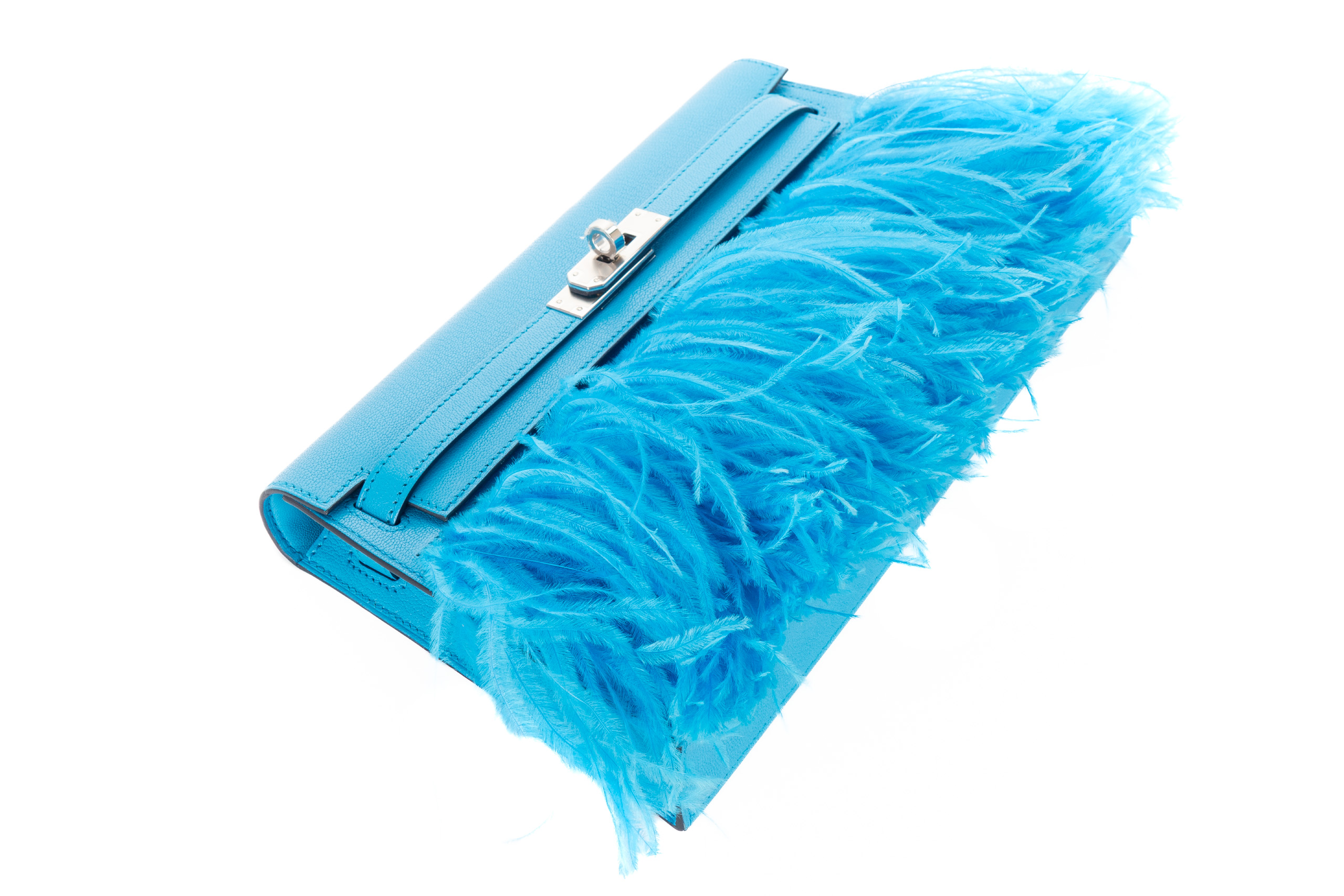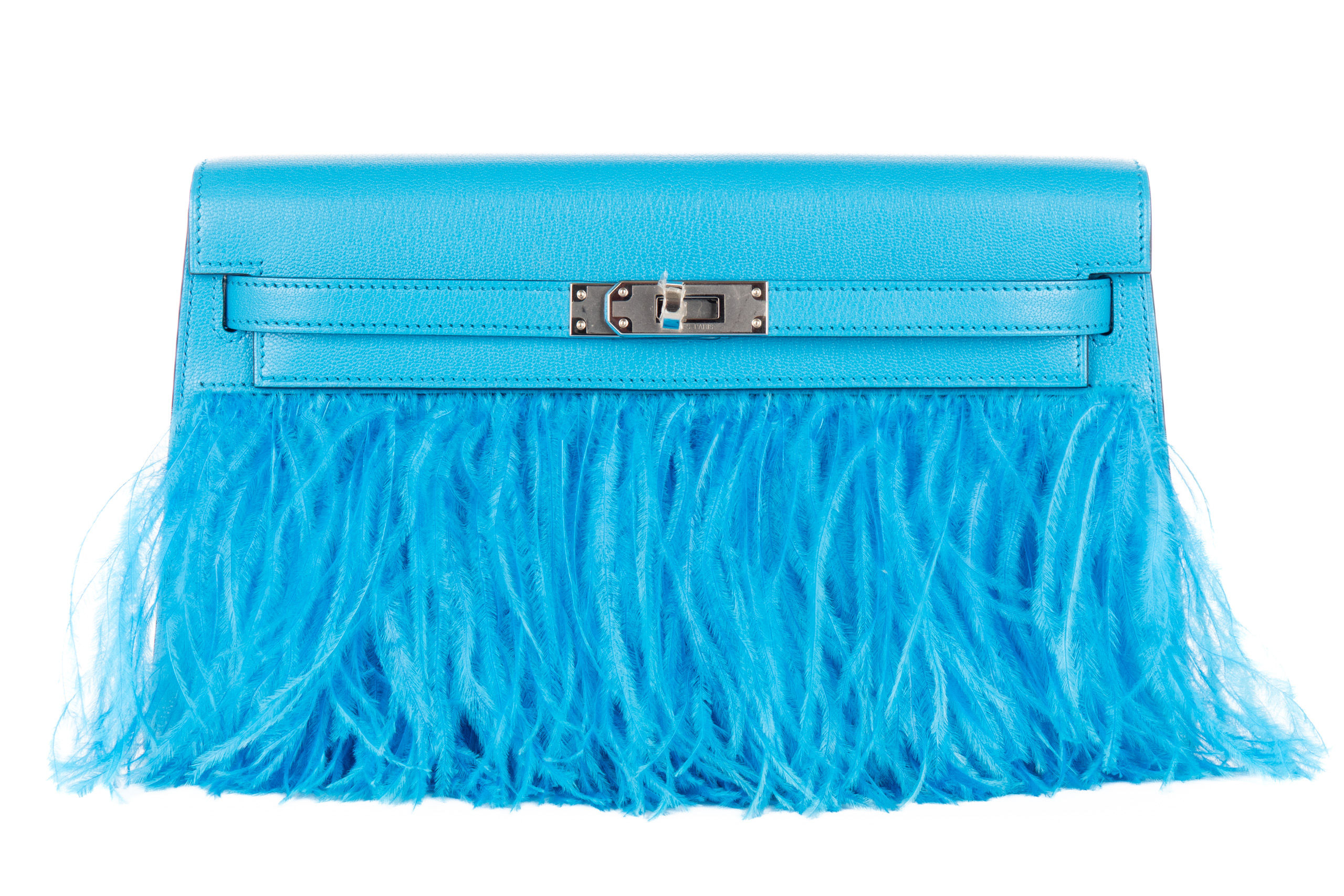 Hermès Kelly Elan Folie Bleu Frida Chevre Chamkila Ostrich Feather Palladium Hardware / B Stamp 2024, Brand New